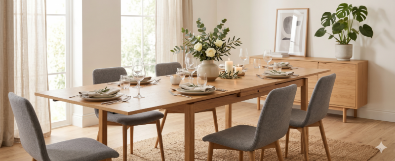 - Small Dining Area (Under 12m²): 120–140cm extendable table