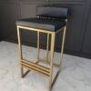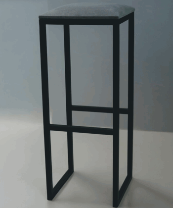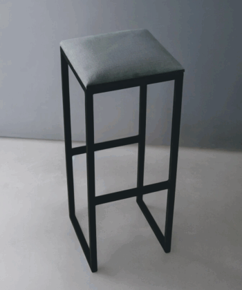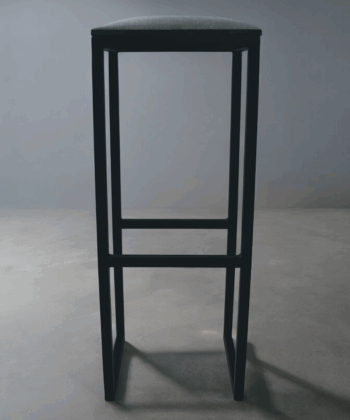 Minimalist bar stool with a black metal frame and padded upholstered seat. Ideal for kitchen islands, breakfast bars, or home bars.
