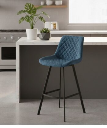 Luka upgrades kitchen islands fast. Navy velvet looks rich. Black metal base grips tight. Wide seat welcomes everyone.
