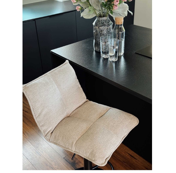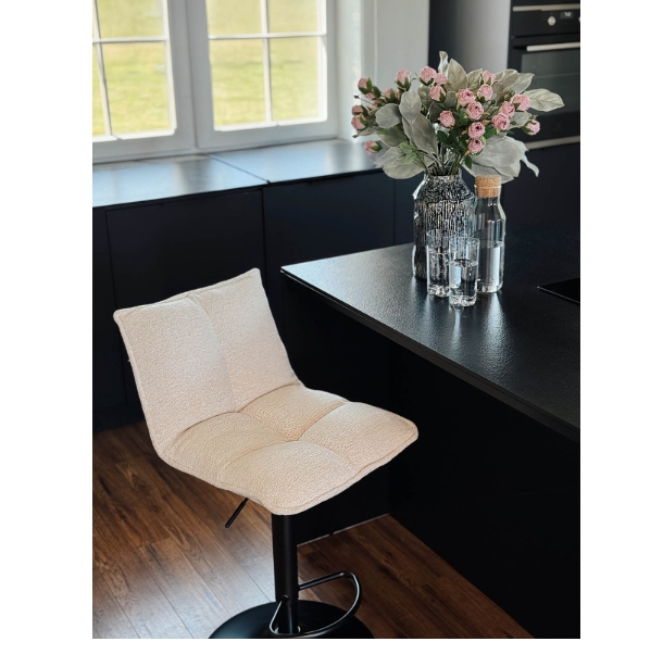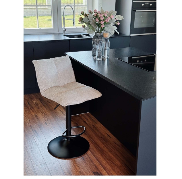 Crafted from powder-coated black metal base for commercial-grade stability, the stool withstands daily use in busy home or hospitality environments. The spacious 47×37 cm padded seat ensures lasting comfort during coffee breaks, meals or social hours. Thoughtful engineering combines style, functionality and durability for discerning spaces.