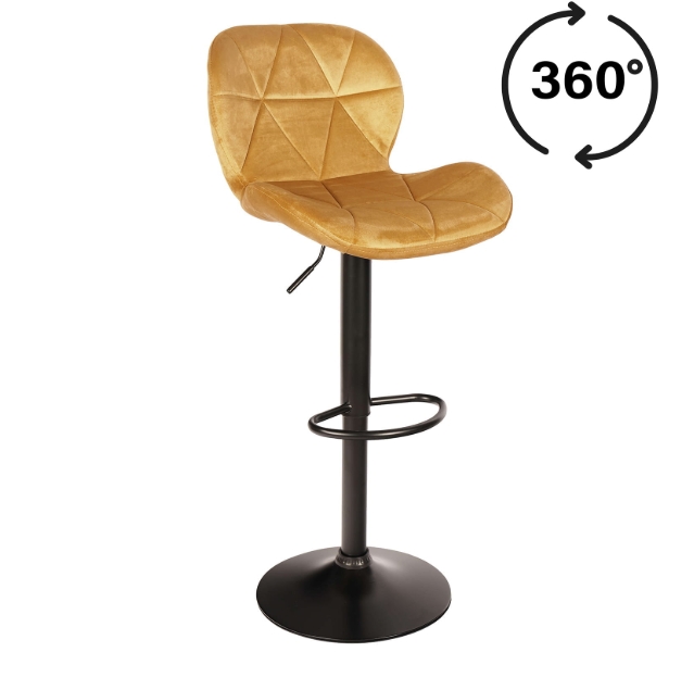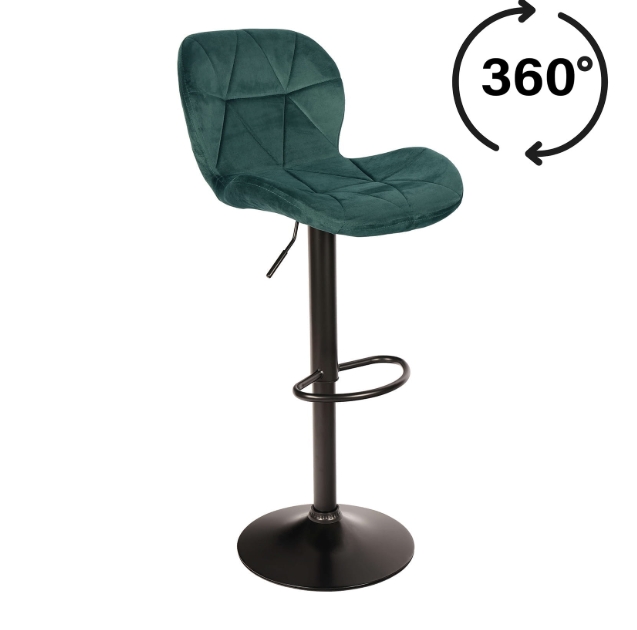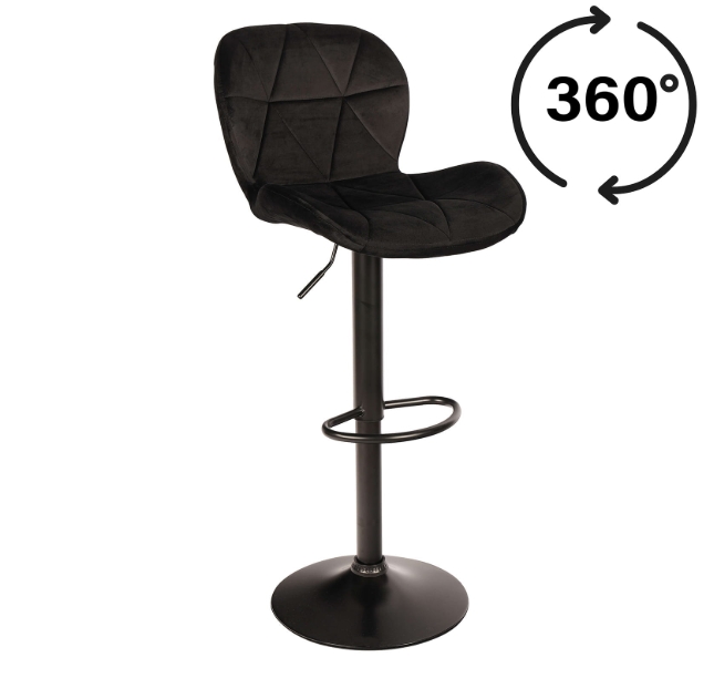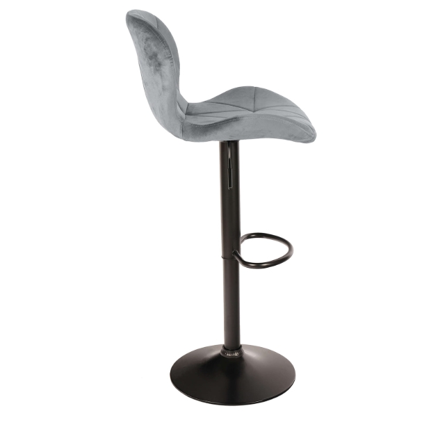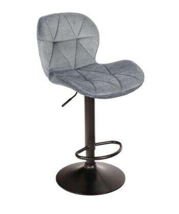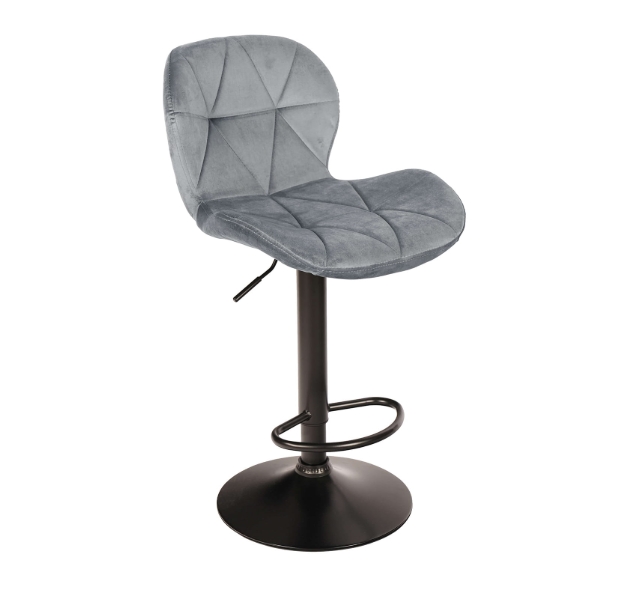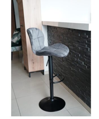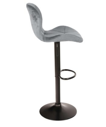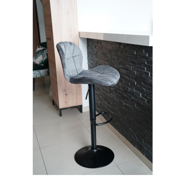 Zoya Black upgrades your kitchen counter. Grey velvet looks rich. Black metal base stays tough. Adjust height quick. Swivel turns smooth.