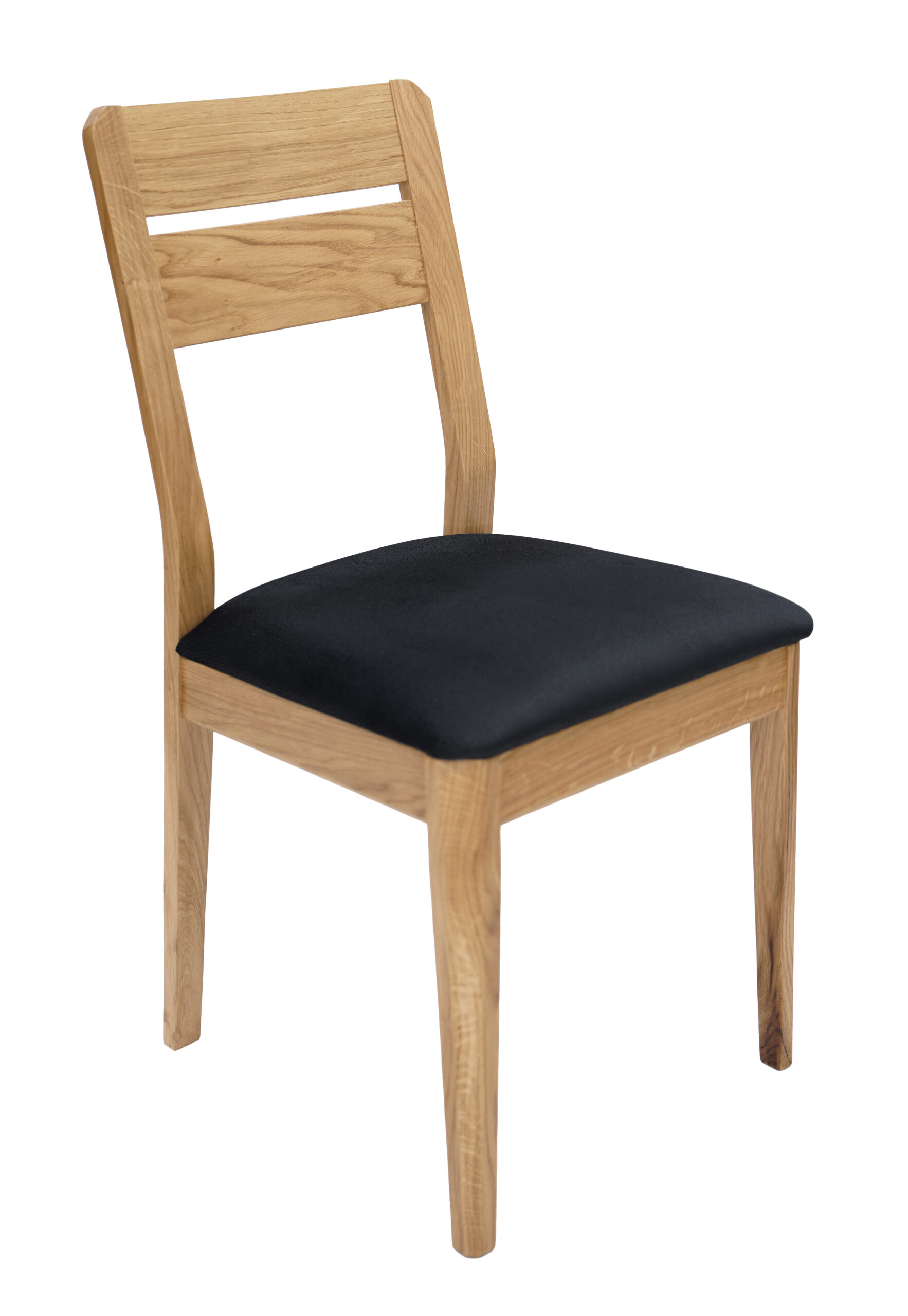 KR-35 Solid Oak Dining Chair – Natural Wood Frame with Black Upholstered Seat