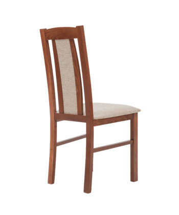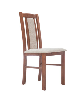 Introduce timeless elegance to your dining area with the Kenmare chair. This piece showcases a unique design with two wooden uprights framing a central, fabric-upholstered panel on its backrest. Consequently, it offers a sophisticated look and enhanced comfort. We build the frame from high-quality solid wood, so it provides excellent durability for everyday use.