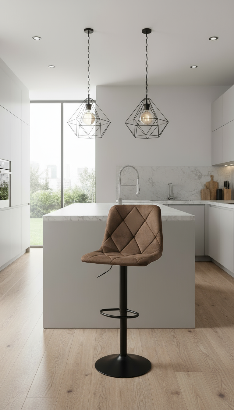 The Figa Velvet Bar Stool elevates kitchen islands, breakfast bars, dining counters and commercial spaces with its plush brown velvet upholstery and subtle button tufting details. Beyond standard bar seating, this designer piece becomes a sophisticated accent for modern kitchens, home bars, restaurants and cafes. The ergonomic shape ensures comfort during extended breakfasts, coffee breaks or cocktail hours.