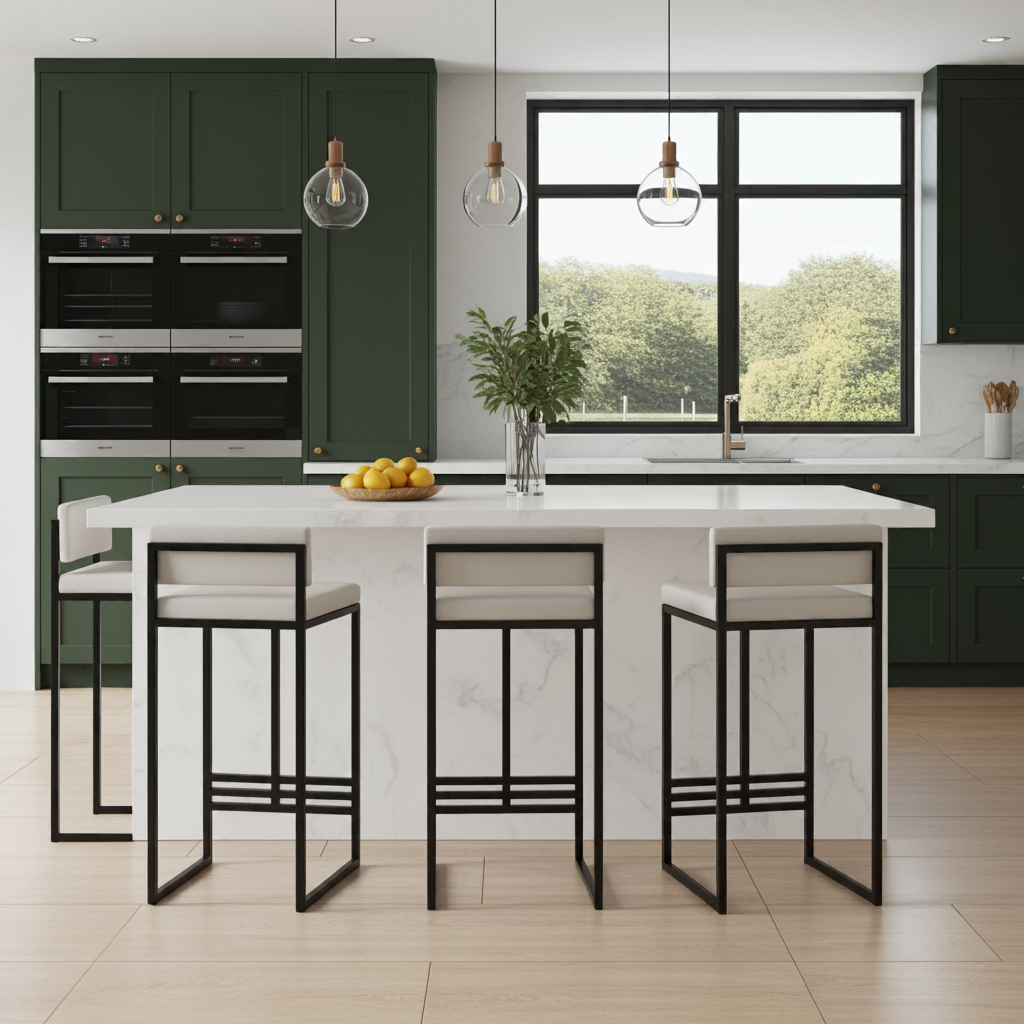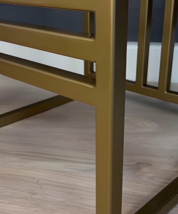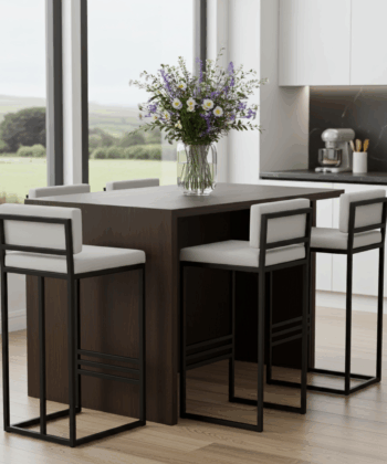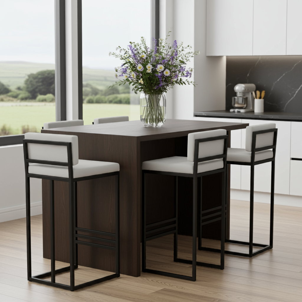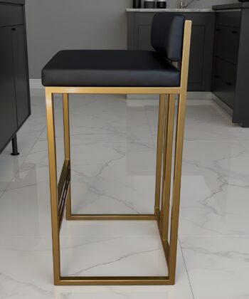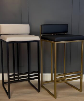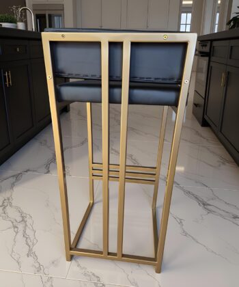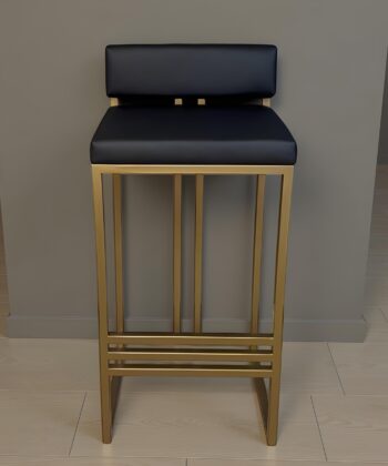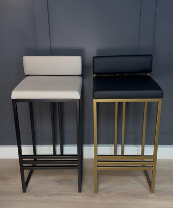 Choose this bar stool for an instant upgrade to any room. Its gold frame and customisable seat make it ideal for Irish homes, bars, and cafés. Whether you want a different colour or special height, we’re ready to help you create the perfect seat.