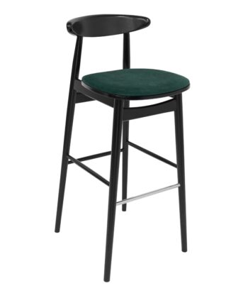 The Nordic Ember Bar Stool blends sleek modern lines with classic craftsmanship, perfect for kitchen islands, stylish home bars and upscale restaurants. Its slender beech wood frame in sophisticated black finish creates visual lightness while the gently curved backrest provides comfortable lumbar support during extended meals or cocktails. The padded chenille seat in rich green adds inviting warmth to Scandinavian, industrial or traditional kitchen designs.