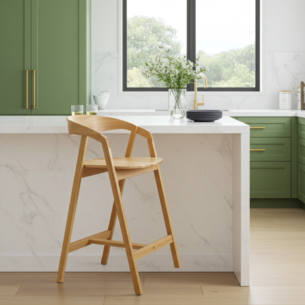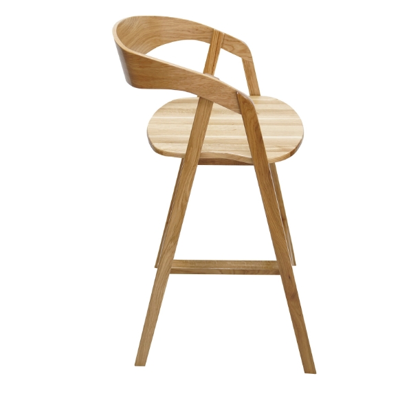 Nordic Oak Embrace Bar Stool with Curved Backrest and Armrests for Kitchen Island, Dining Room and Bar