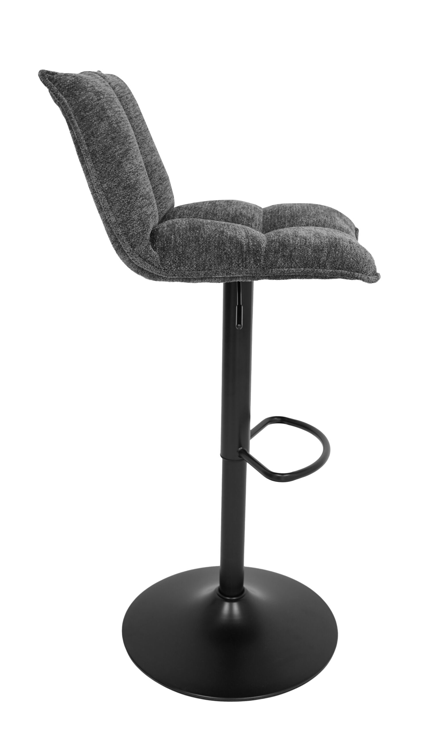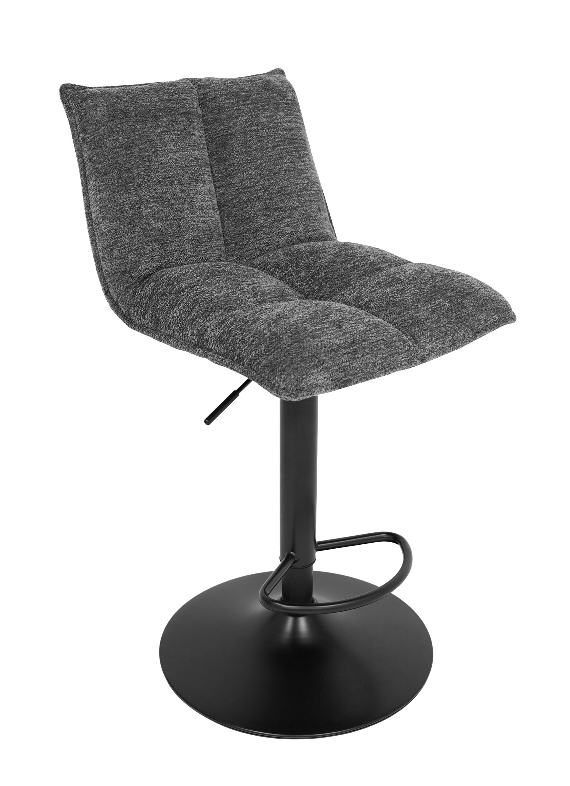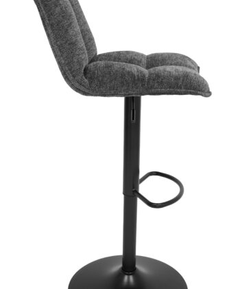 The Raven Urban Bar Stool Kos elevates kitchen islands, breakfast bars and home bars with its soft dark grey chenille upholstery, high supportive backrest and ergonomic design perfect for extended dining or casual gatherings. The height-adjustable mechanism (65-86 cm seat height) accommodates various counter heights while the integrated footrest promotes proper posture and comfort. This sophisticated stool blends seamlessly into modern, glamour and Scandinavian kitchen arrangements.