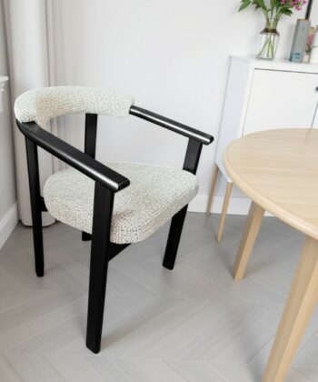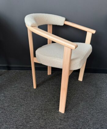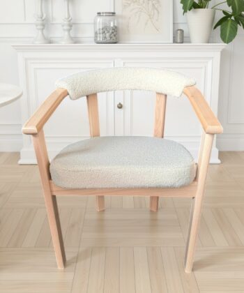 Discover the Oslo Wooden Armchair, where timeless Scandinavian design meets contemporary comfort. Moreover, it’s crafted from solid beech wood with water-based stain finish. Additionally, this chair features luxurious bouclé upholstery on the seat and backrest. Therefore, it’s perfect for dining rooms, offices, or living spaces across Ireland.