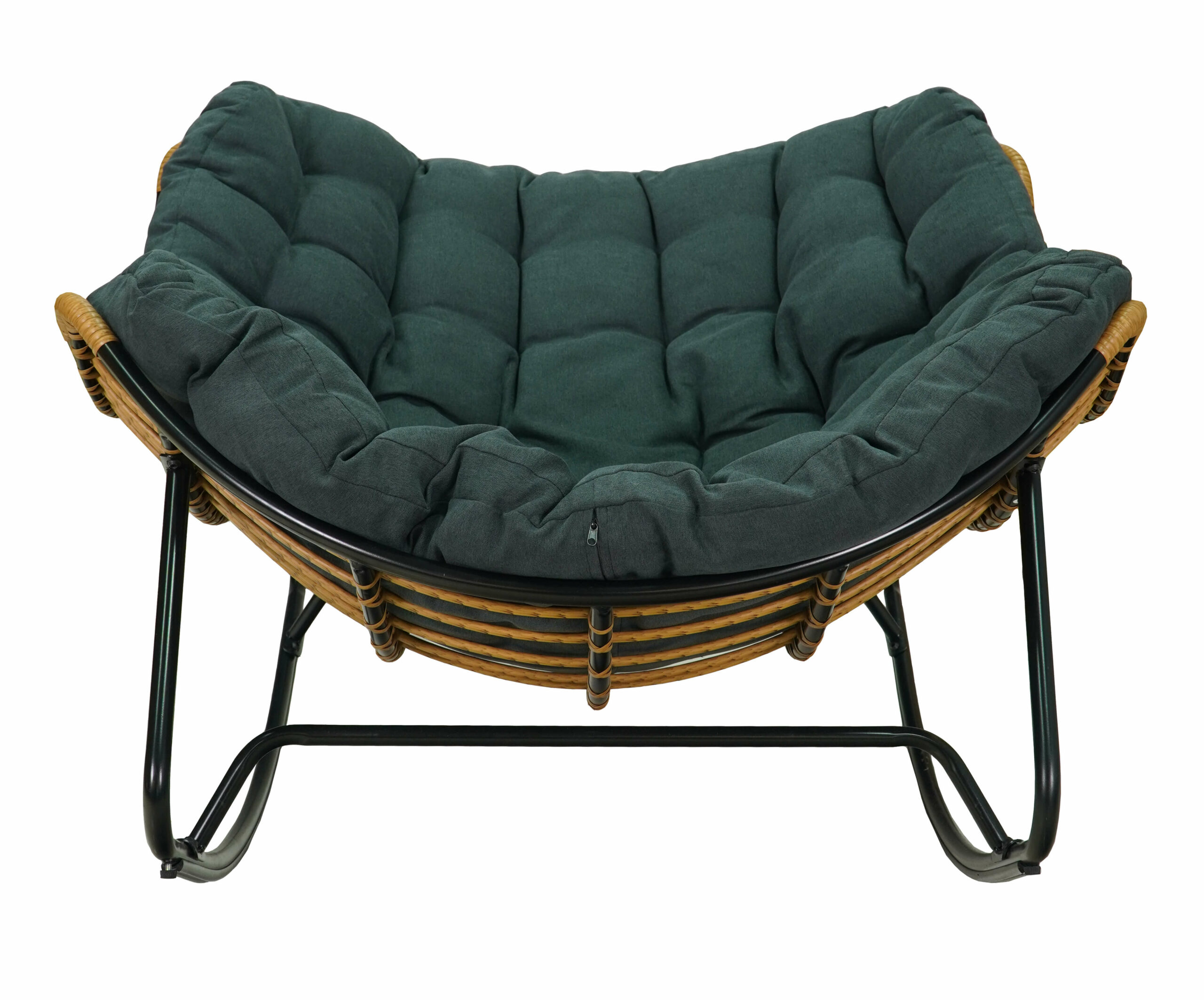 The sturdy black metal frame ensures safety and long-lasting durability. The technorattan seat in natural tones pairs beautifully with the grey outdoor fabric cushion, providing soft, supportive comfort. Moreover, the construction withstands up to 150 kg, making it suitable for everyday use in gardens, balconies, patios, or cosy sitting areas.