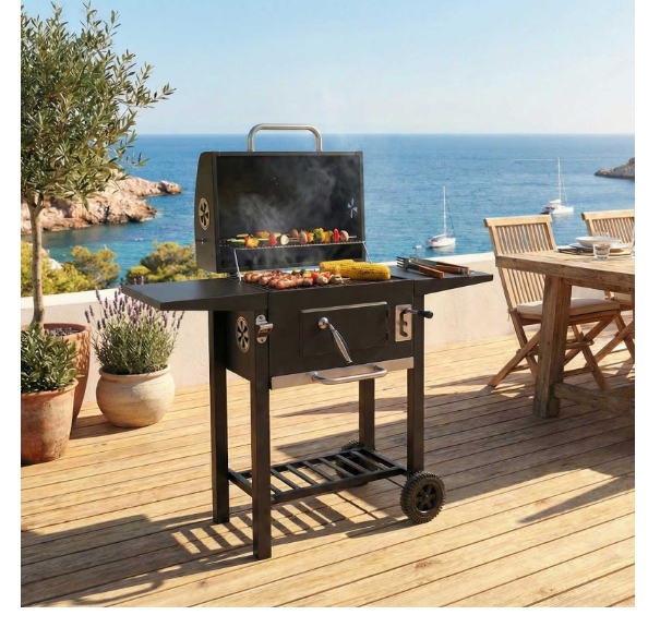 The Alvaro charcoal grill combines functional features with a clean black design that suits modern outdoor spaces. Its stable frame, adjustable heat system, and helpful work surfaces make it a strong choice for regular barbecue use. Whether you are cooking for family or entertaining guests, this grill offers a dependable and enjoyable outdoor cooking experience.