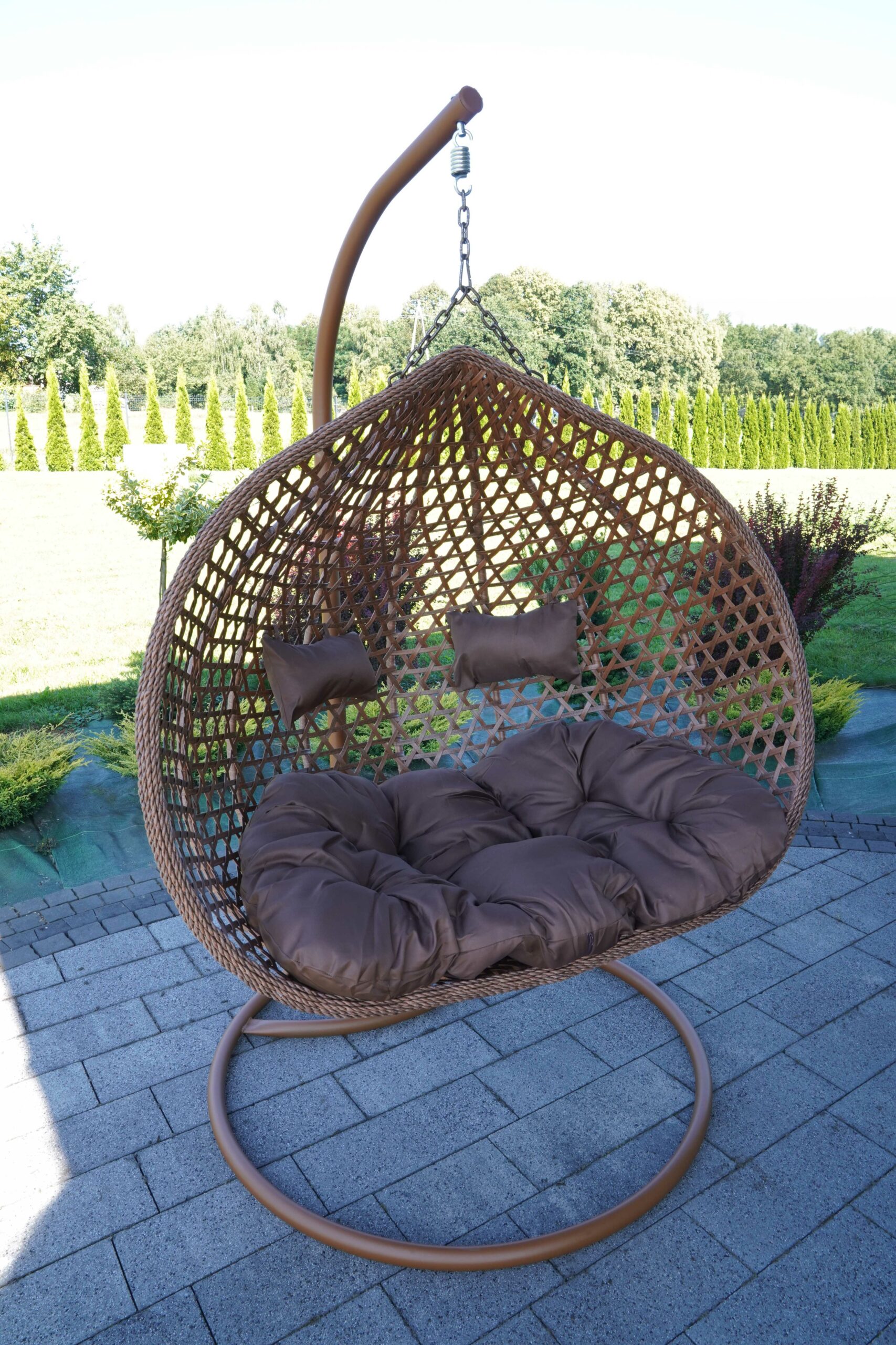 Aruba Double Hanging Egg Chair – Natural Rattan‑Look Garden Cocoon with Cushions