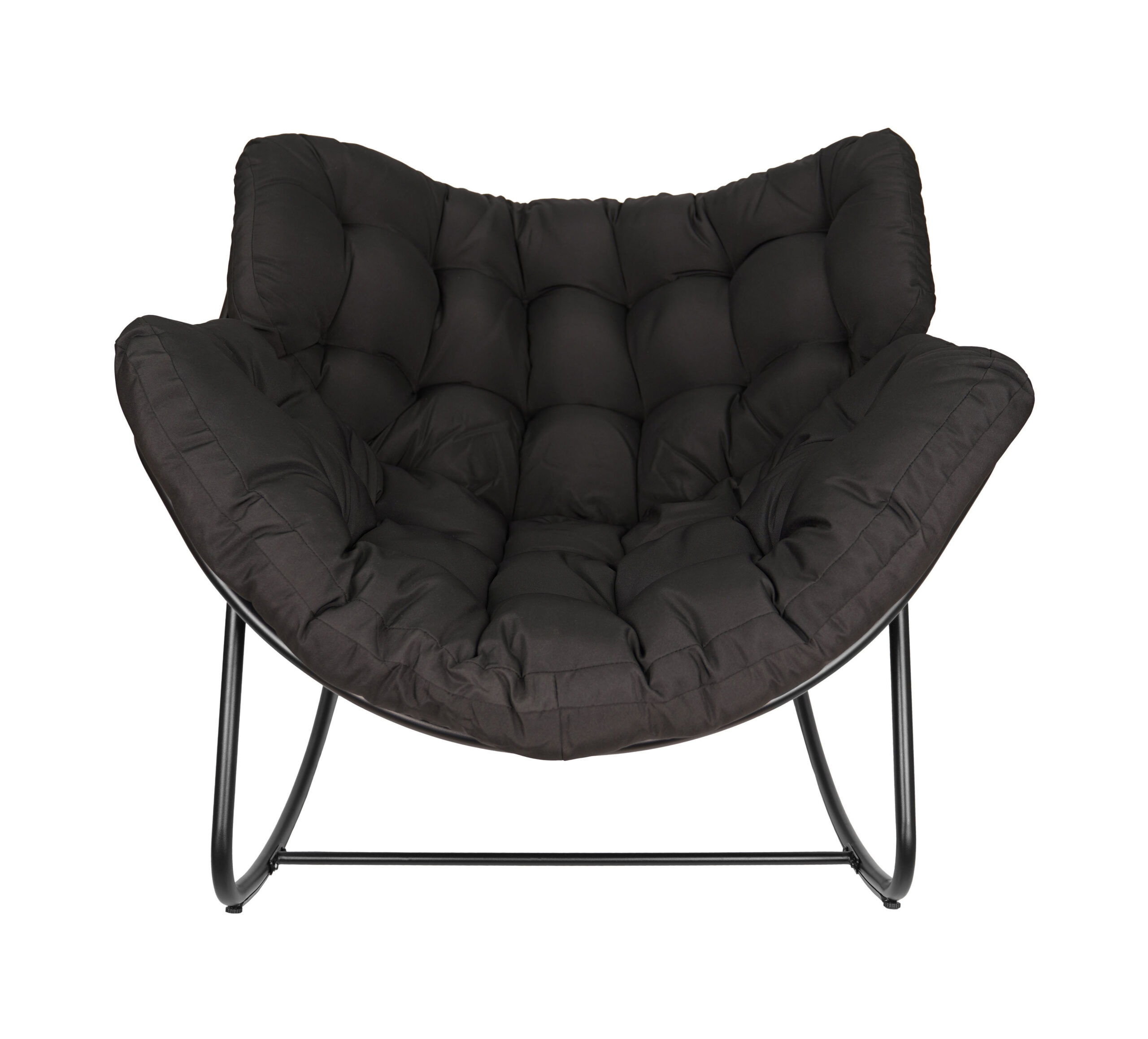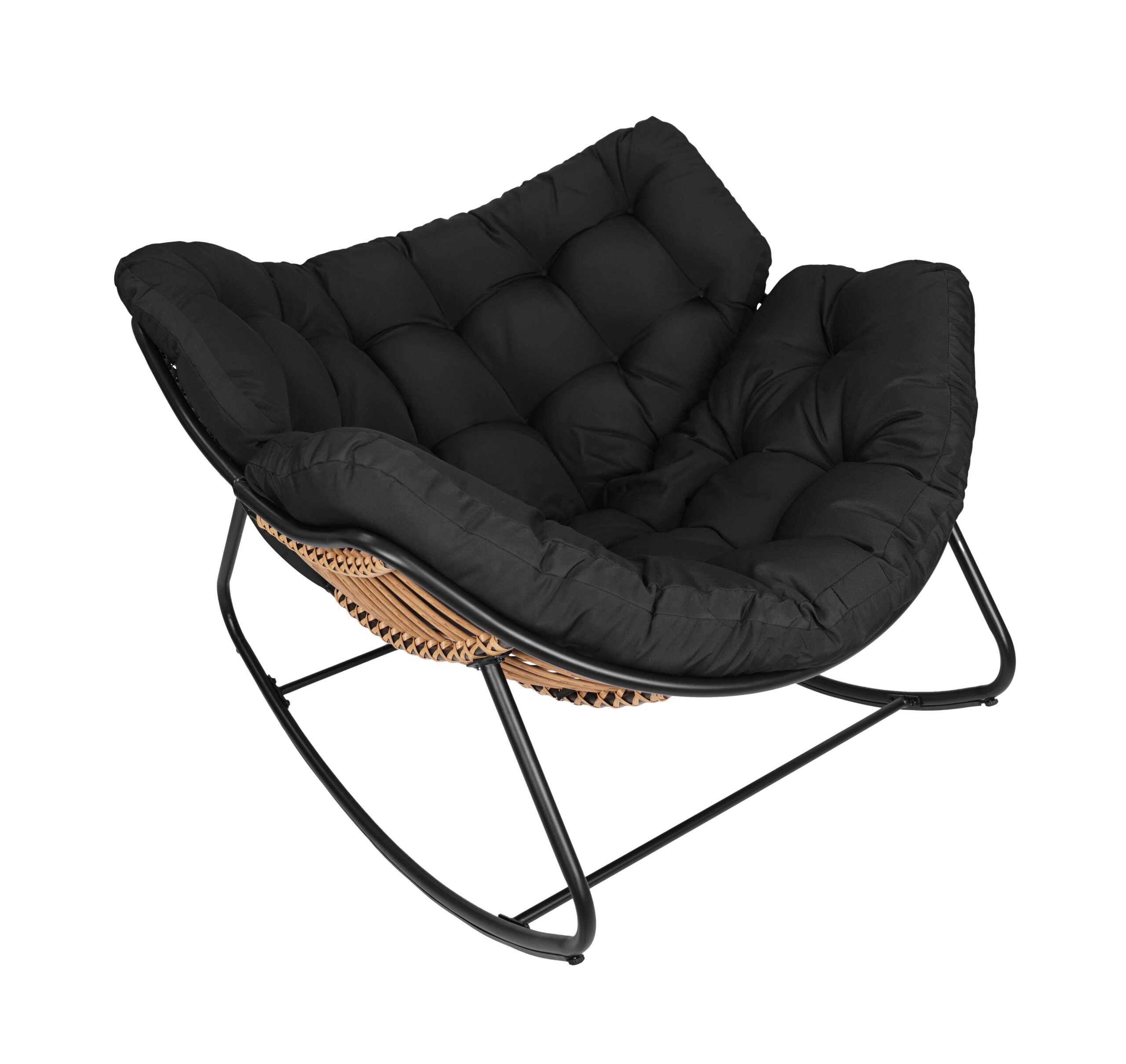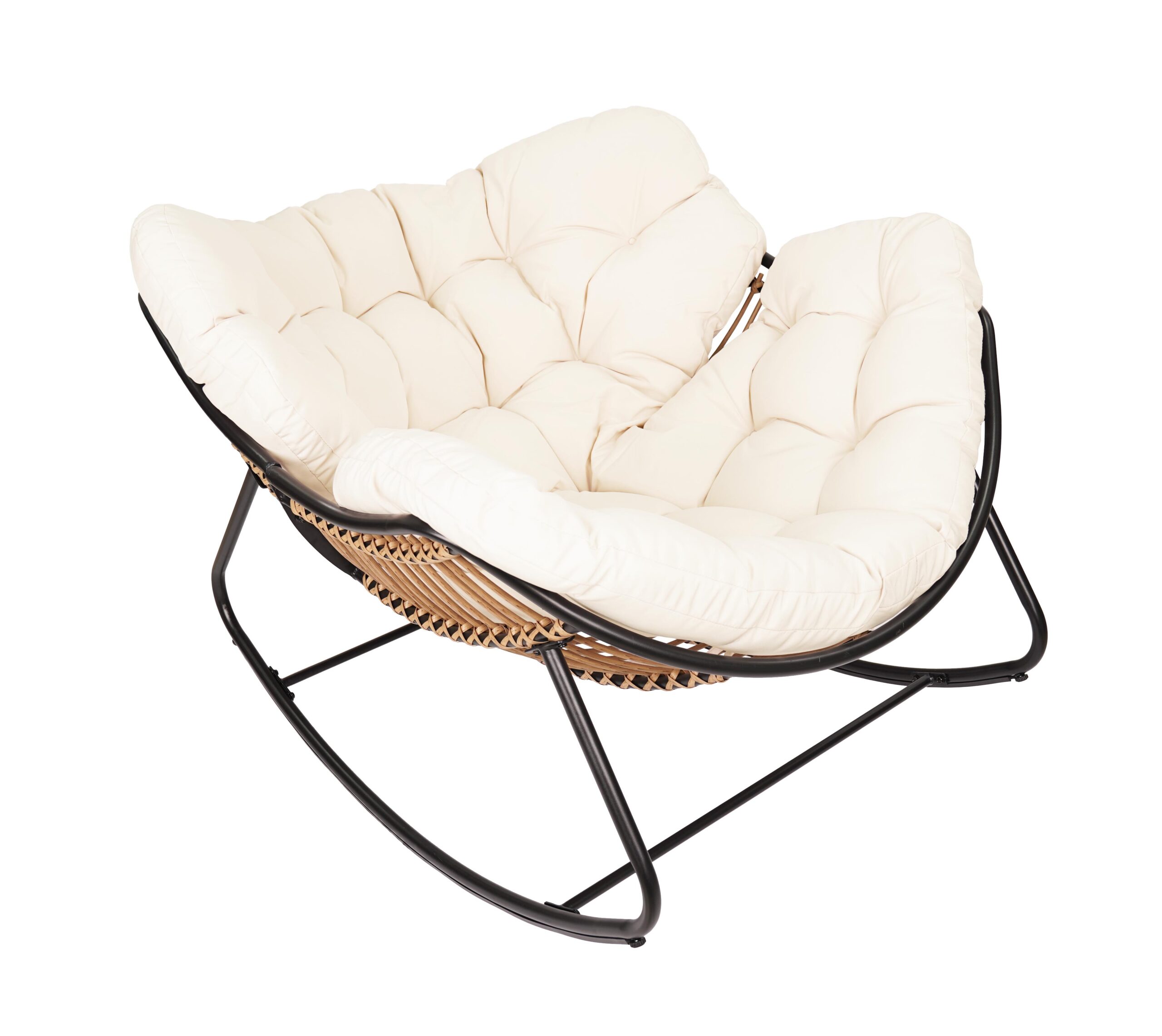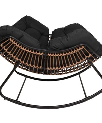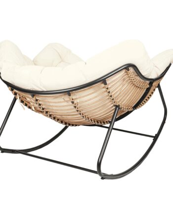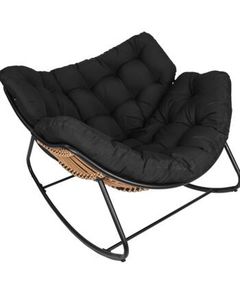 The black metal frame provides solid support. In addition, natural technorattan seat looks elegant. The beige outdoor cushion adds soft comfort. As a result, you enjoy reading or watching movies comfortably. Therefore, it becomes your favorite relaxation spot.