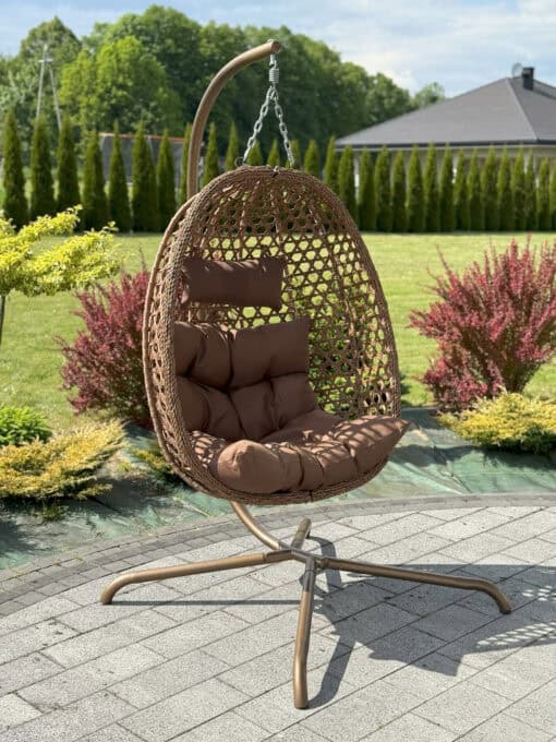 Limone Folding Hanging Egg Chair – Brown Rattan Swing for Garden or Home