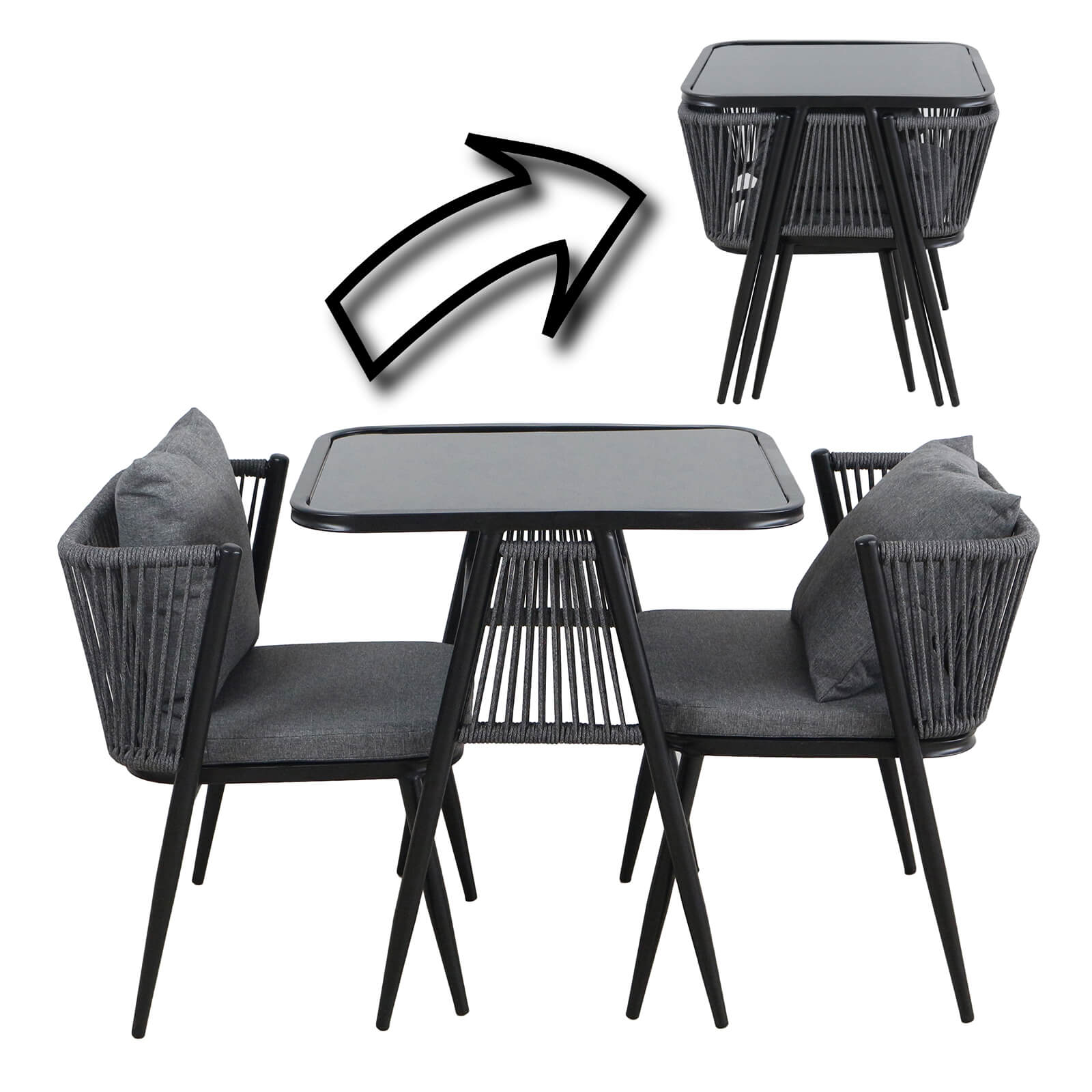 ✓ Table: 69.5×58.5×75 cm ✓ Chairs: 58x53x70.5 cm (seat 50×45 cm)