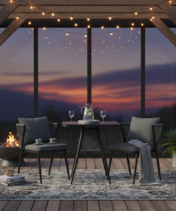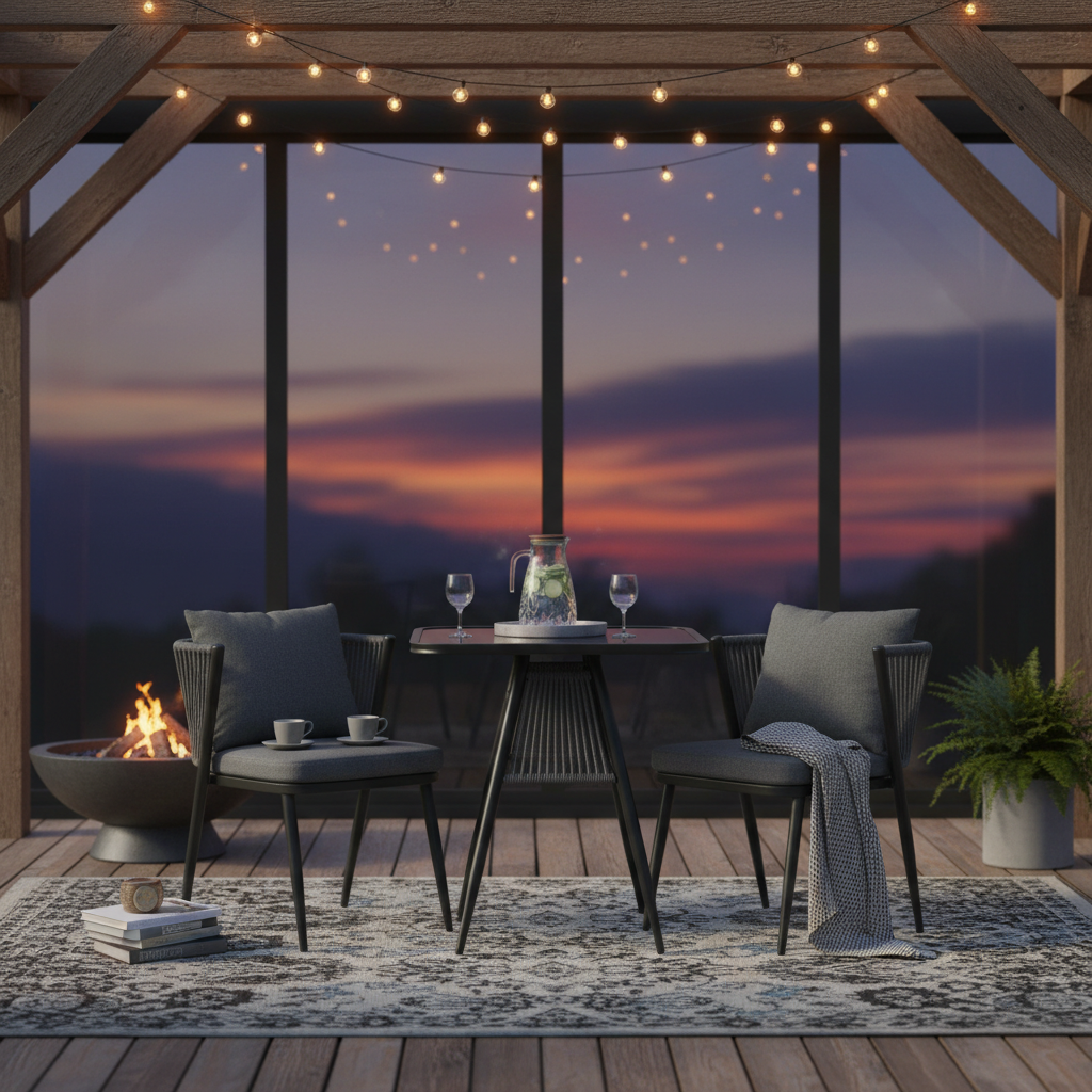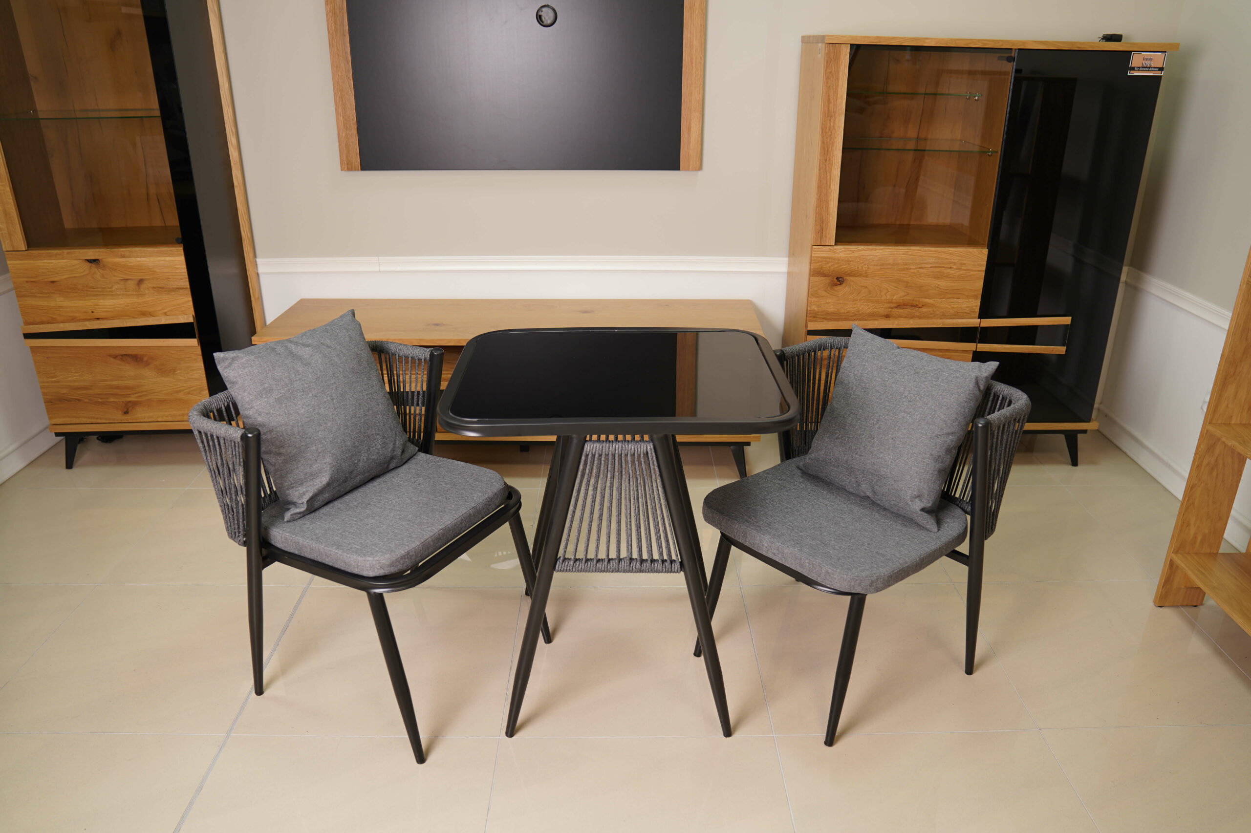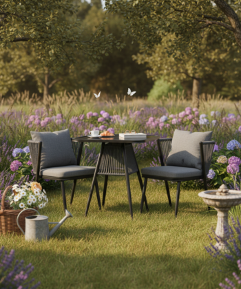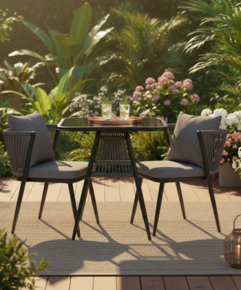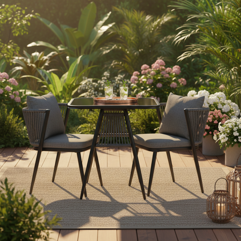 Korfu Coastal Patio Set – Beige Outdoor Table + 2 Chairs