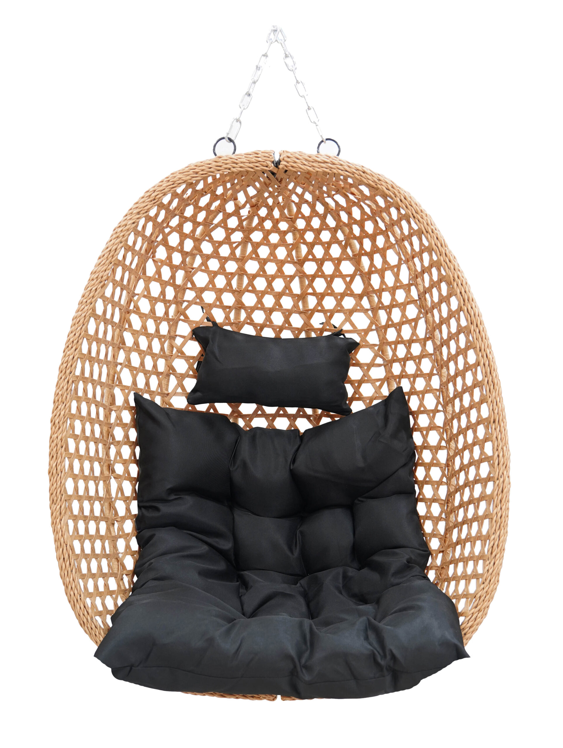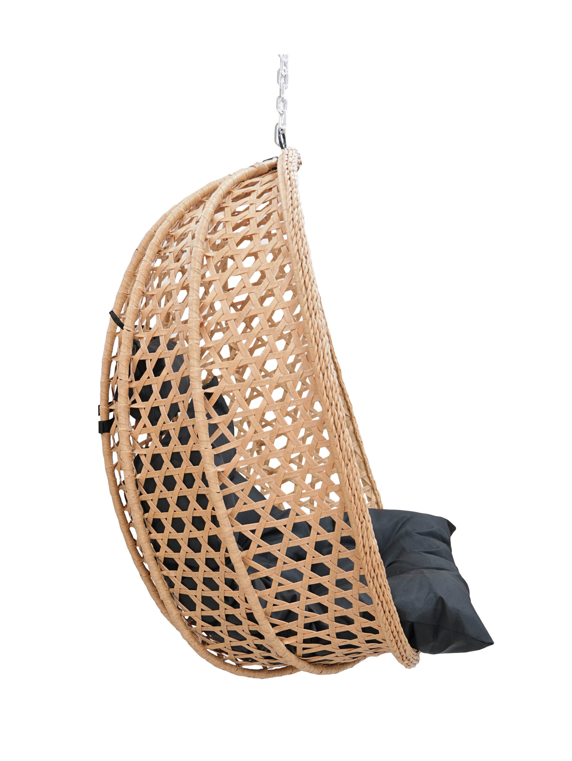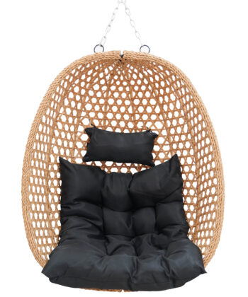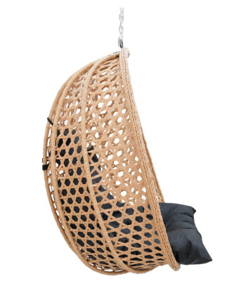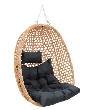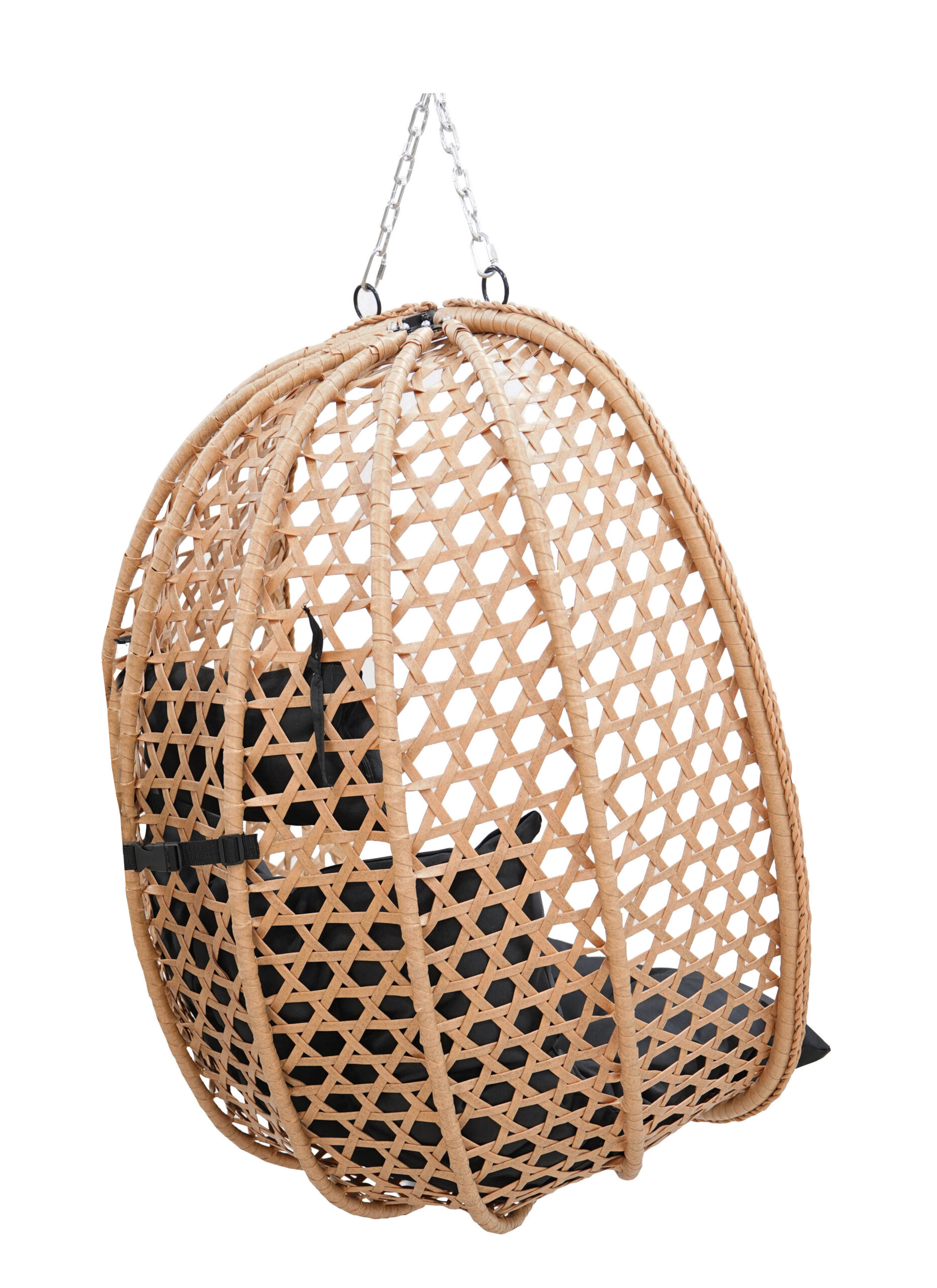 Oris Hanging Cocoon Chair with Natural PE Rattan Basket and Black Cushions