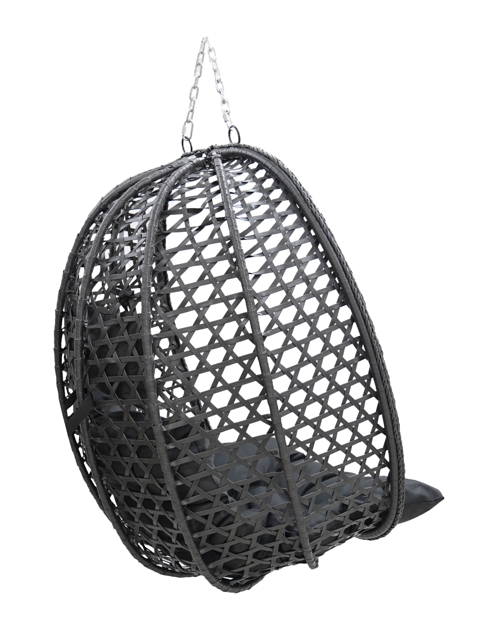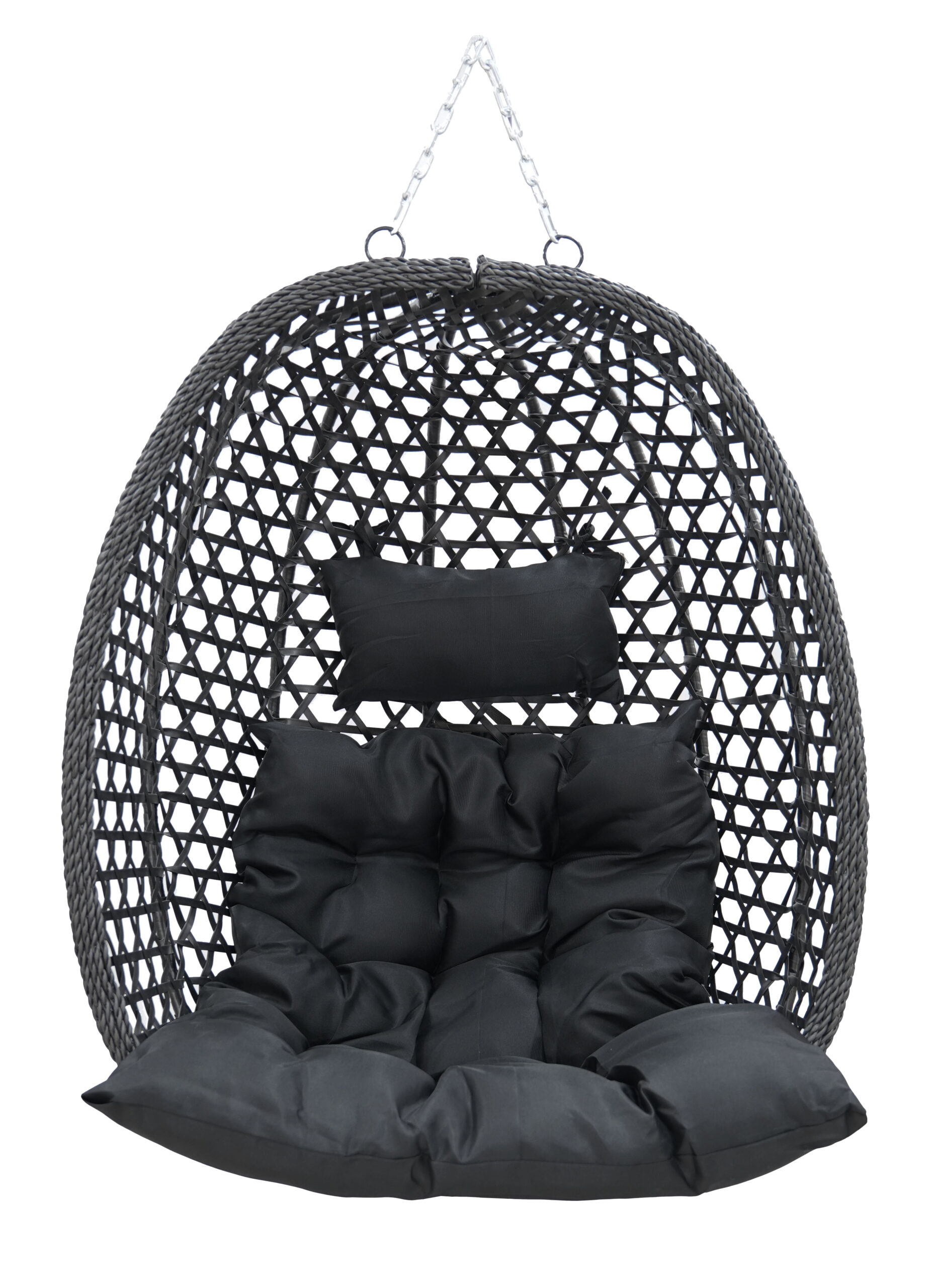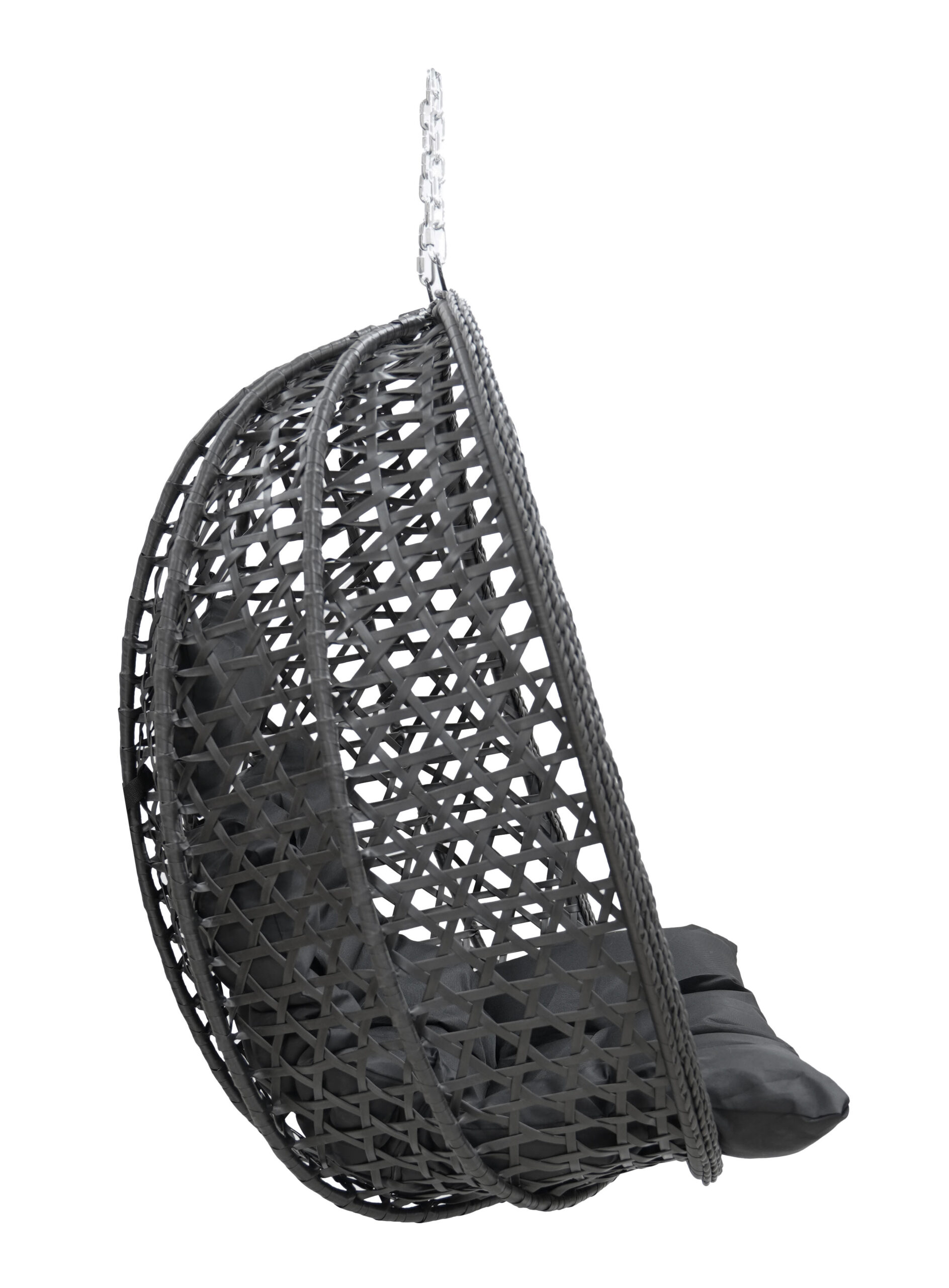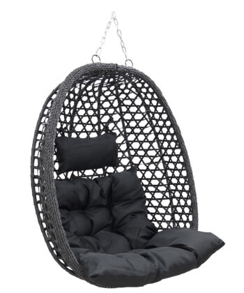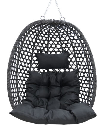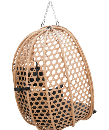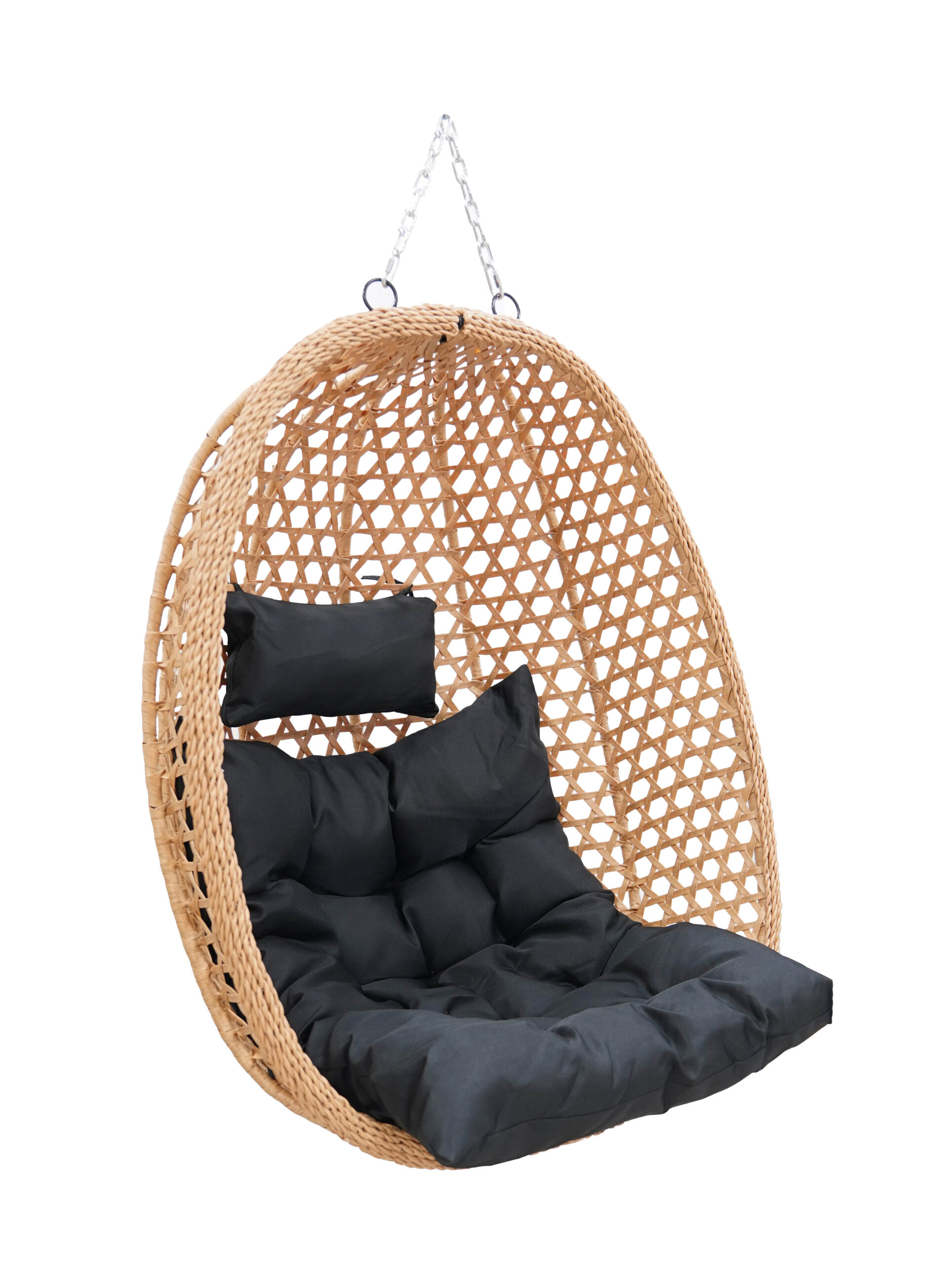 Oris Hanging Cocoon Chair with Natural PE Rattan Basket and Black Cushions
