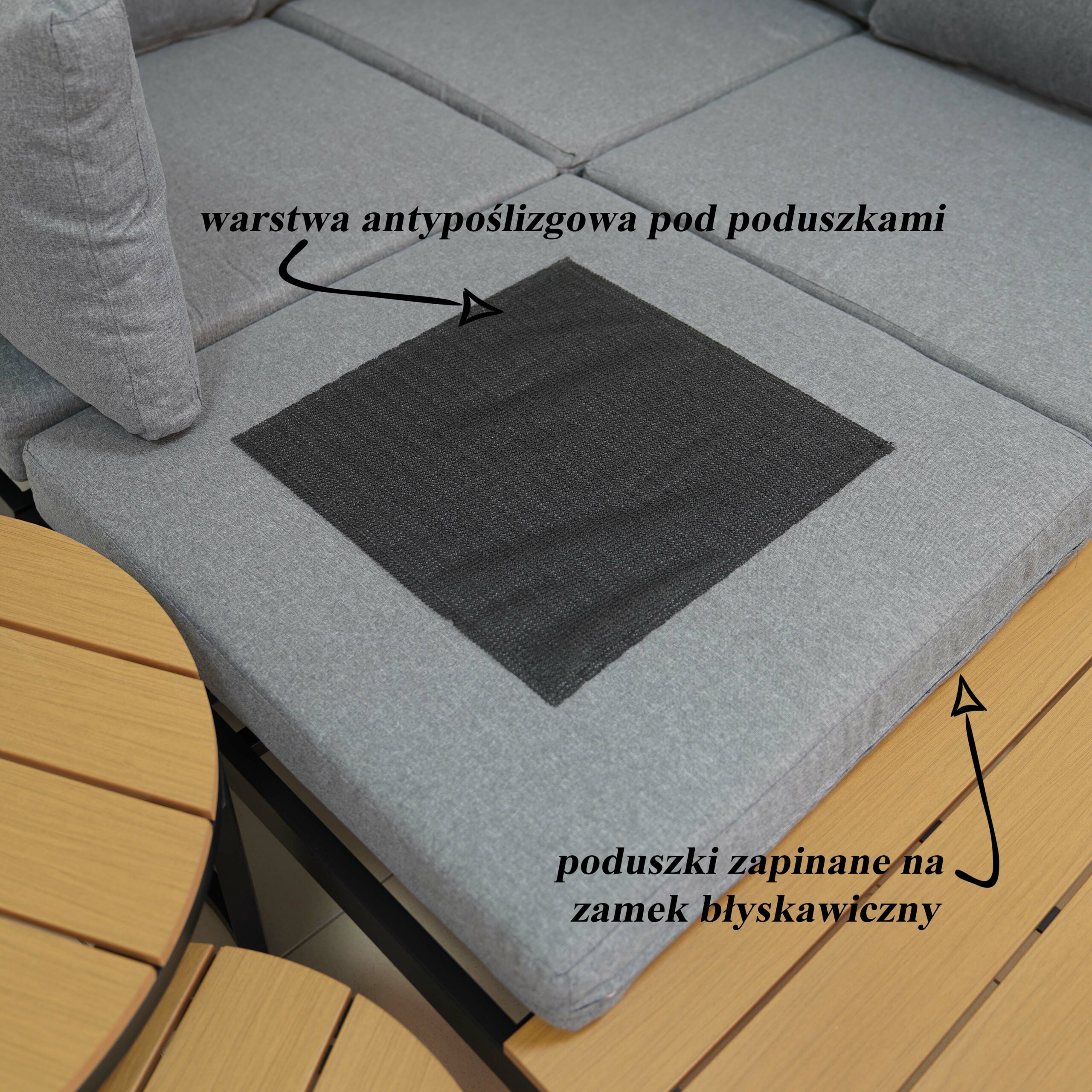 Soft seat and back cushions give the Rodos corner its cosy character. The wood‑like beige finish looks warm and natural, while still being easy to match with different outdoor décors. Meanwhile, the modular design allows combining the elements into multiple configurations. As a result, the set fits both small balconies and larger garden spaces without losing its elegant look.