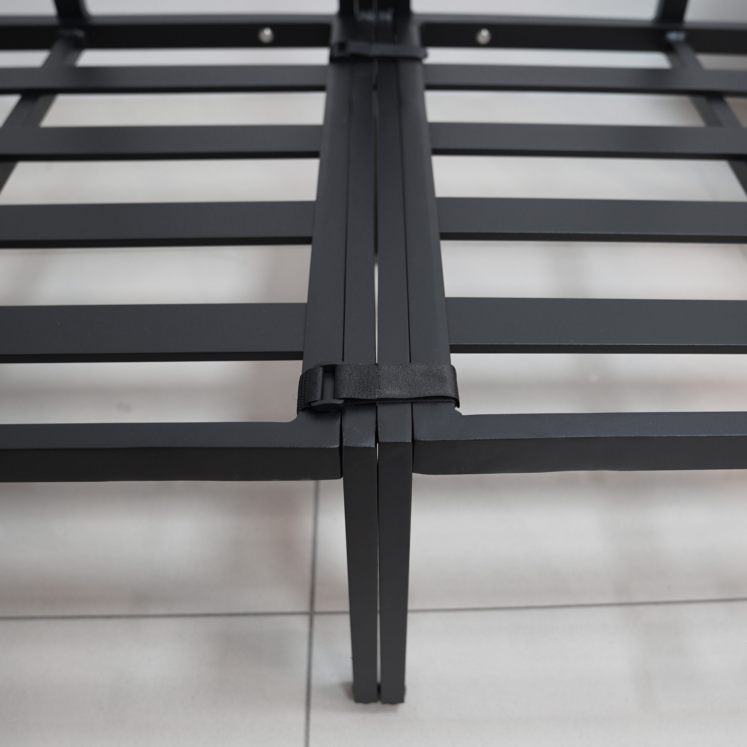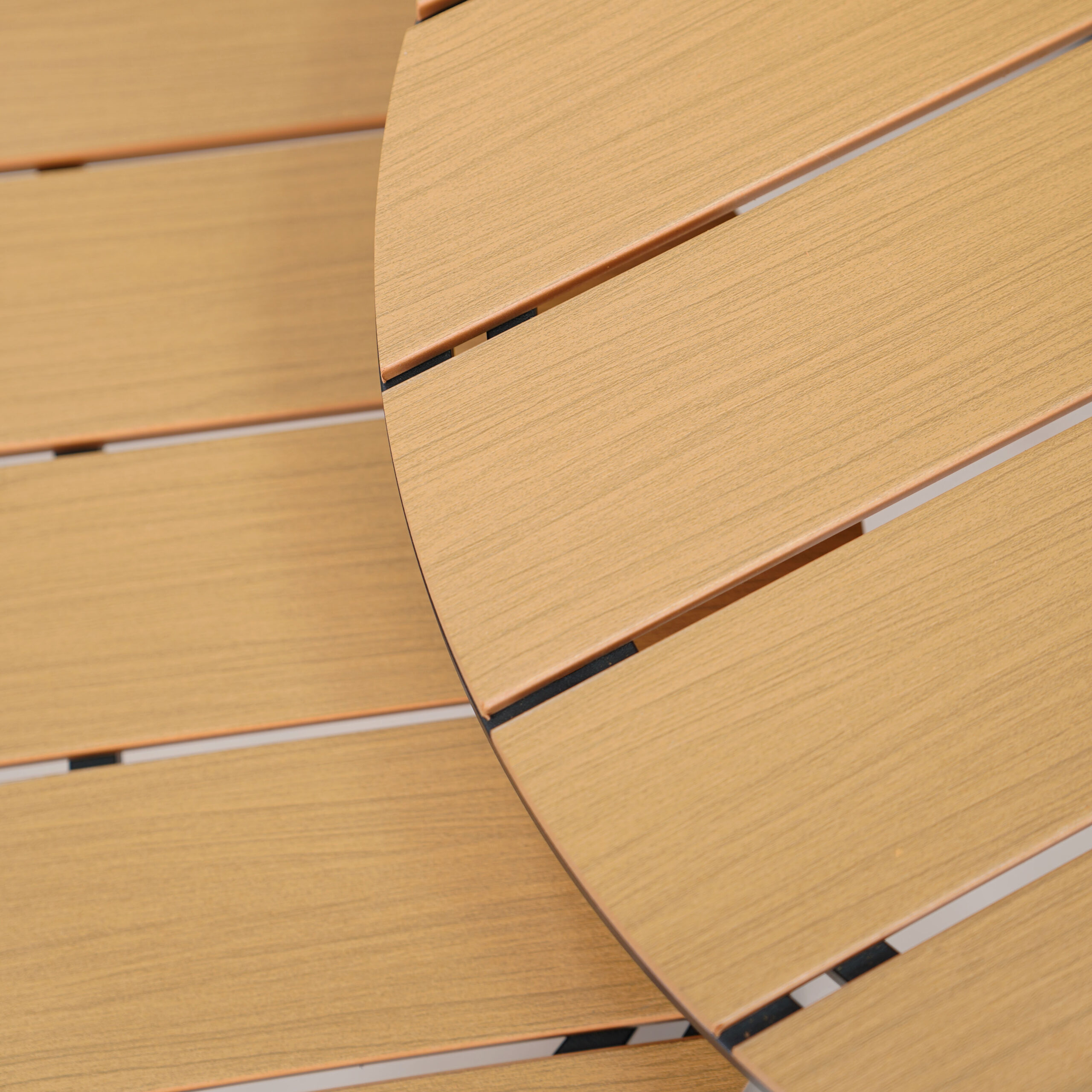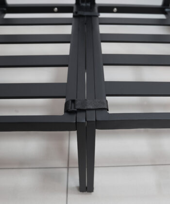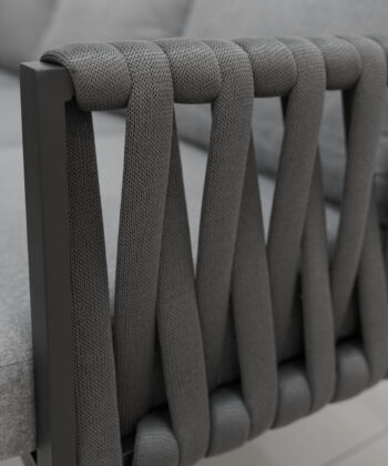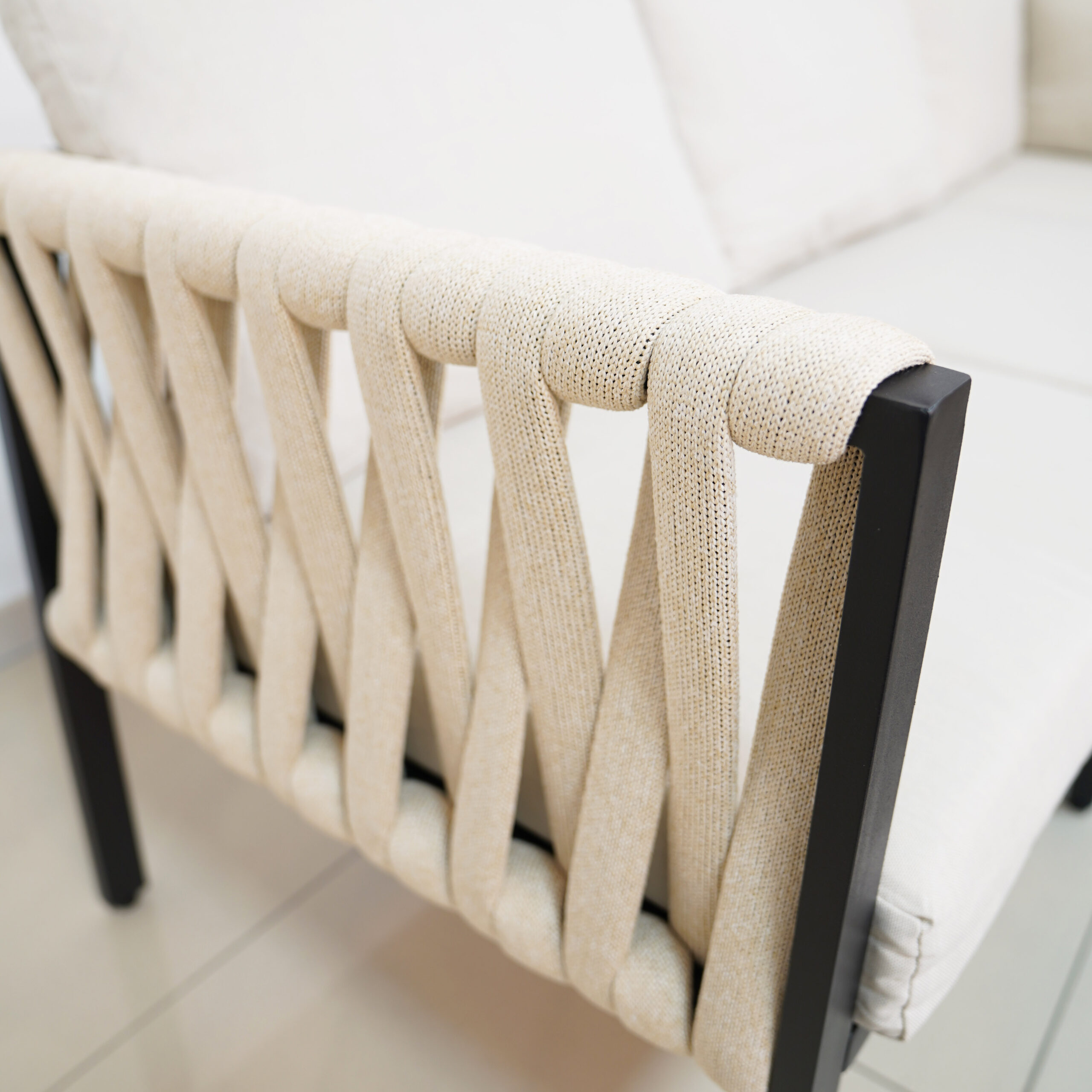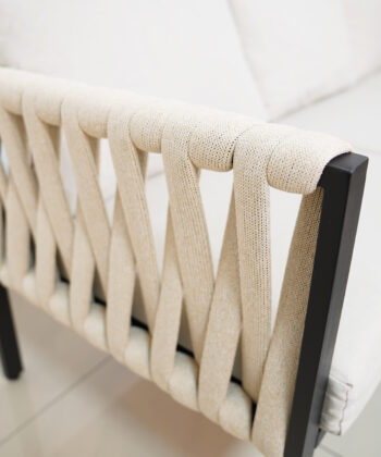 The frame is made from aluminium, which makes the furniture both strong and relatively easy to move. Powder‑coated in black, the frame is corrosion‑resistant and suitable for long‑term outdoor use. Furthermore, the materials are chosen to withstand sun, rain, and everyday wear, so the set keeps its appearance and stability over time.