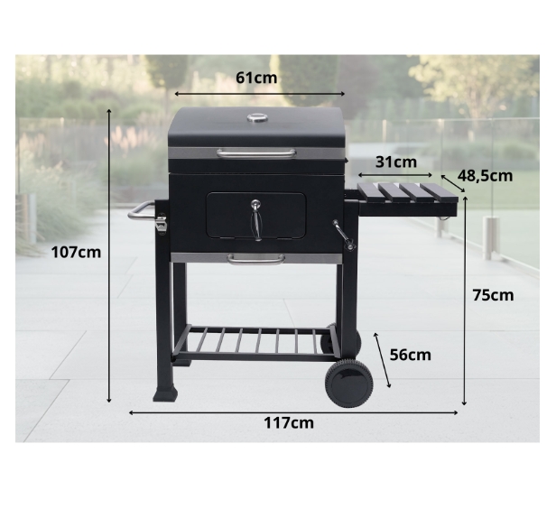 The Rugia charcoal grill combines durability, functionality, and a clean black design that suits any outdoor space. Its strong construction, practical accessories, and large cooking area make it a dependable choice for regular BBQ use. Whether you are preparing a simple meal or hosting a bigger garden event, this grill delivers comfort, control, and a great cooking experience.