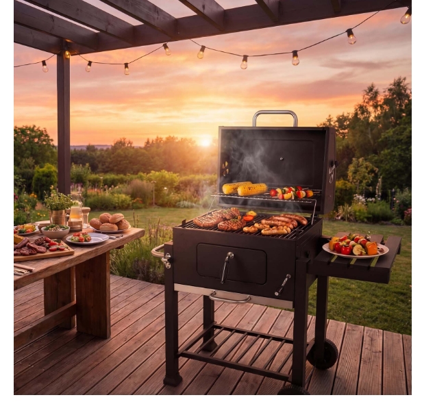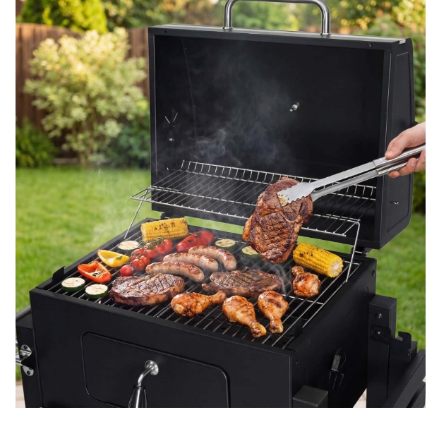 The adjustable coal tray allows you to change the height of the fire, which helps control the cooking temperature with more accuracy. Moreover, the built-in thermometer in the lid gives you a clear view of the heat level inside the grill. This combination makes it easier to cook evenly and avoid overcooking. As a result, the Rugia model offers more control and confidence during every grilling session.