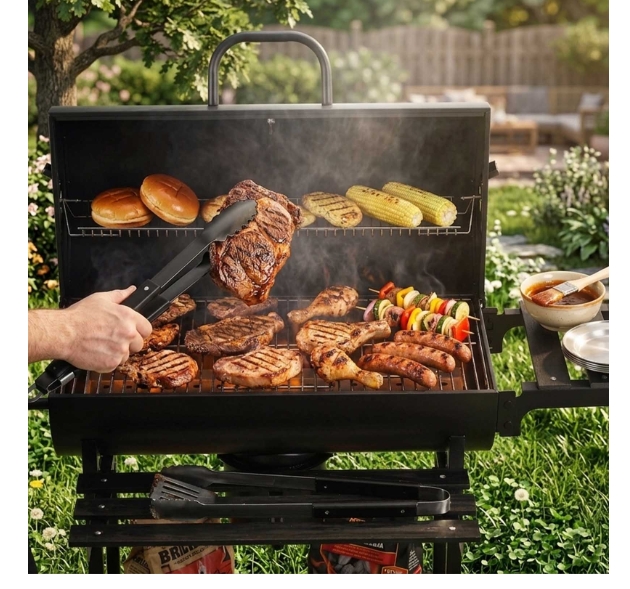 The lid helps retain heat and supports more controlled grilling, while the built-in thermometer allows you to monitor the temperature without lifting the cover. Moreover, the ventilation grates improve airflow and help manage the cooking conditions more effectively. As a result, the grill gives you better control over the final result and supports more consistent outdoor cooking.