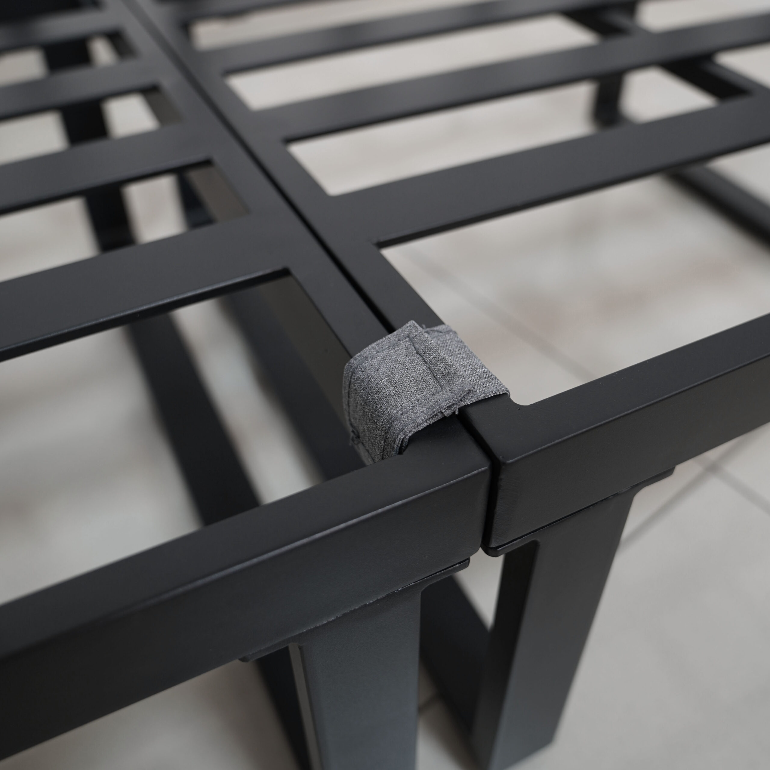 The frame is made from aluminium, which keeps the set light and easy to move while maintaining strength and stability. Powder‑coated in black, the frame resists corrosion and fits naturally into modern outdoor décors. Because of the material choice, the furniture remains reliable in changing weather conditions, making it suitable for long‑term outdoor use.
