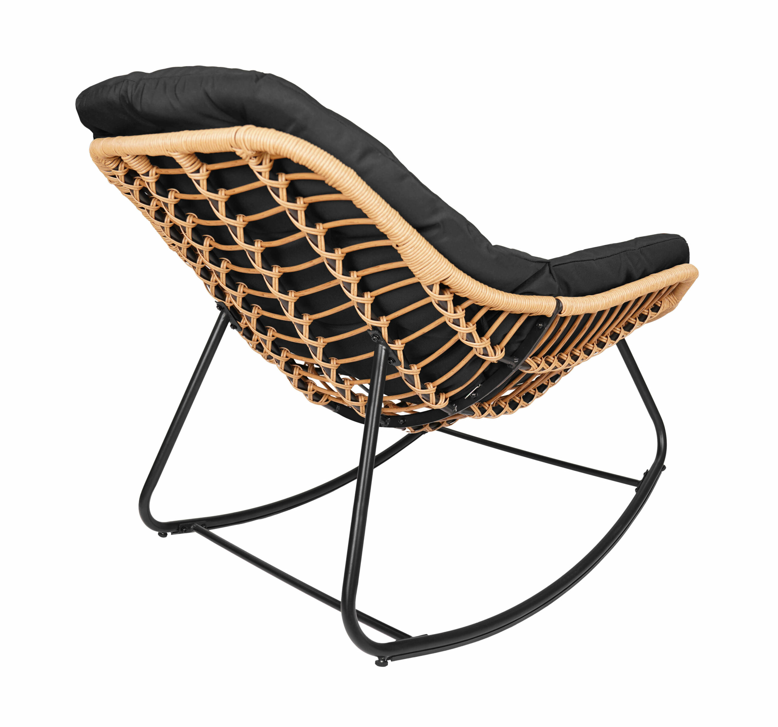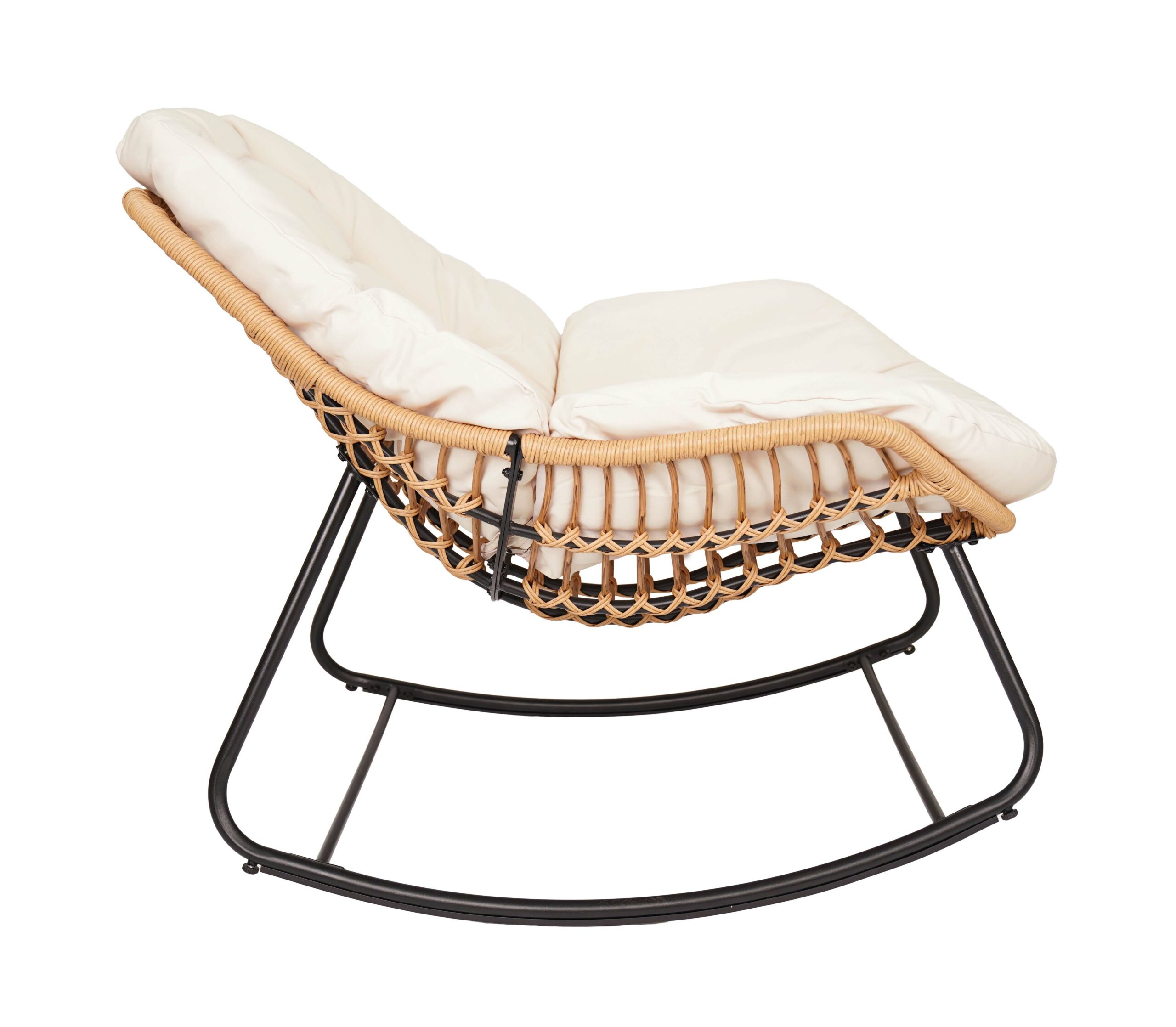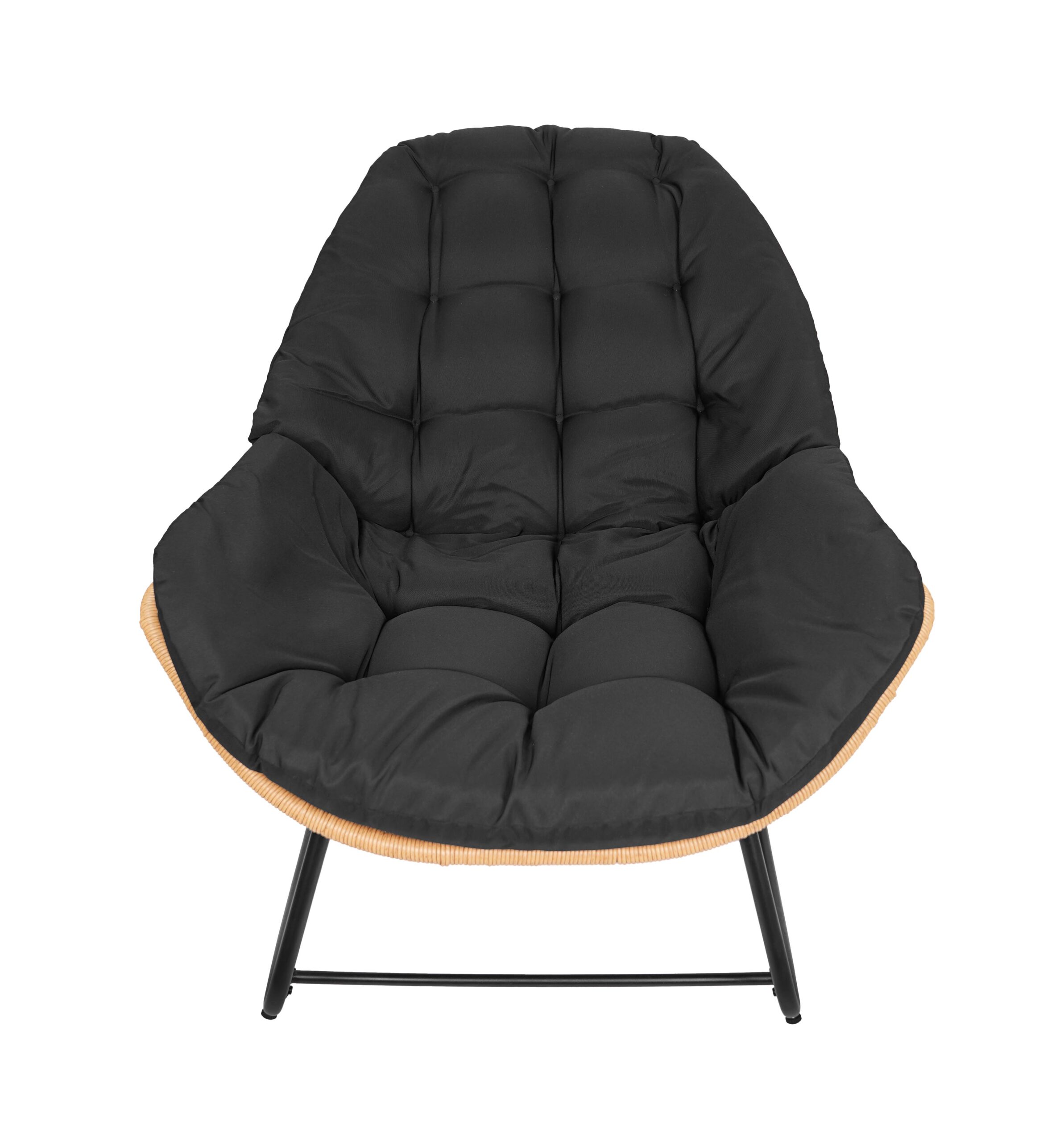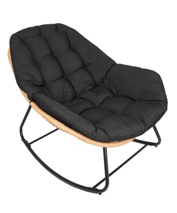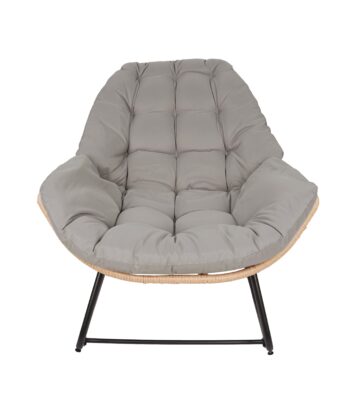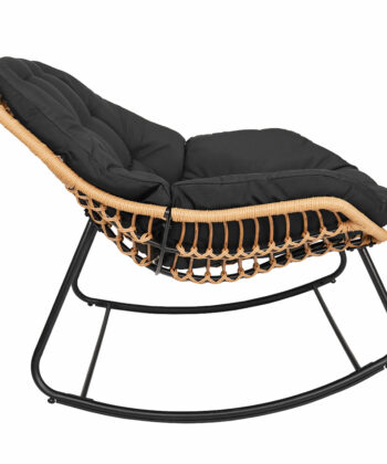 The black metal frame ensures solid stability. In addition, natural technorattan seat looks stylish. The beige outdoor fabric feels comfortable. As a result, you enjoy long relaxation sessions. Therefore, it becomes your favorite spot.