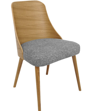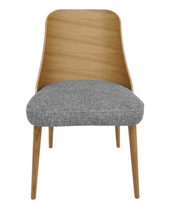 Oak Flow Grey Chenille Dining Chair with Curved Backrest and Natural Oak Frame