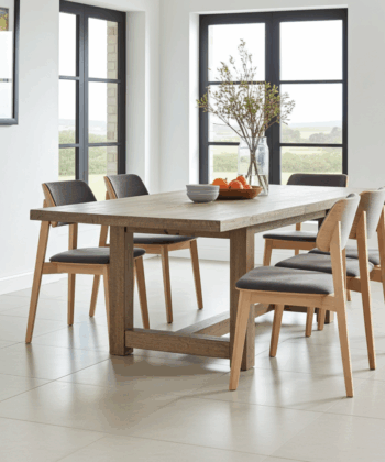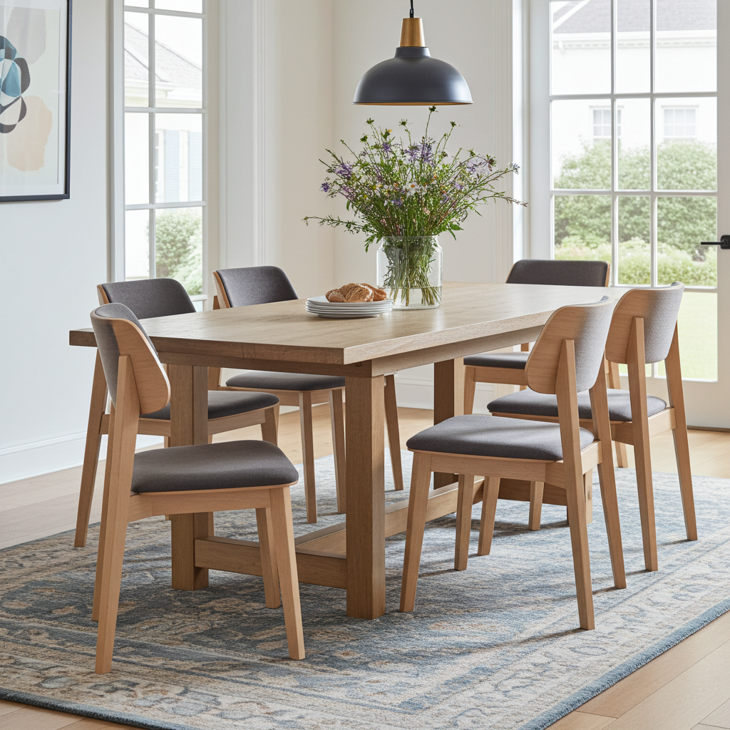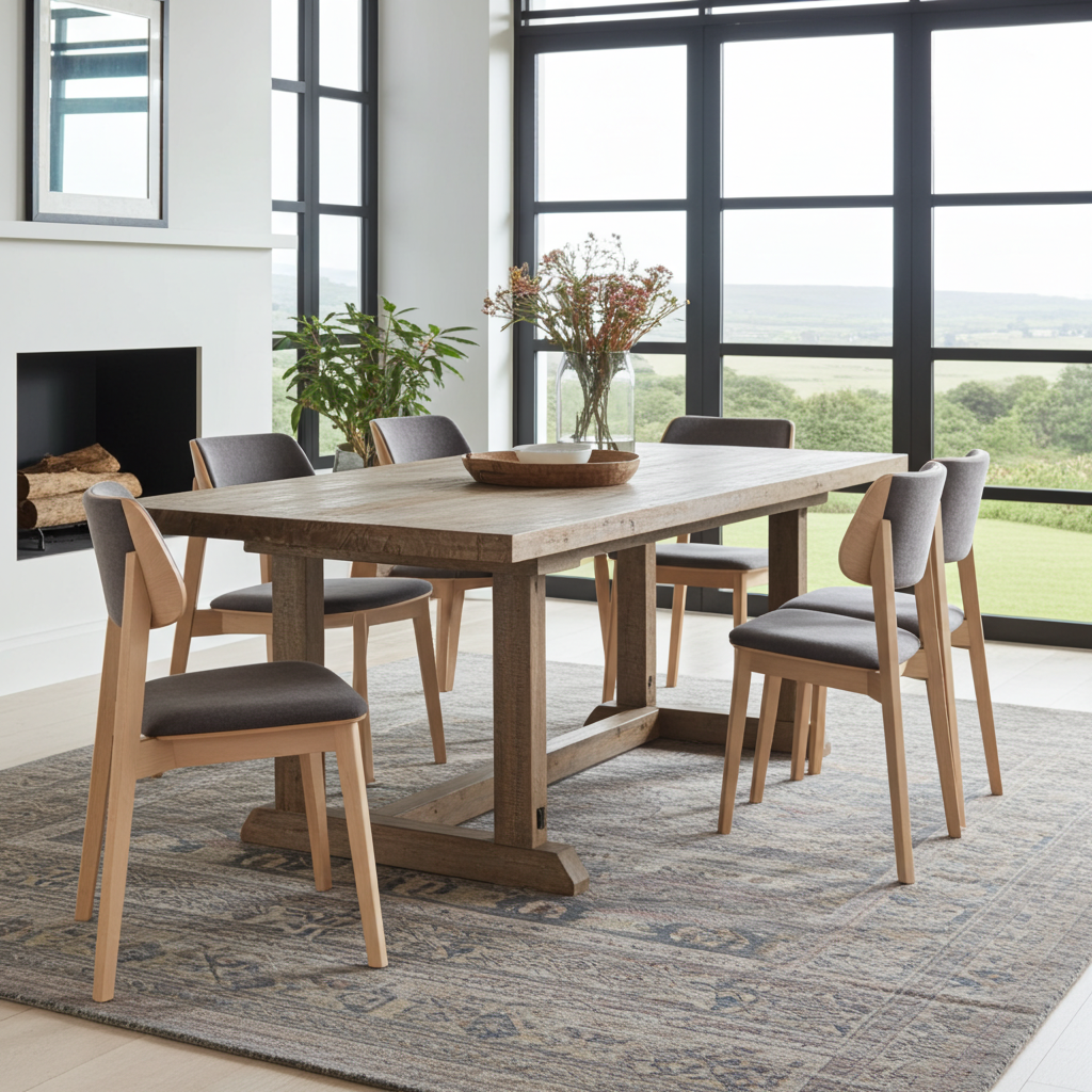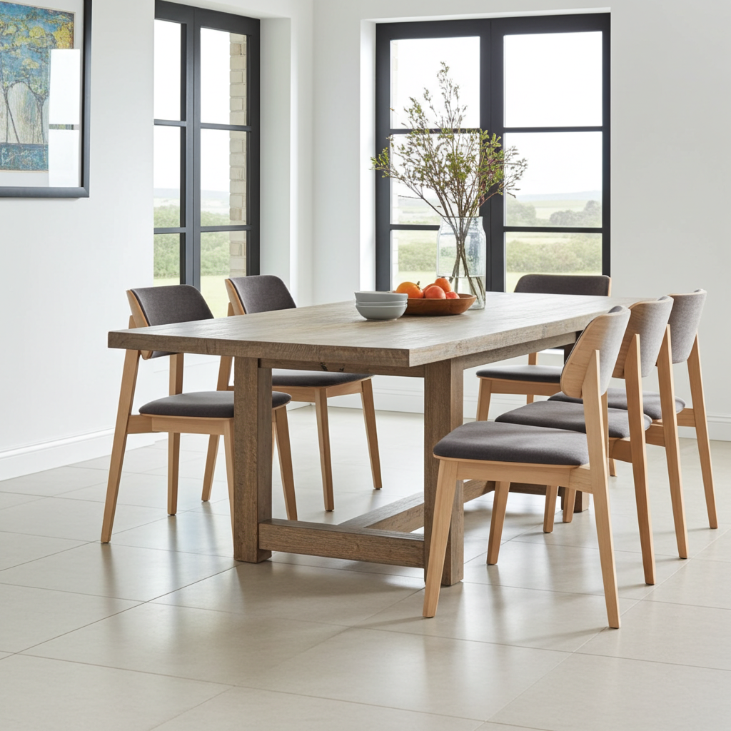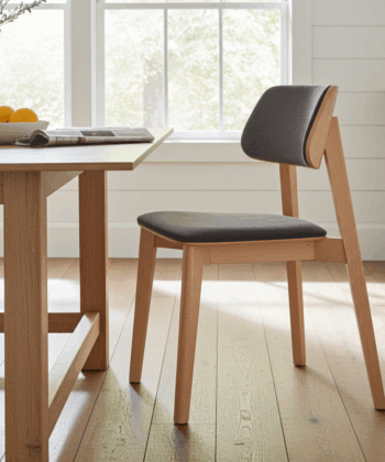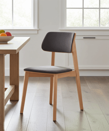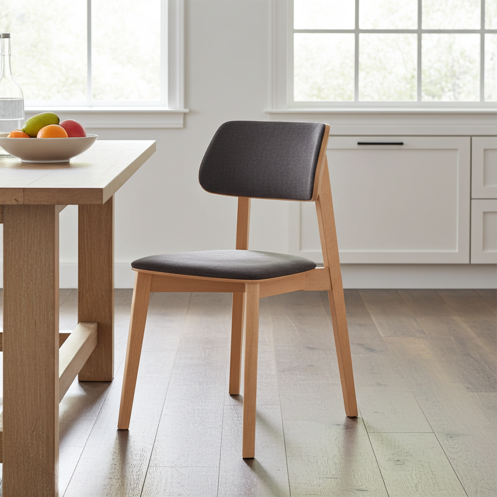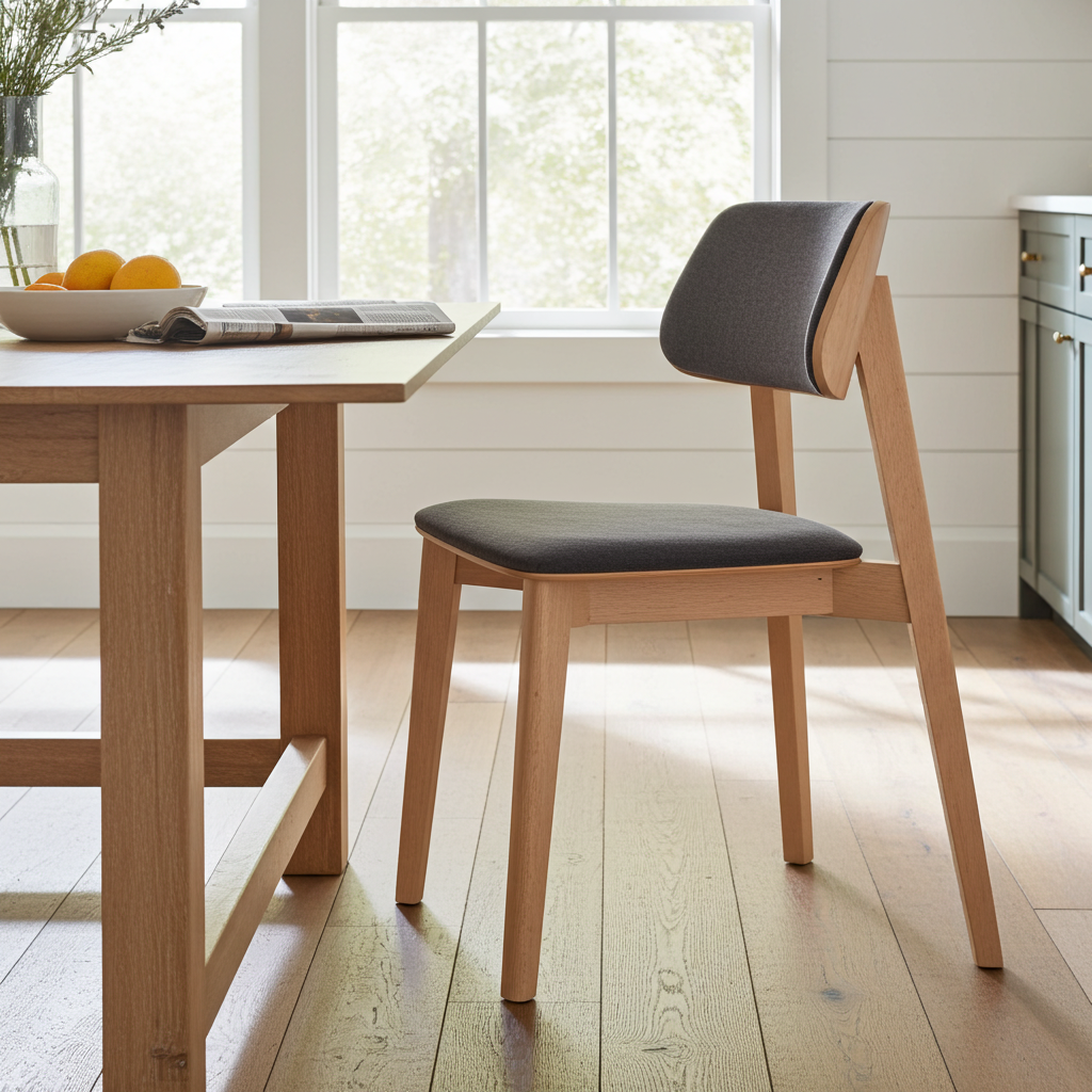 The Rowan Chair – Natural Wood Meets Modern Grey Upholstery