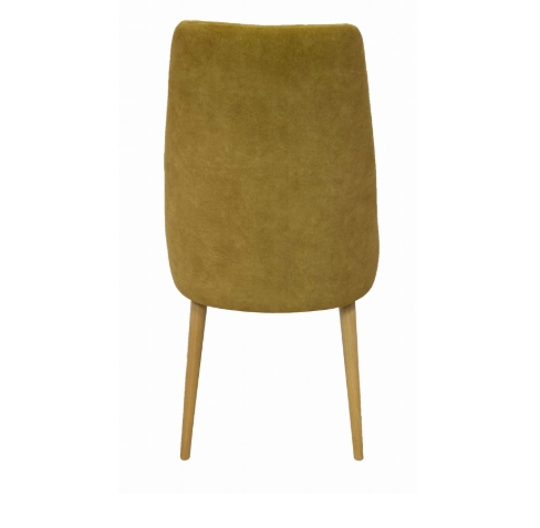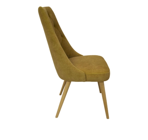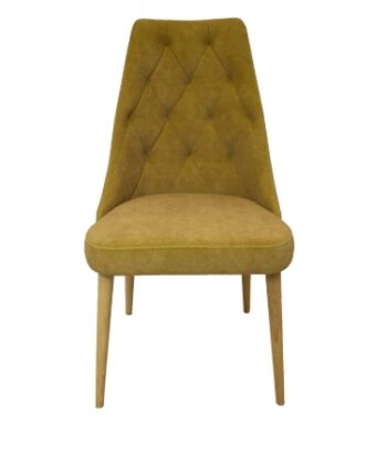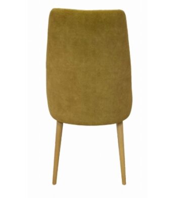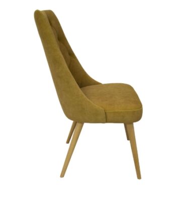 Crafted on sturdy natural beech wood legs, the chair offers stability and a warm wood tone that contrasts beautifully with the golden upholstery. Without armrests, it slides neatly under tables, saving space in compact Dublin apartments or eateries.