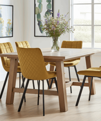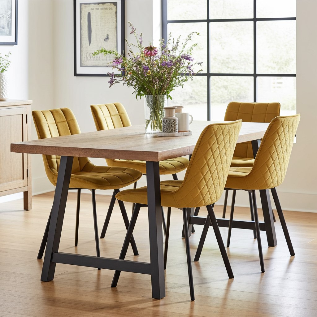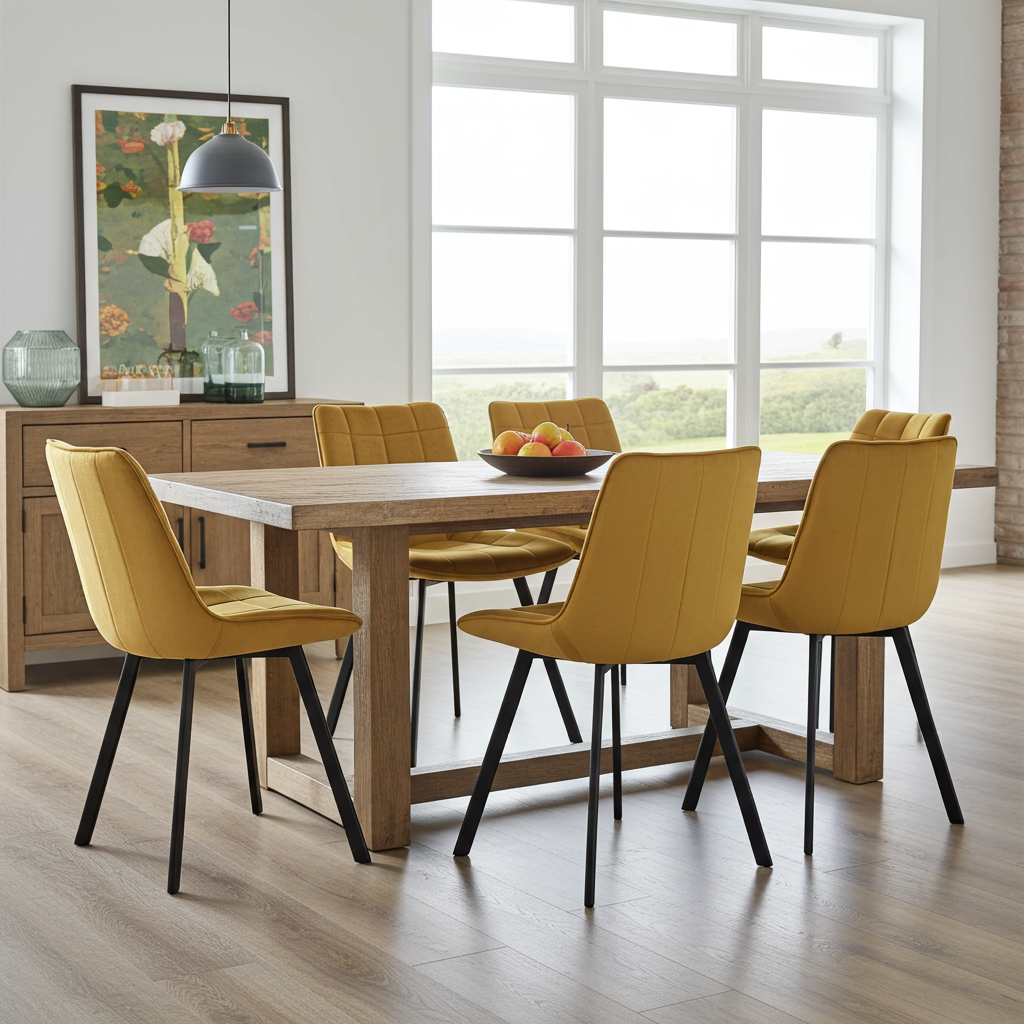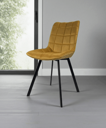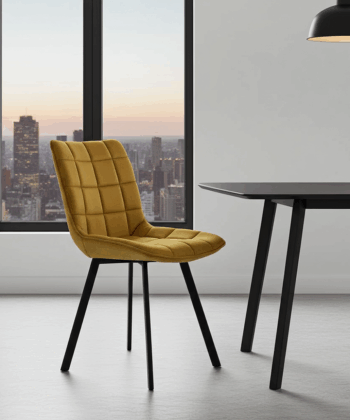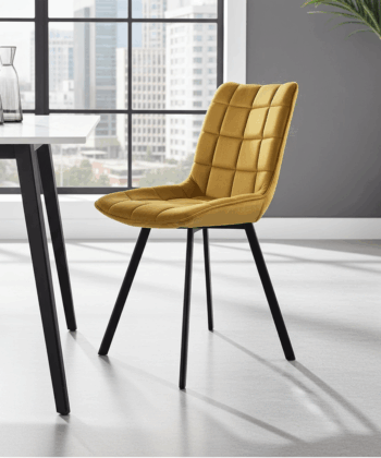 Meet the Lila Velvet Dining Chair, a modern Scandinavian‑inspired chair combining plush quilted upholstery with a supportive ergonomic shell for everyday comfort in kitchens and dining rooms. The sculpted seat and high, softly cushioned backrest cradle the body, while durable powder‑coated black metal legs provide excellent stability and a clean, contemporary silhouette. Available in on‑trend colours (forest green, mustard, and graphite grey), Lila adds a rich, tactile accent that pairs beautifully with wood, stone, or metal tables.Lila-3.jpg+2