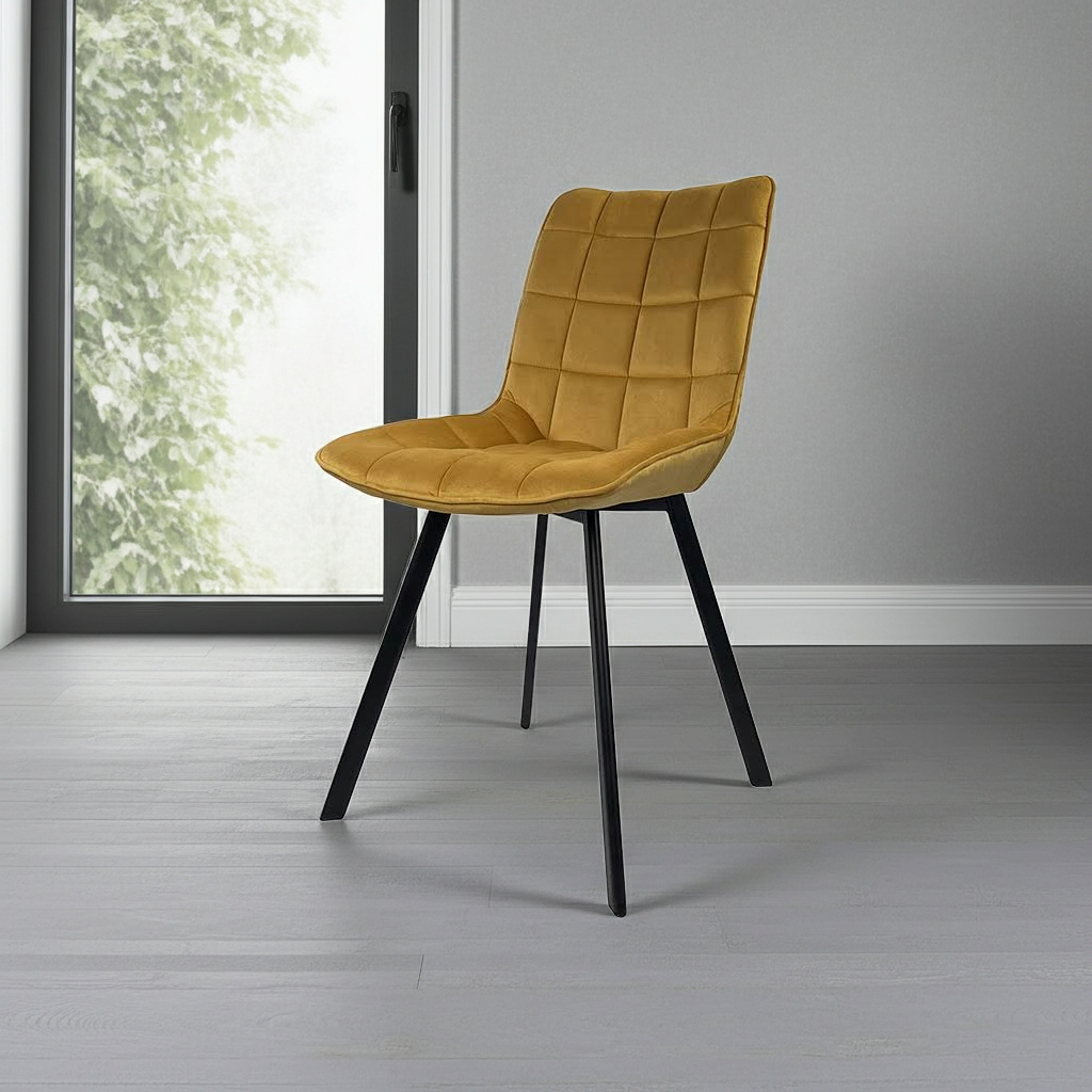Lila Velvet Dining Chair with Quilted Seat and Black Metal Legs – Modern Padded Comfort