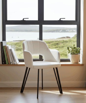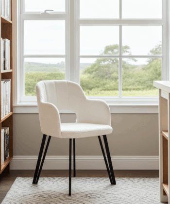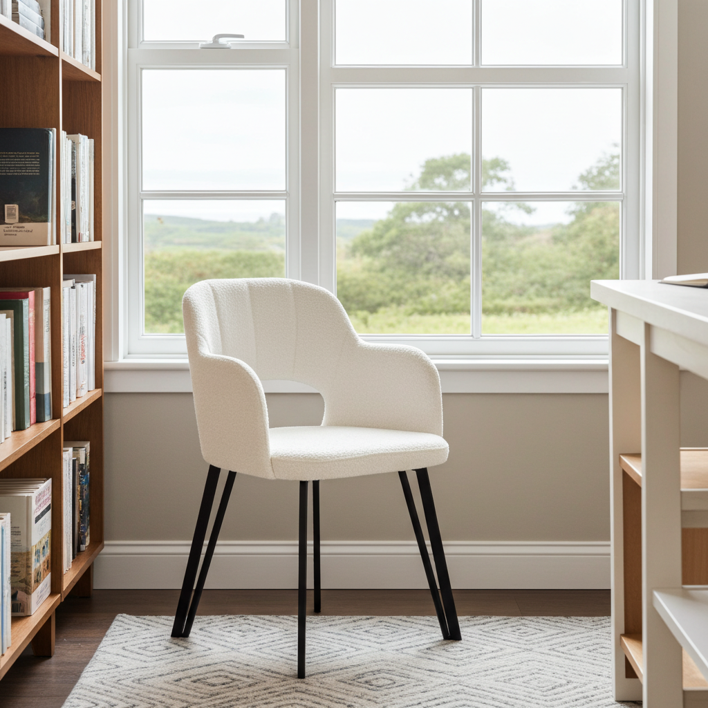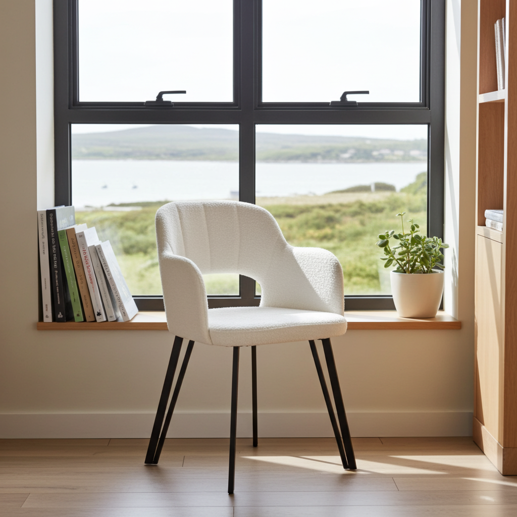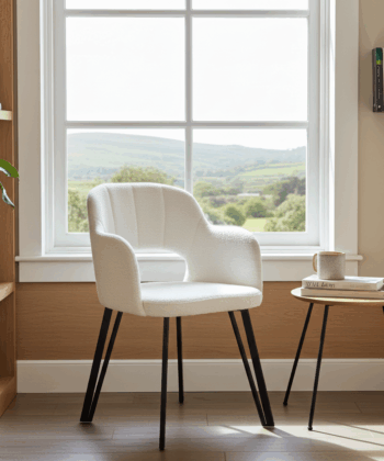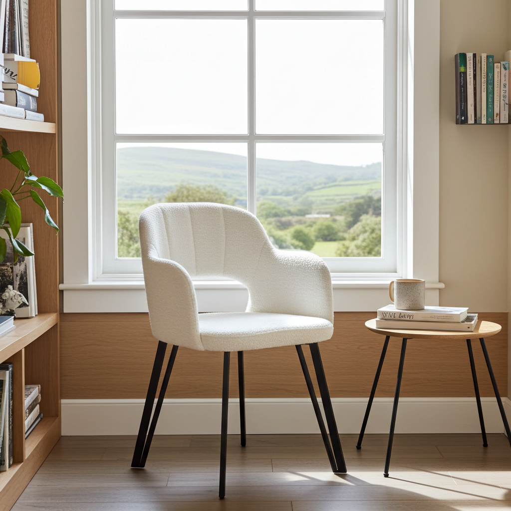The Luna chair demonstrates exceptional attention to material selection and craftsmanship. For instance, the premium bouclé upholstery provides both visual and tactile appeal. This textured fabric creates depth and interest while offering superior comfort. Furthermore, the cream colour palette ensures versatility across various interior colour schemes. The fabric’s natural texture catches light beautifully throughout the day.