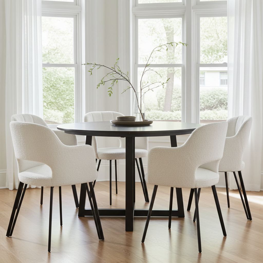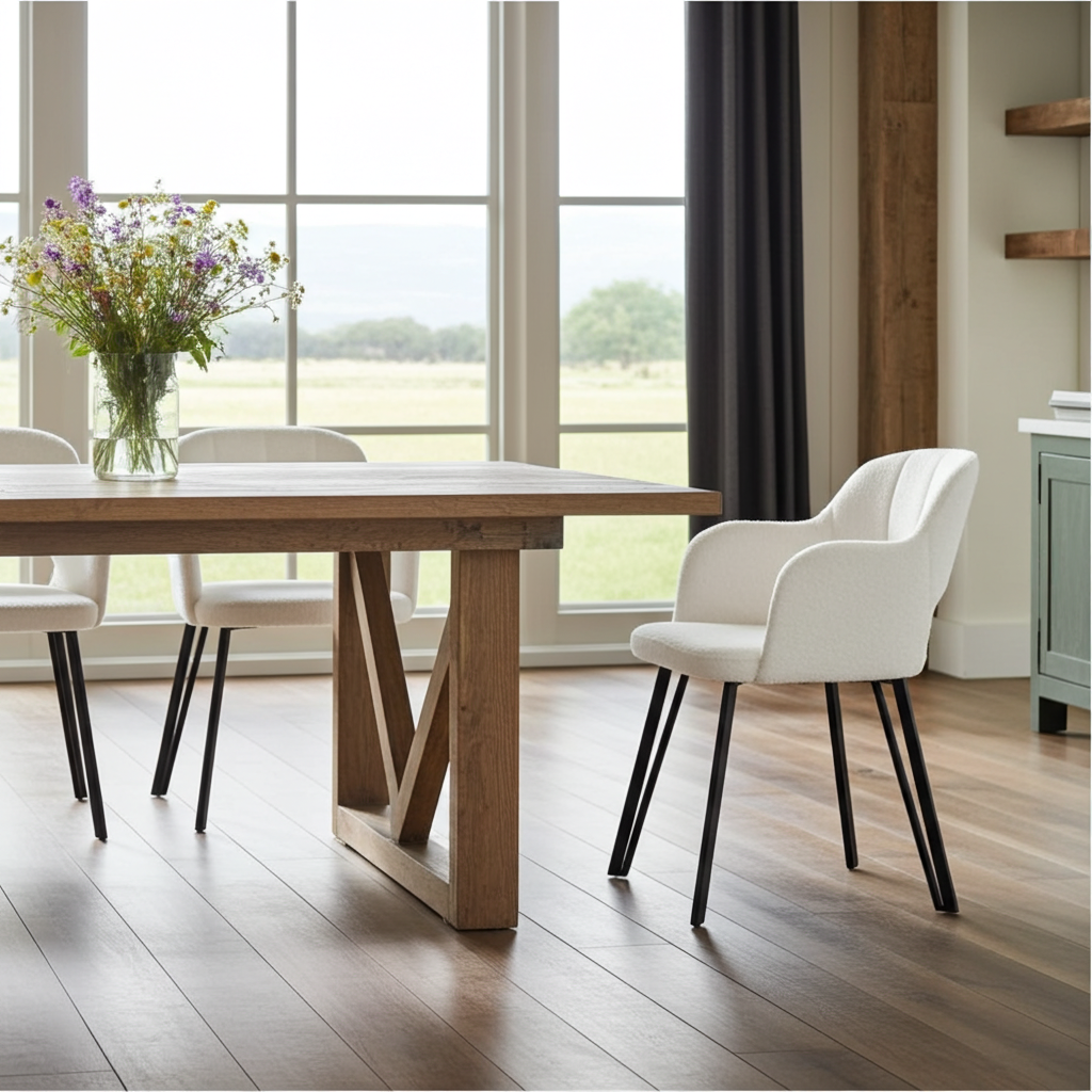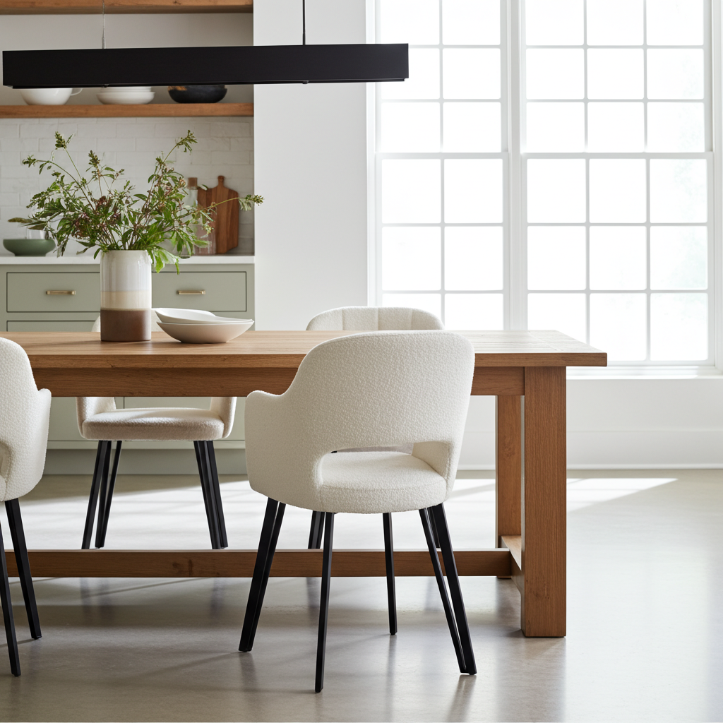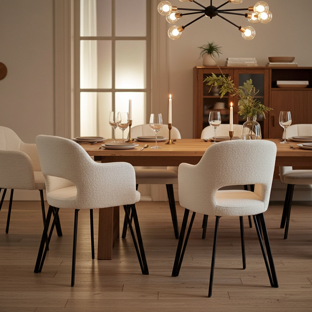 The Luna chair demonstrates exceptional attention to material selection and craftsmanship. For instance, the premium bouclé upholstery provides both visual and tactile appeal. This textured fabric creates depth and interest while offering superior comfort. Furthermore, the cream colour palette ensures versatility across various interior colour schemes. The fabric’s natural texture catches light beautifully throughout the day.