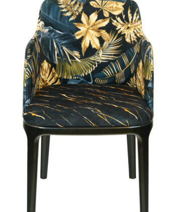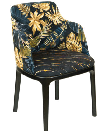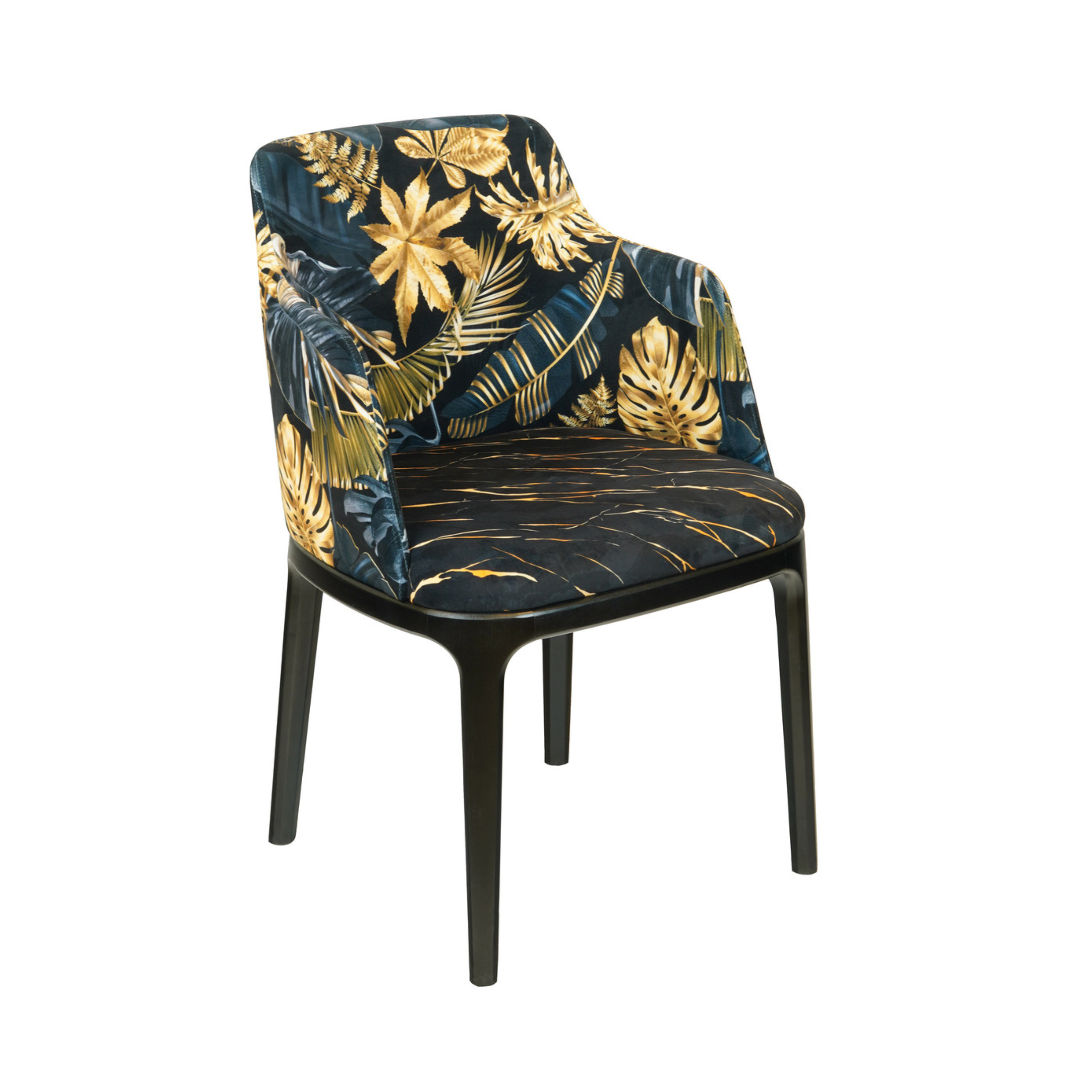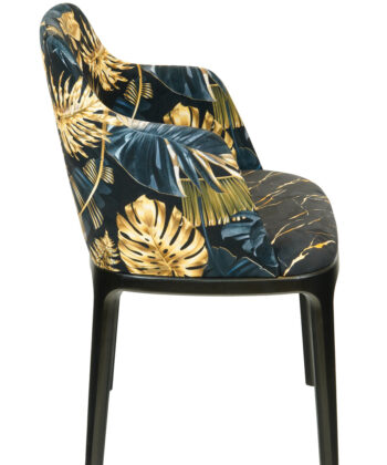 The Monstera Velvet Dining Chair combines elegant design with everyday comfort, creating a striking accent for any interior. Its simple form, enriched with patterned velvet fabric, makes it perfect for dining rooms, living spaces, hotels, and stylish restaurants.