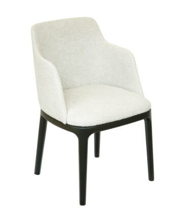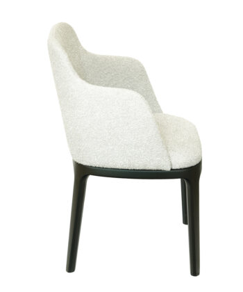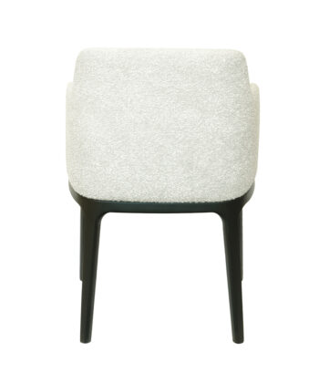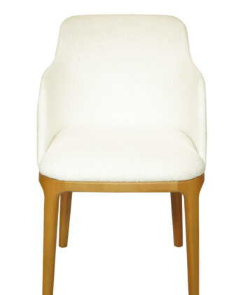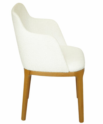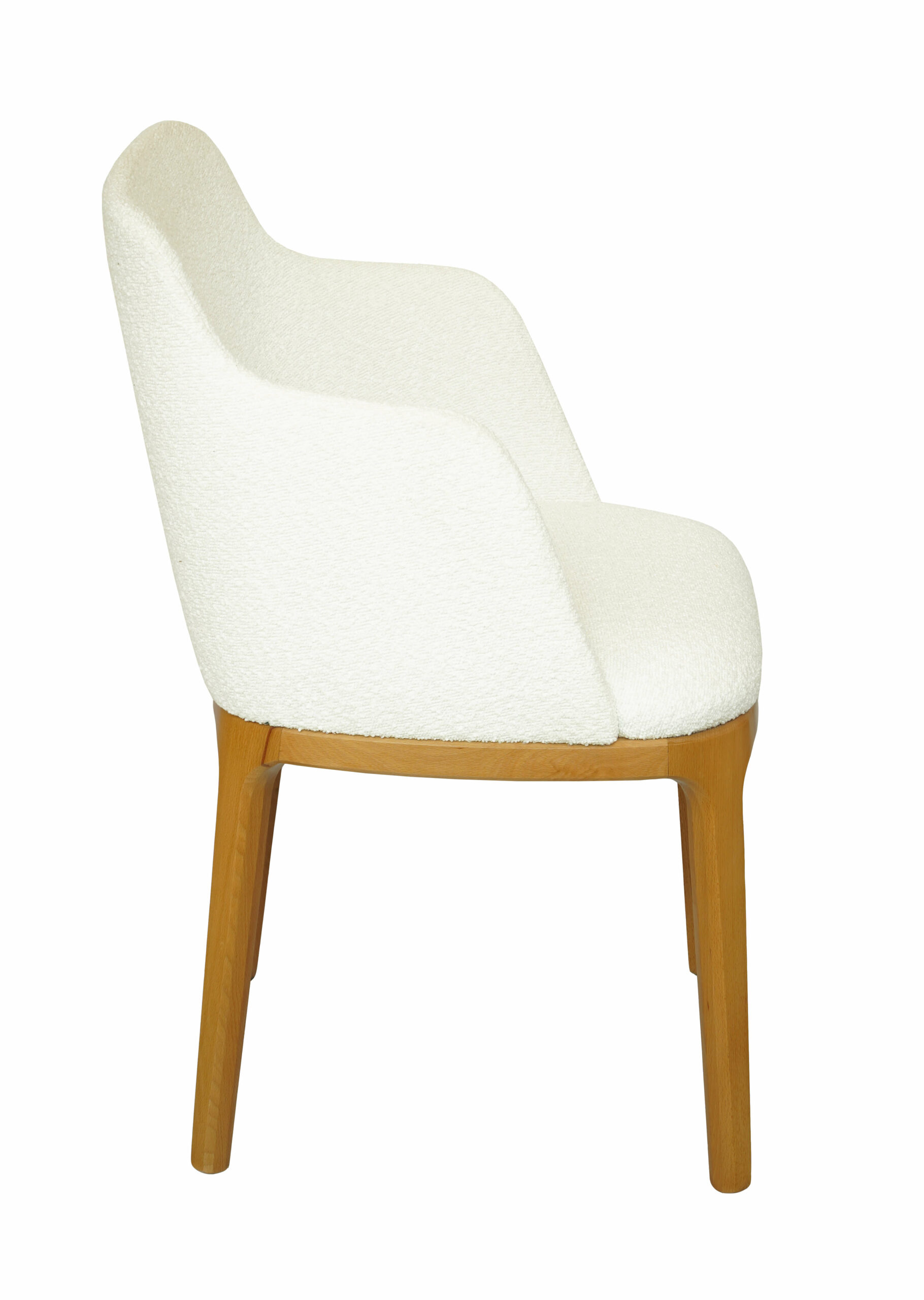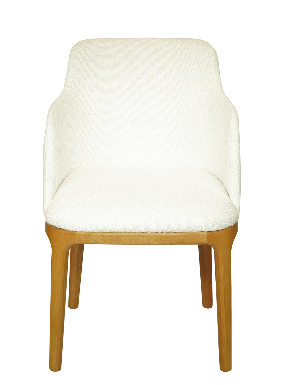 Moreover, the ergonomically shaped backrest increases comfort during longer sitting. Integrated armrests gently support the body, making this model an excellent choice for long dinners and relaxed conversations. Thanks to its durable construction, this wooden upholstered chair is designed to serve for many years.