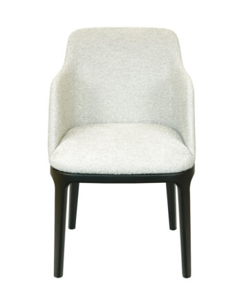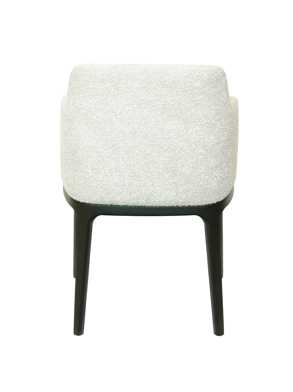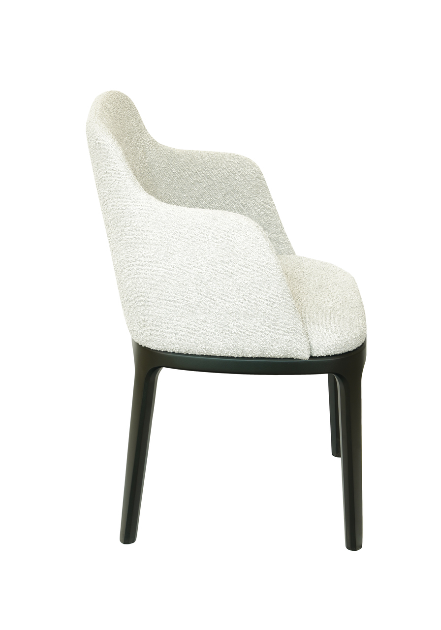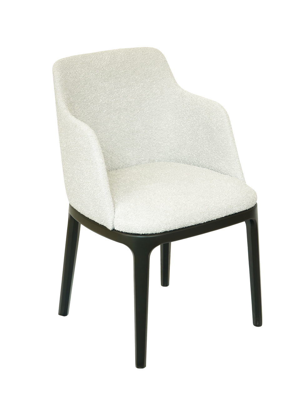 Moreover, the ergonomically shaped backrest increases comfort during longer sitting. Integrated armrests gently support the body, making this model an excellent choice for long dinners and relaxed conversations. Thanks to its durable construction, this wooden upholstered chair is designed to serve for many years.