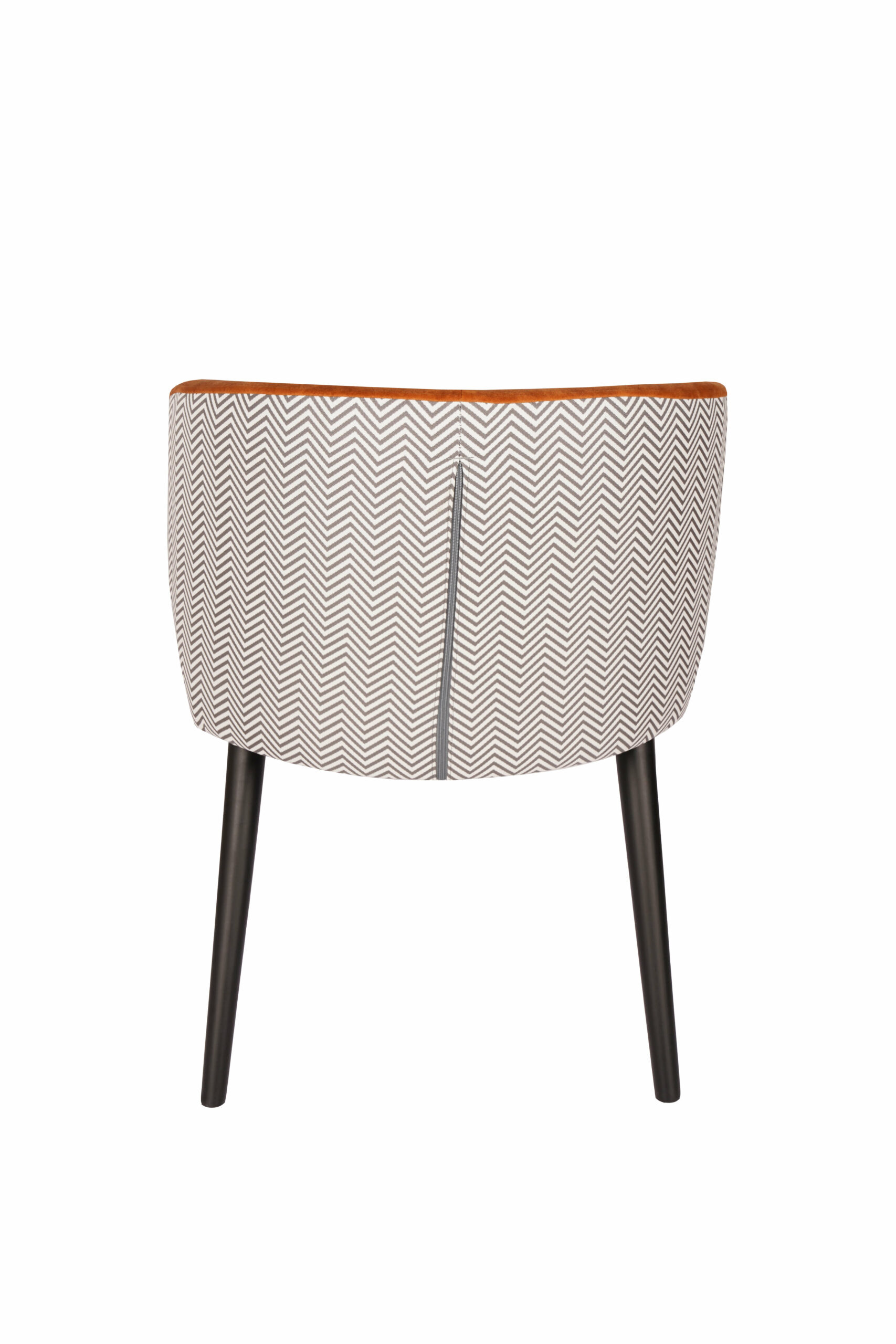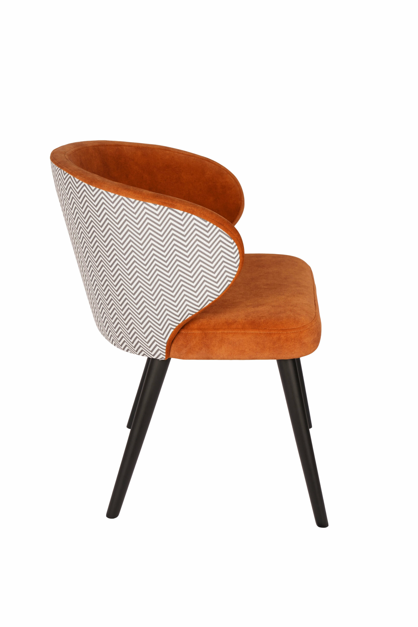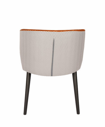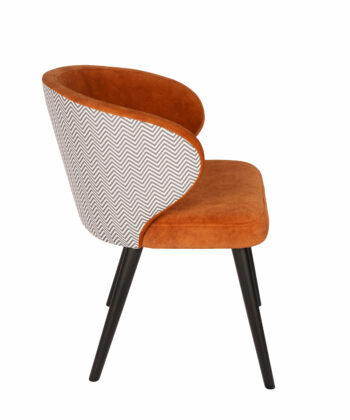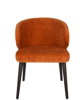 The chair stands on solid beech wood legs in a black finish, giving it a modern look and excellent stability. Integrated padded armrests provide extra comfort and make the chair feel more like a compact lounge seat, which works just as well at a dining table as it does in a reading corner or hotel lobby.