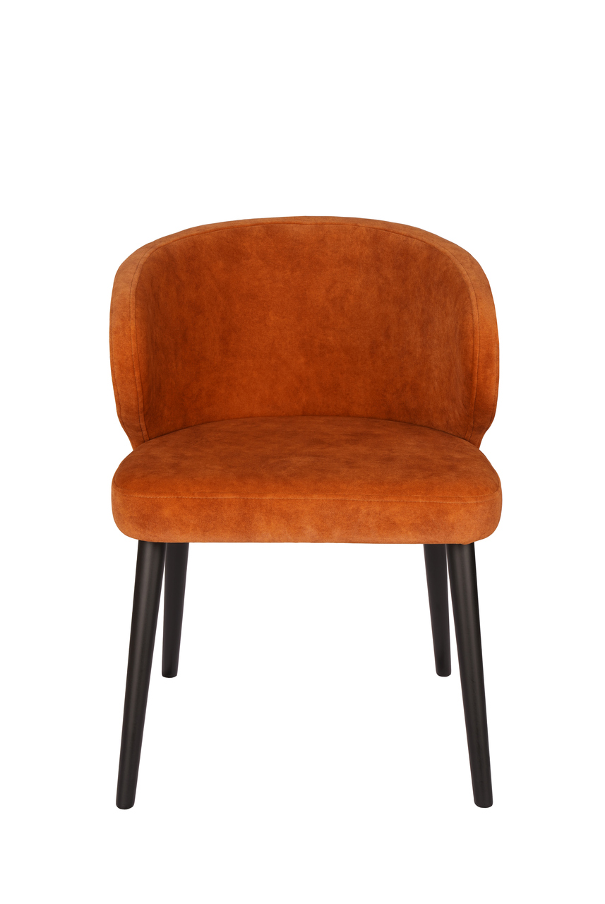 A generously padded seat ensures comfort even during long dinners or relaxed evenings with guests. Additionally, the curved, ergonomic backrest gently supports the spine and wraps around the body, so the chair feels secure and cosy. The velvet fabric is soft to the touch, which further enhances the feeling of everyday luxury.