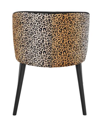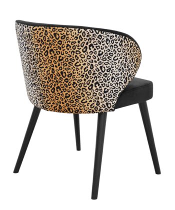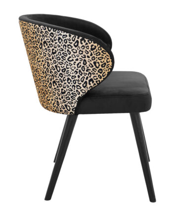 The Velvet Panther Accent Chair is designed for people who want seating with real personality. The front of the chair features smooth black velvet, while the backrest is finished in a striking leopard-style pattern that instantly draws the eye and adds energy to any dining room or living space. This contrast makes the chair a strong focal point in modern, glamour or eclectic interiors.