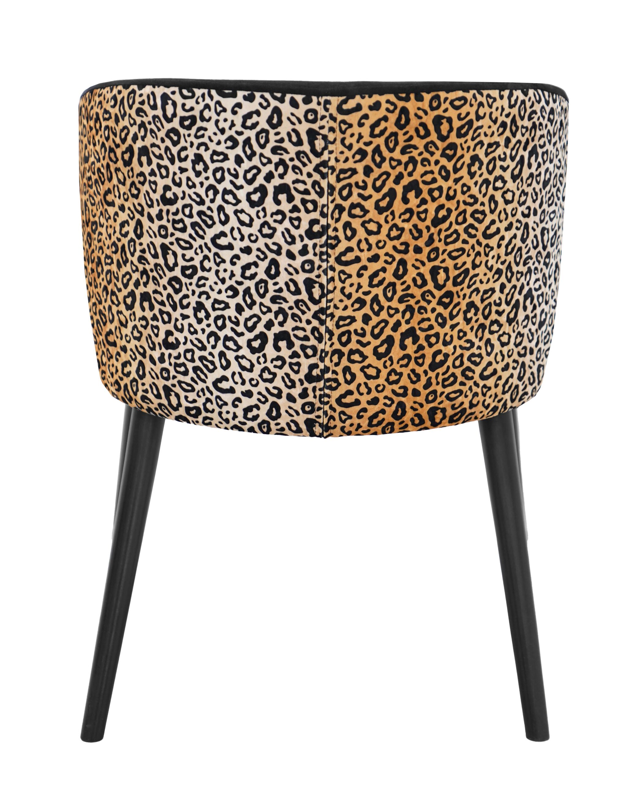 Velvet Panther Black Dining and Accent Chair with Leopard Back, Armrests and Black Beech Legs