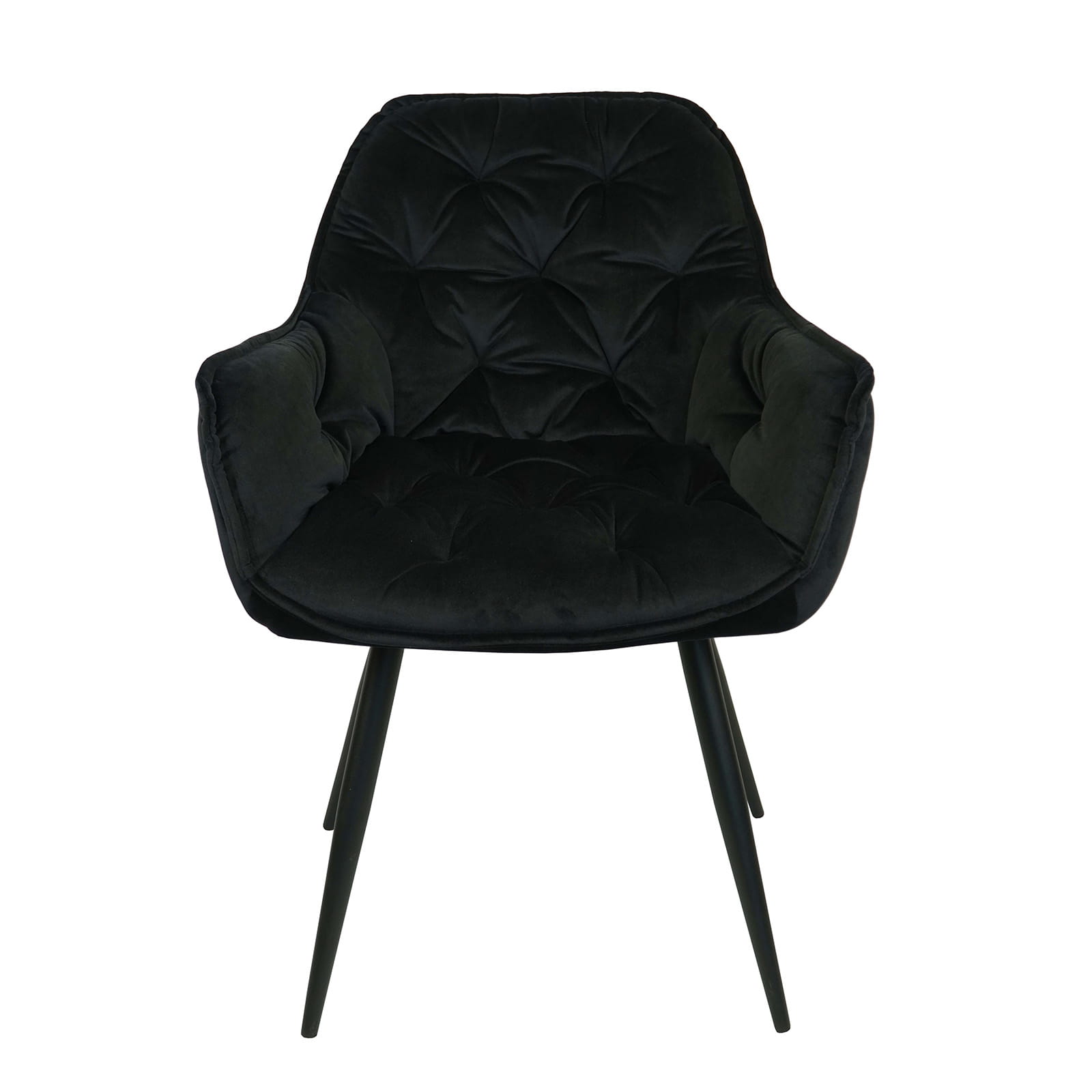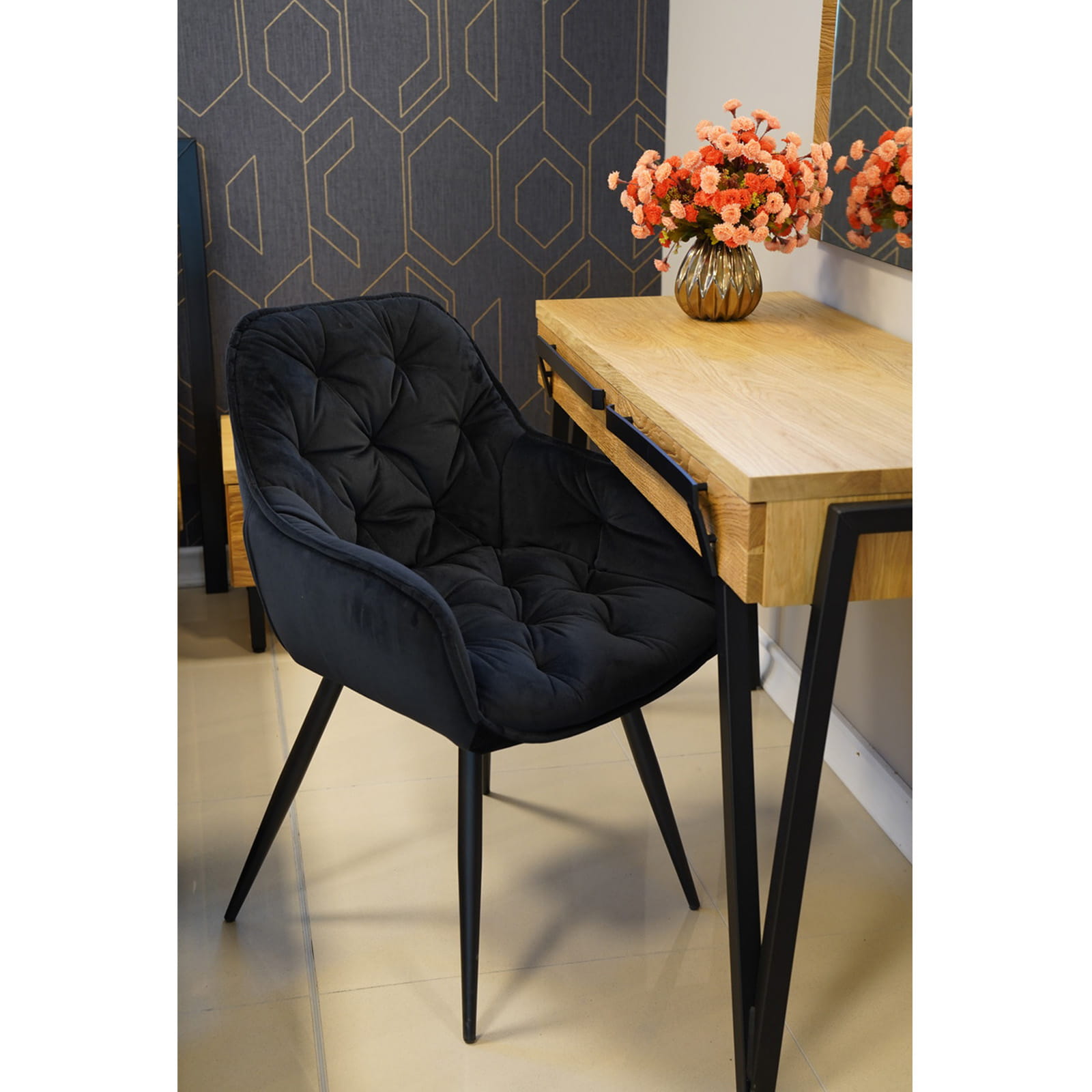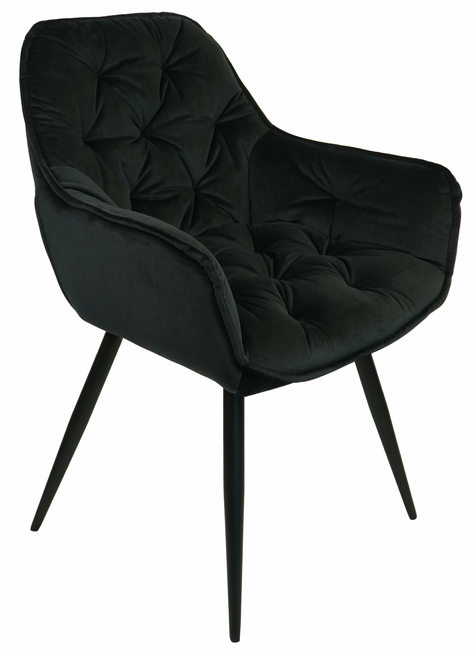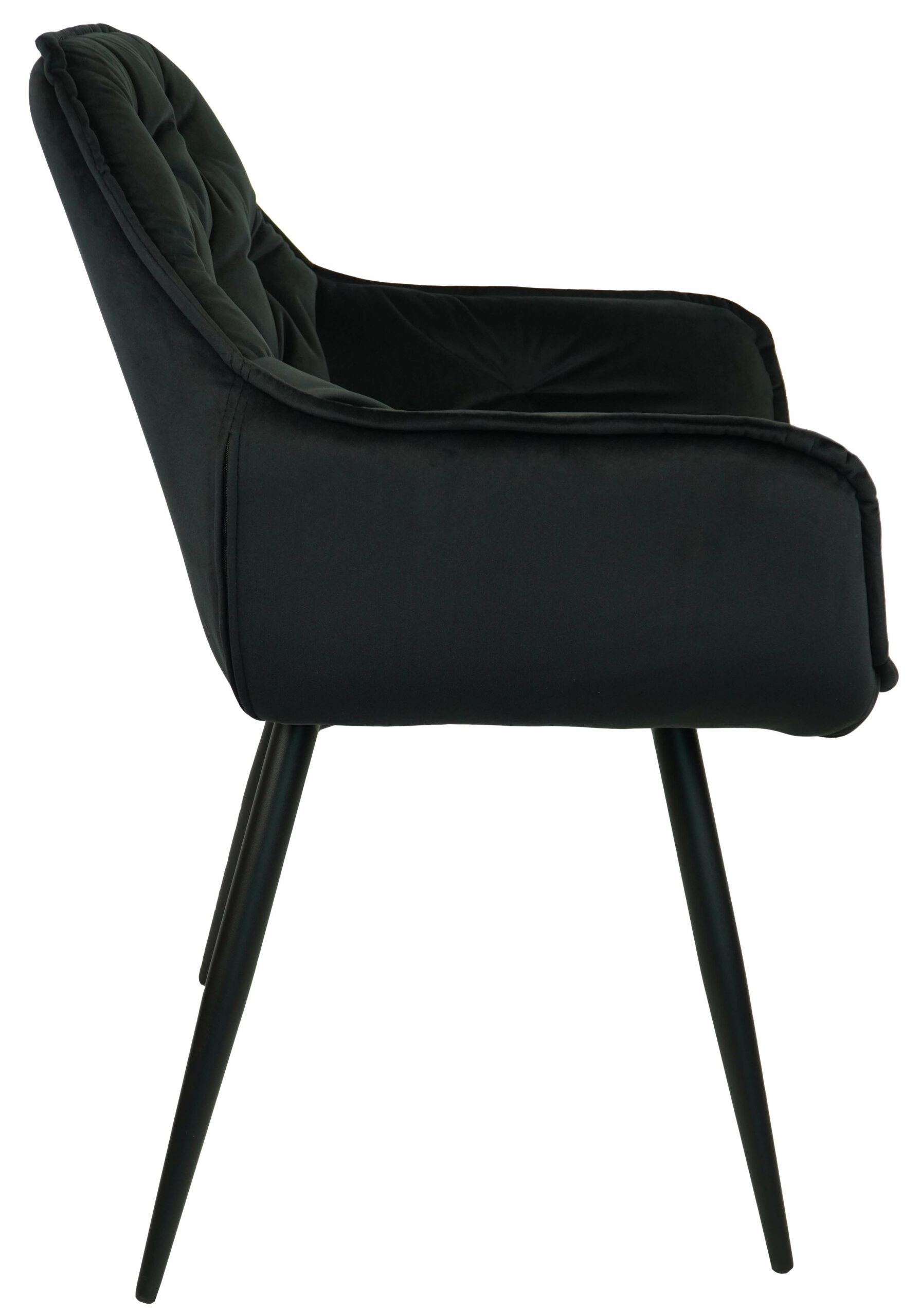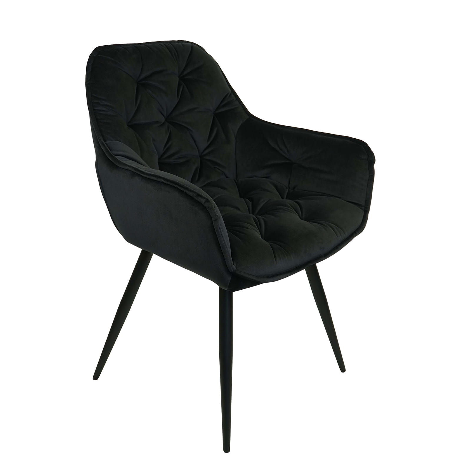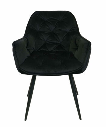 Vitos Dining Chair – Modern Black Velvet Upholstered Armchair with Metal Frame