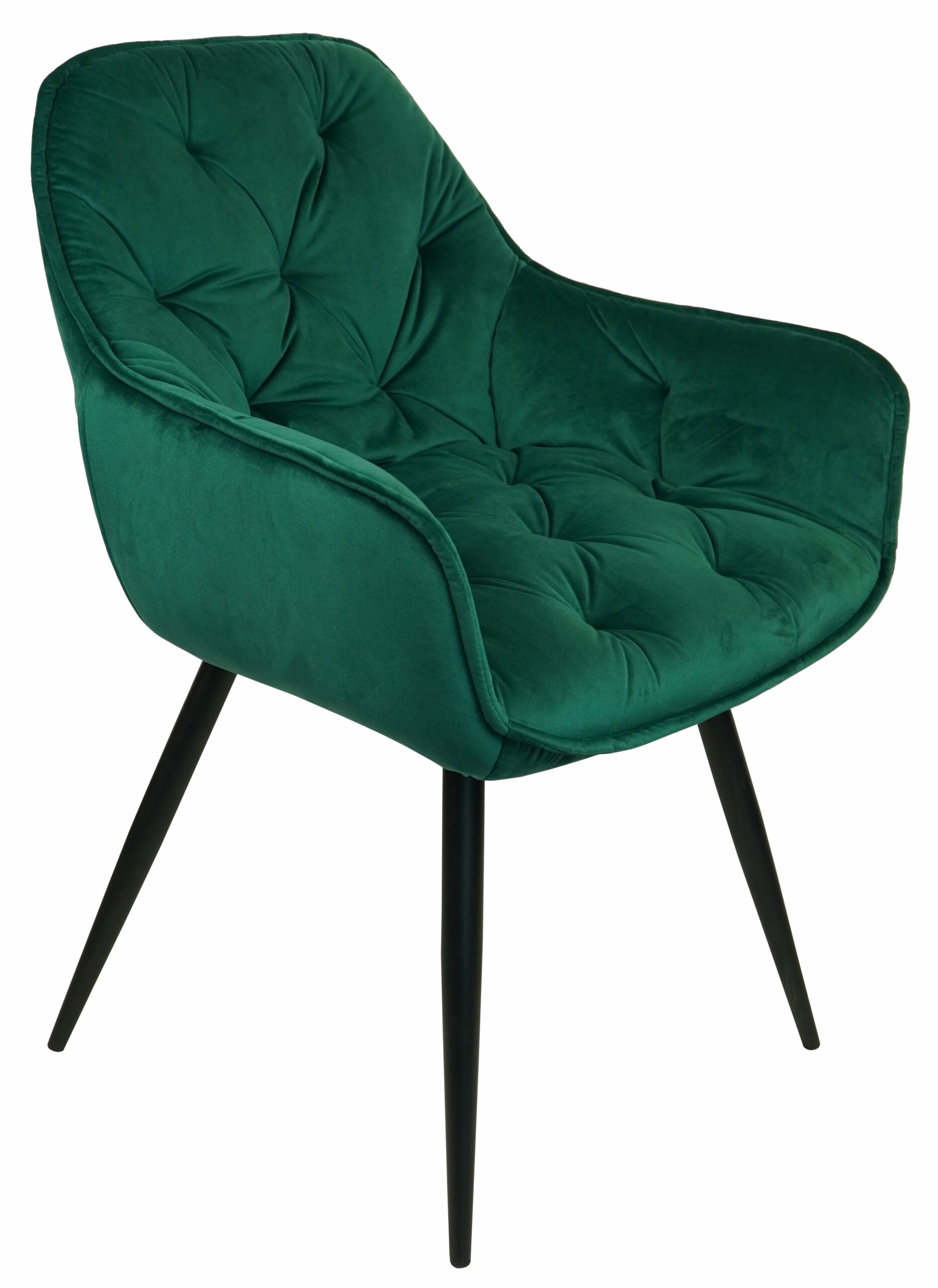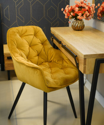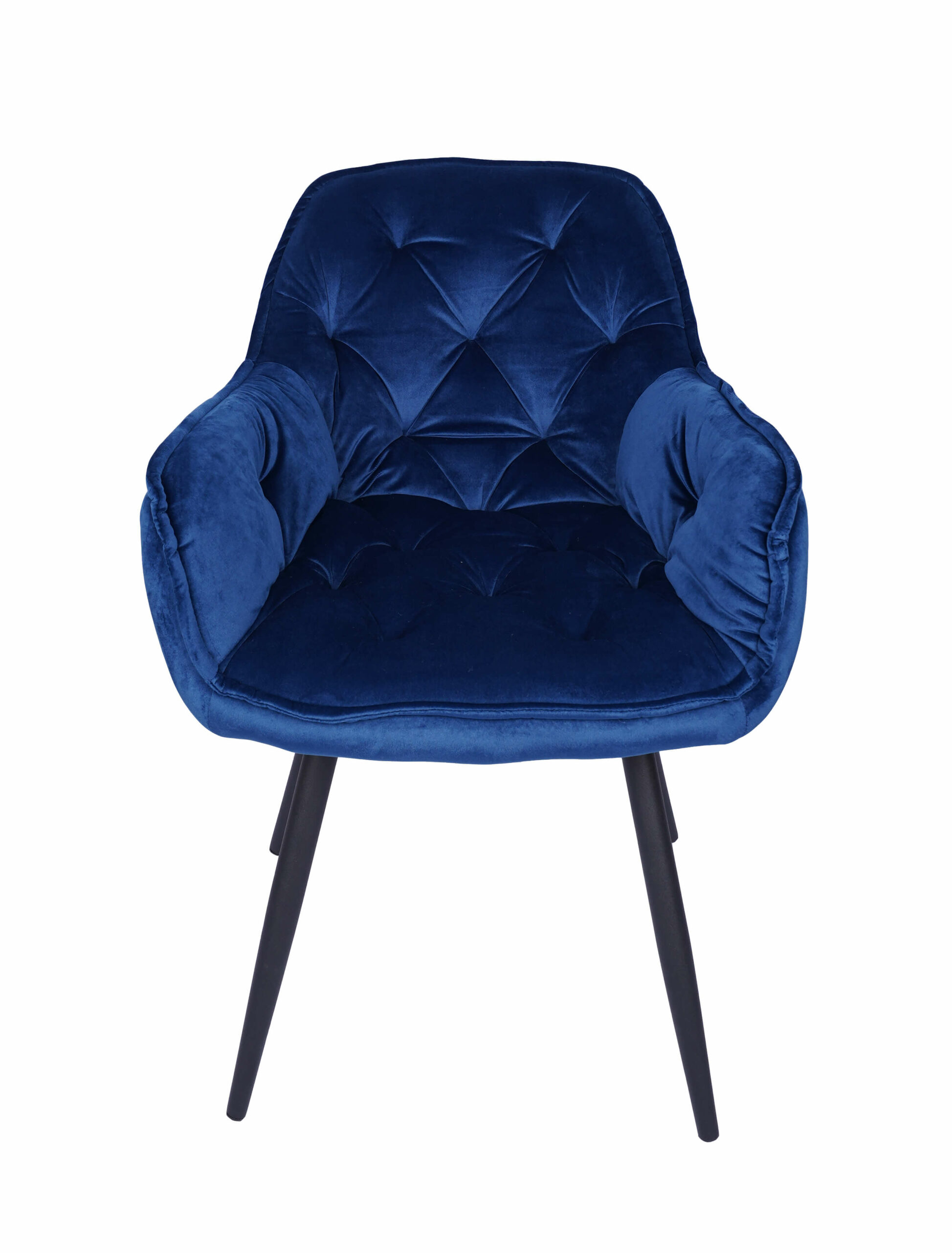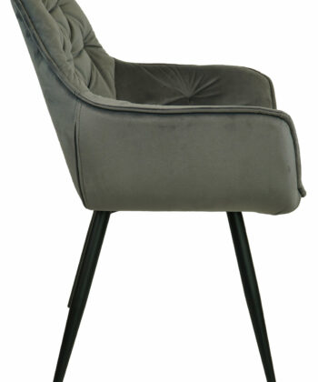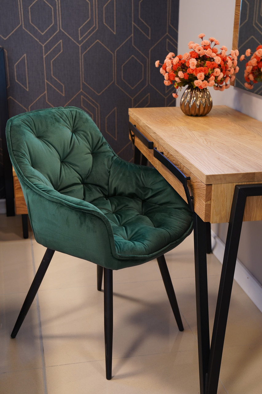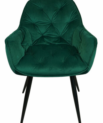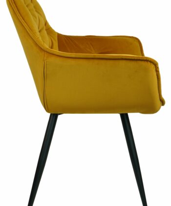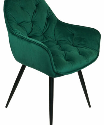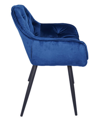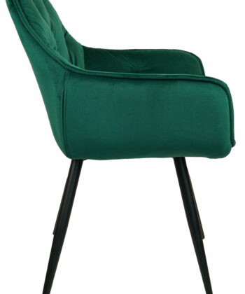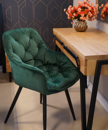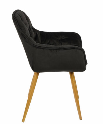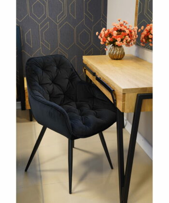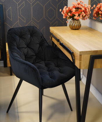 The soft velvet fabric gives the chair an elegant look and a pleasant touch. Moreover, it is easy to maintain — a simple wipe with a damp cloth keeps it spotless. The wide seat and comfortable armrests ensure superior comfort even during long gatherings. Additionally, the black metal frame provides stability and a sleek, contemporary finish.