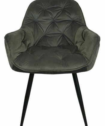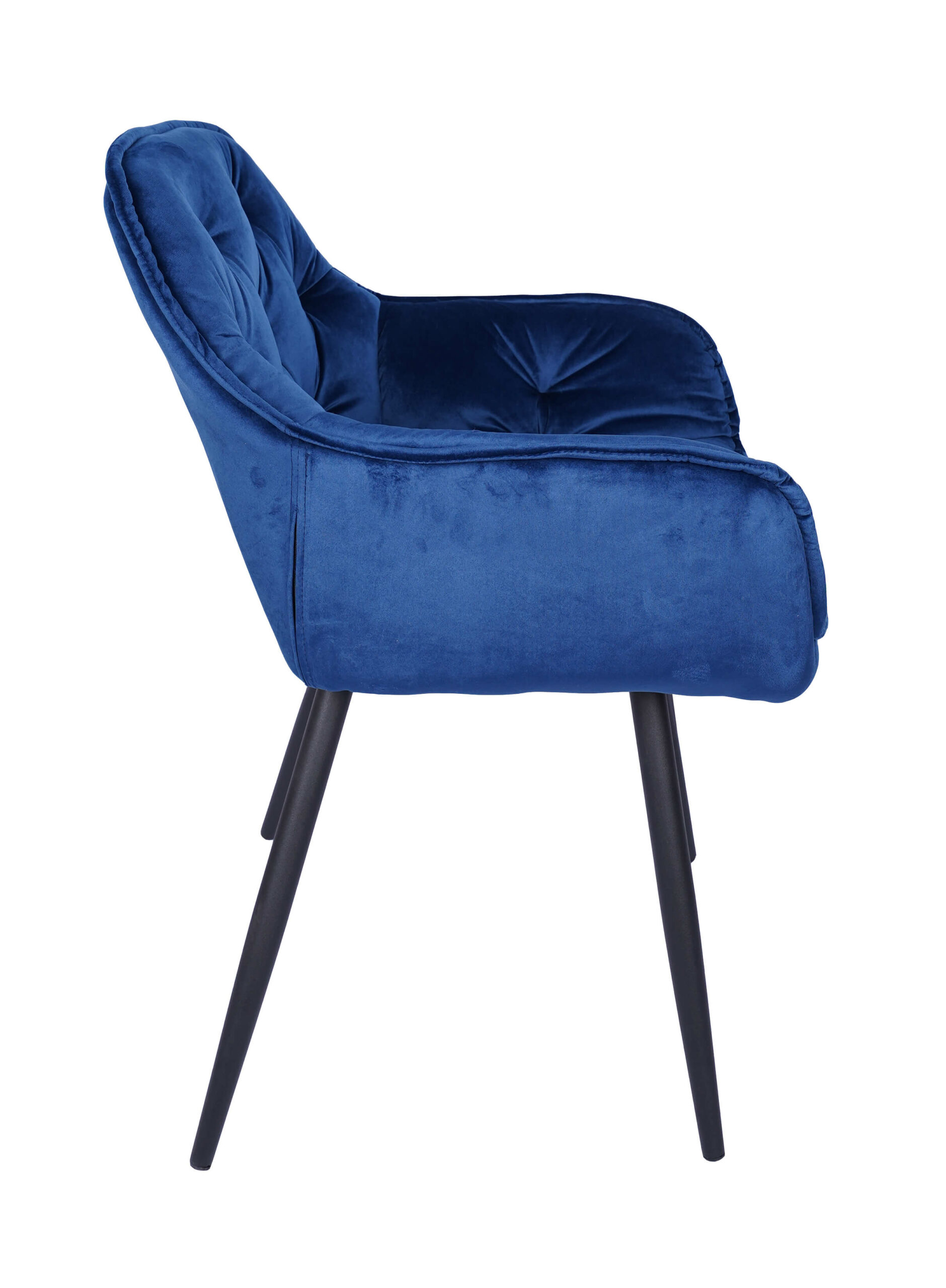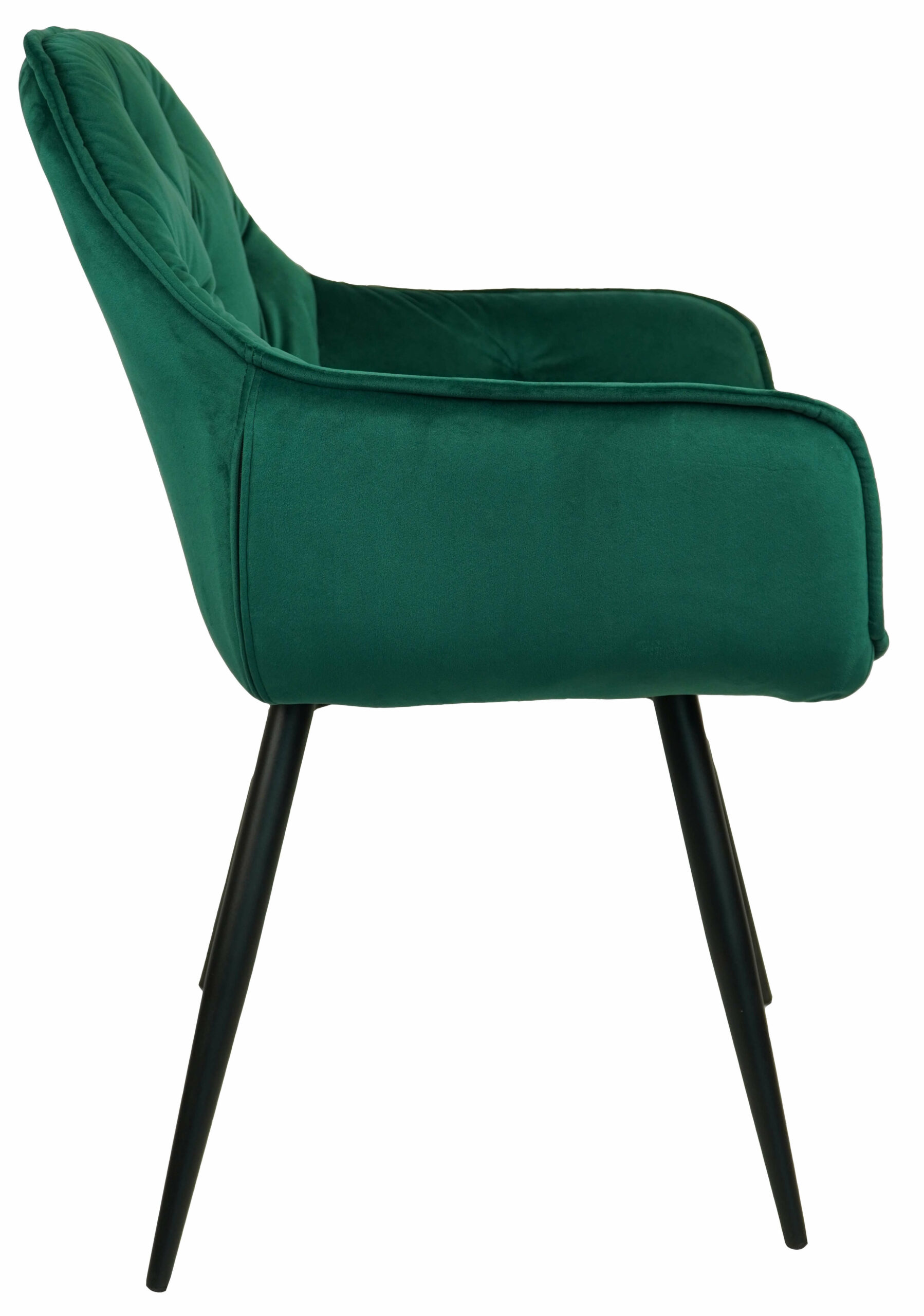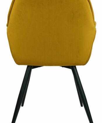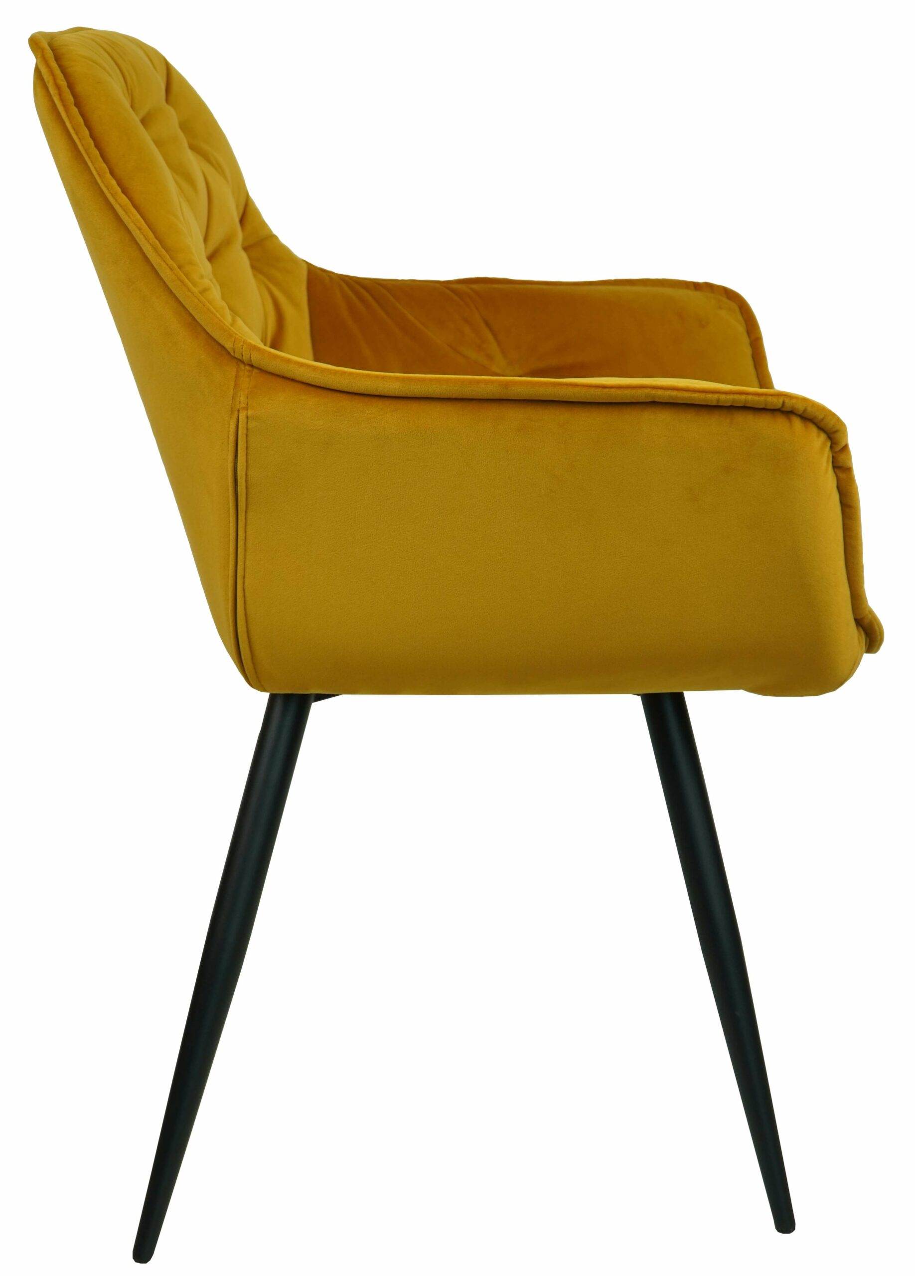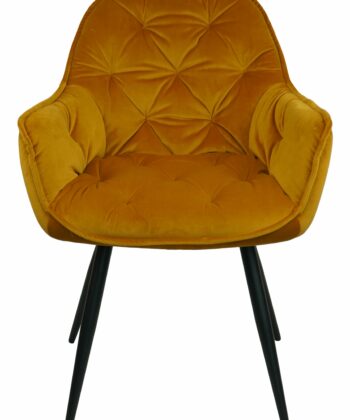 The soft velvet fabric gives the chair an elegant look and a pleasant touch. Moreover, it is easy to maintain — a simple wipe with a damp cloth keeps it spotless. The wide seat and comfortable armrests ensure superior comfort even during long gatherings. Additionally, the black metal frame provides stability and a sleek, contemporary finish.