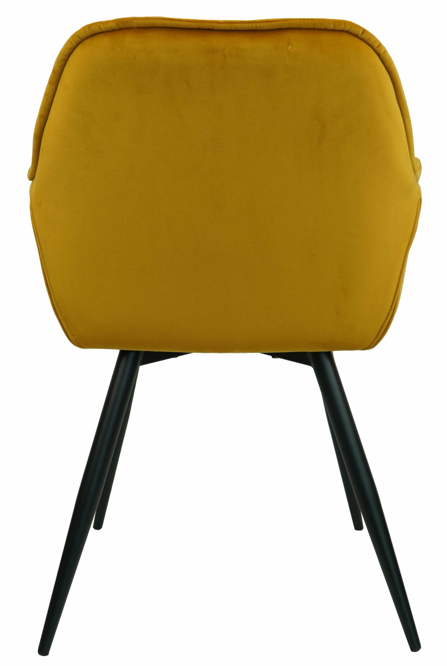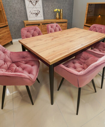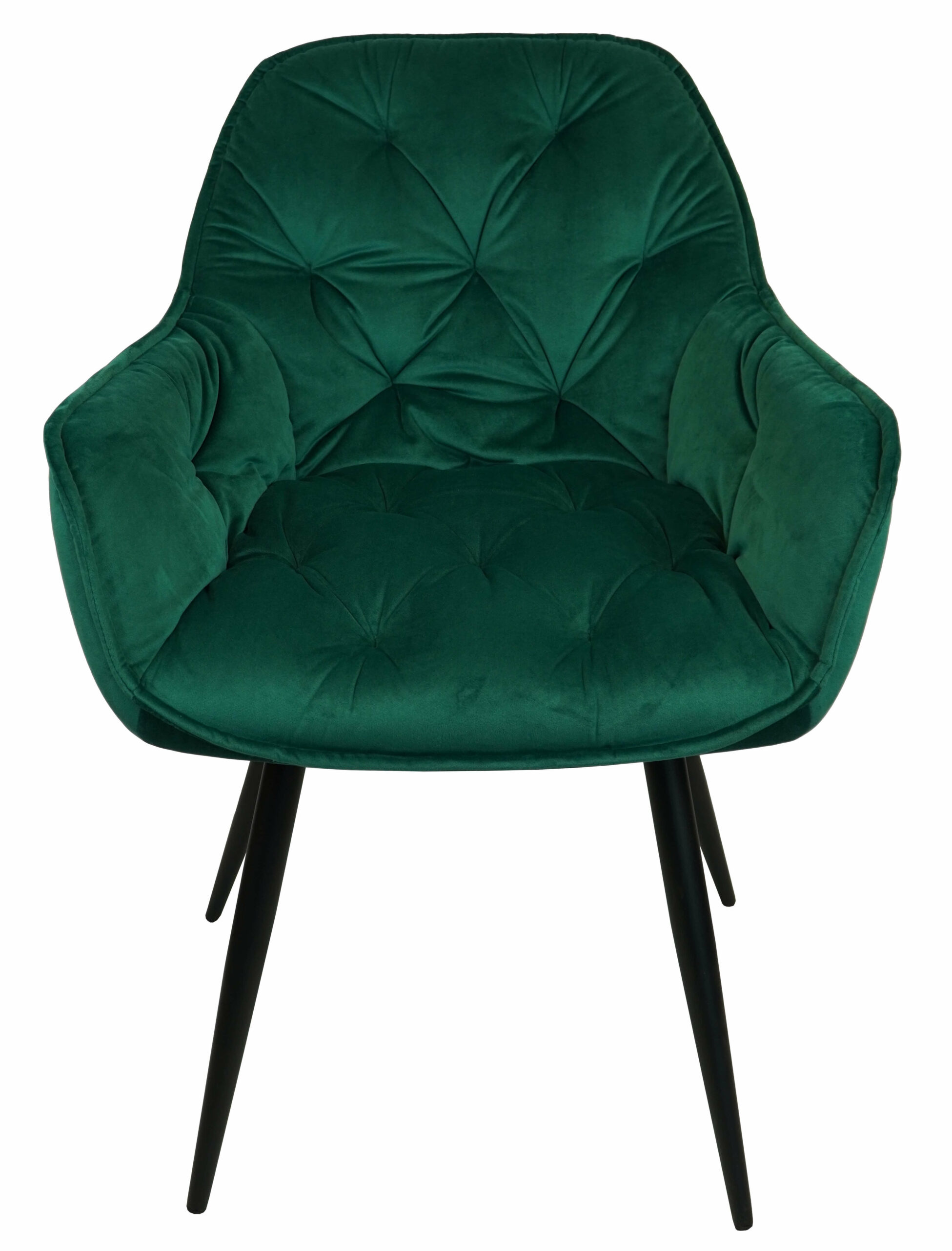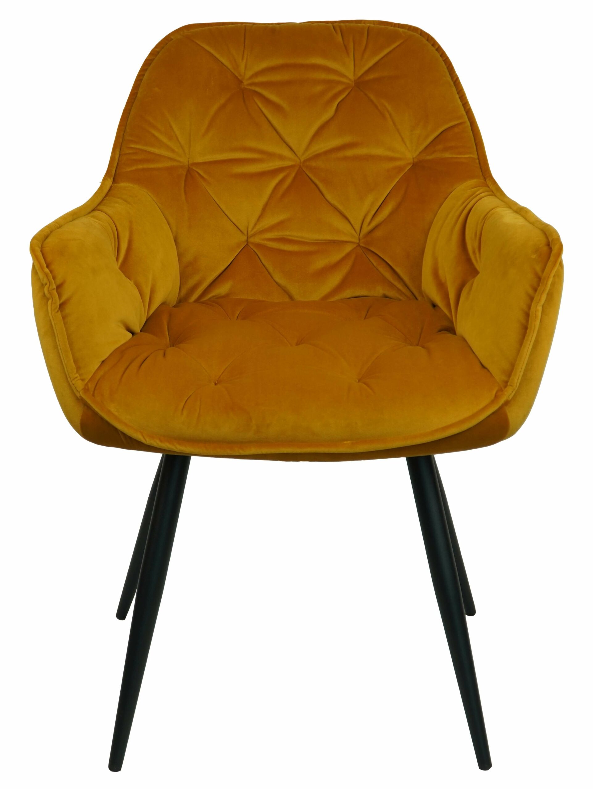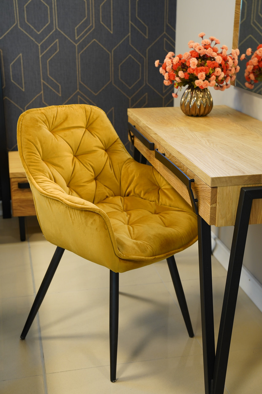 The soft velvet fabric gives the chair an elegant look and a pleasant touch. Moreover, it is easy to maintain — a simple wipe with a damp cloth keeps it spotless. The wide seat and comfortable armrests ensure superior comfort even during long gatherings. Additionally, the black metal frame provides stability and a sleek, contemporary finish.