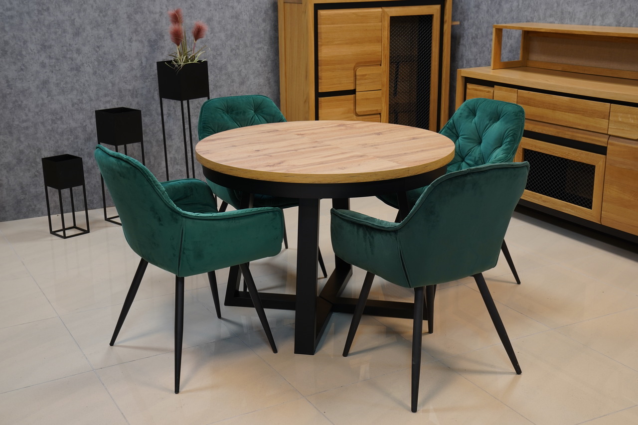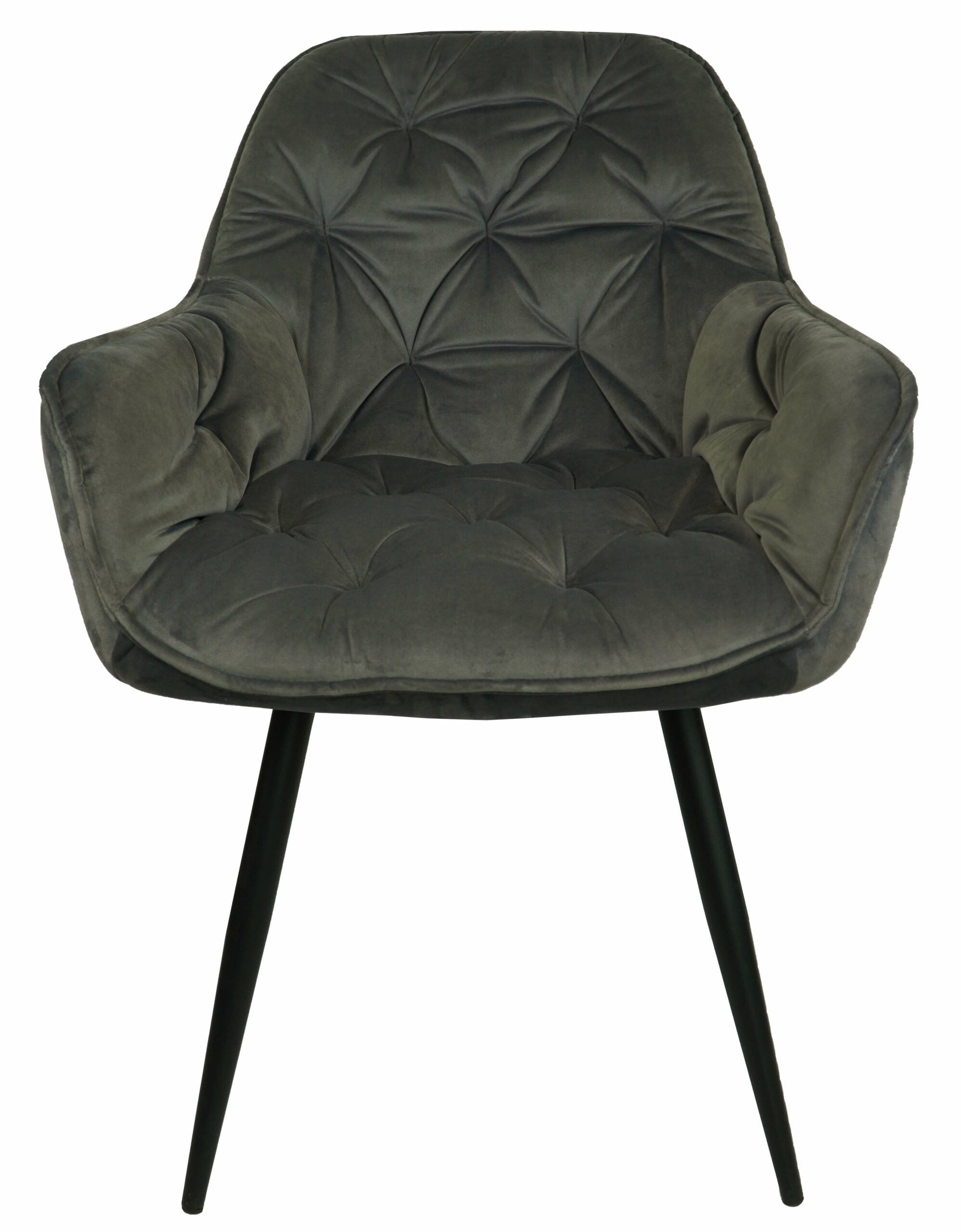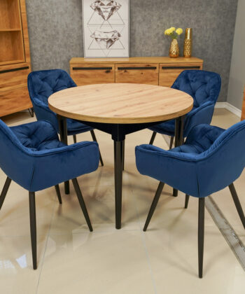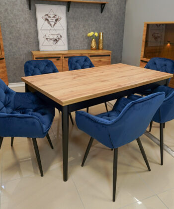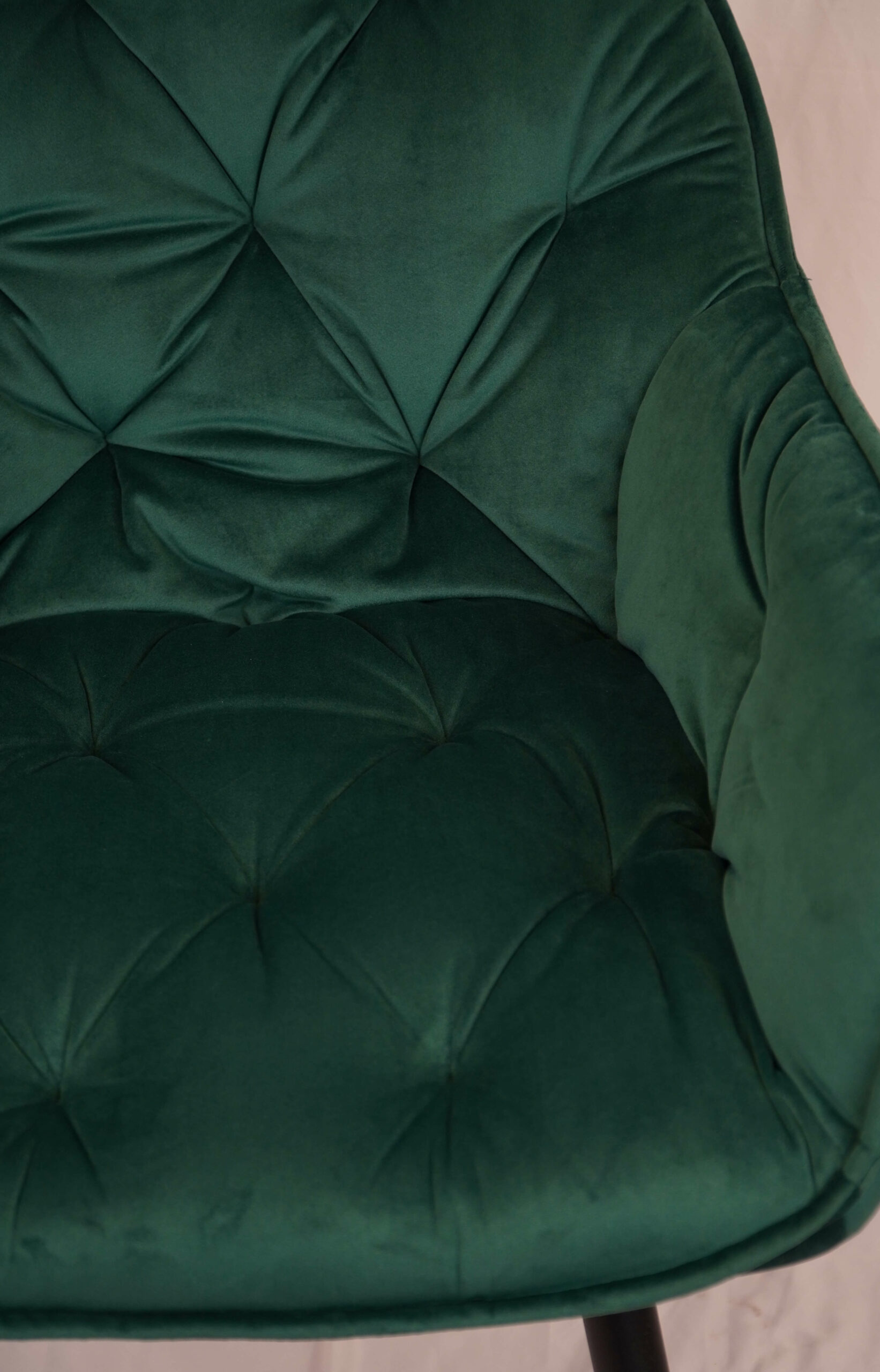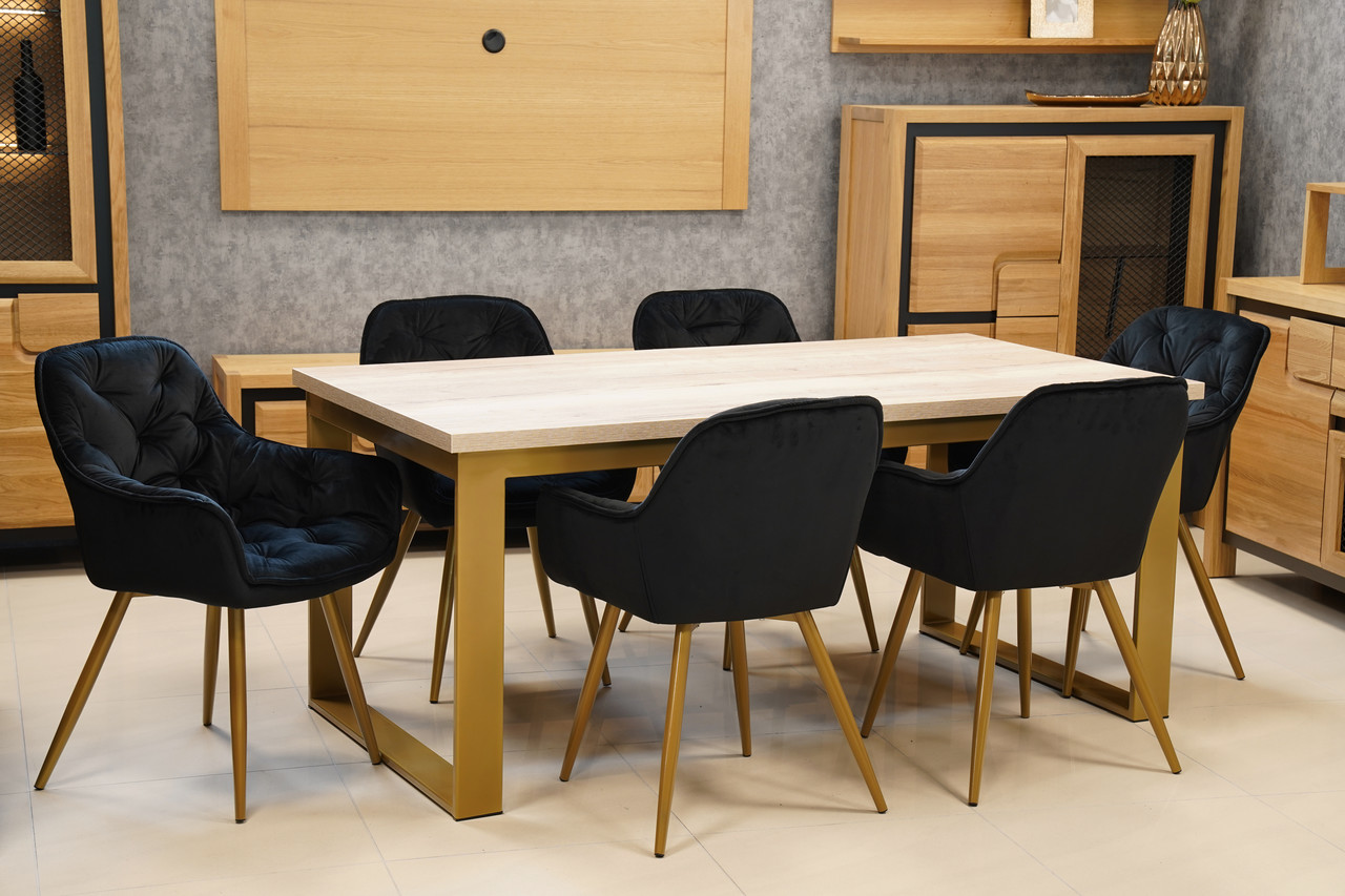 The soft velvet fabric gives the chair an elegant look and a pleasant touch. Moreover, it is easy to maintain — a simple wipe with a damp cloth keeps it spotless. The wide seat and comfortable armrests ensure superior comfort even during long gatherings. Additionally, the black metal frame provides stability and a sleek, contemporary finish.