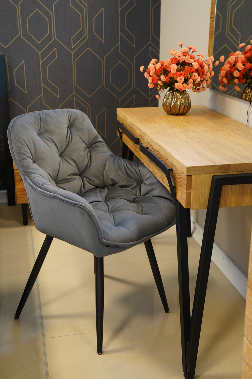 The Vitos Dining Chair redefines elegance and comfort in a modern way. This luxurious velvet chair adds sophistication and warmth to any space. Its design makes it suitable for modern, loft, or glamour interiors.