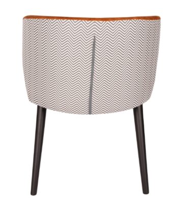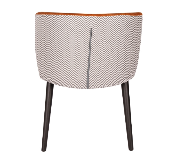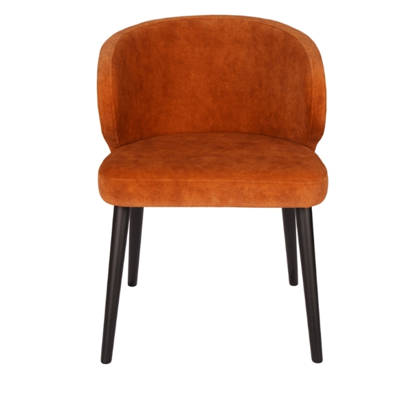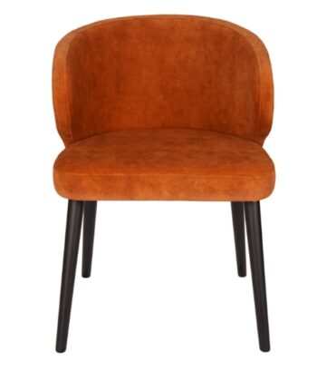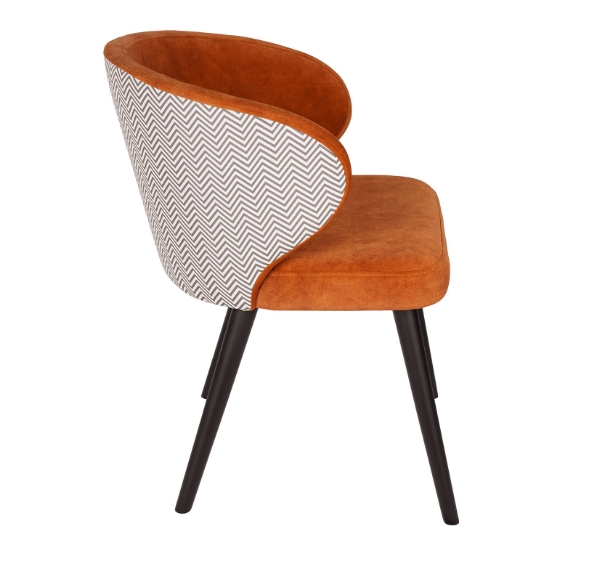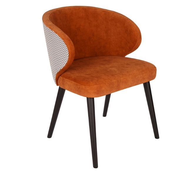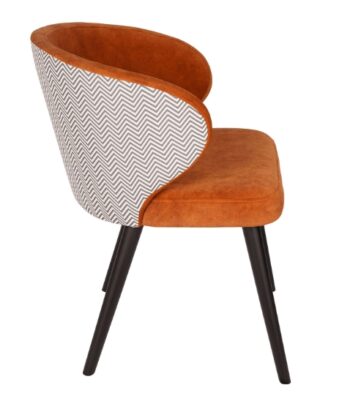 The Zeno KR-13 chair combines classy beech wood frame finished in black matte lacquer with eye-catching orange-patterned chenille fabric (Cuba-7382/Stella GT-3520). Perfect for salons, dining rooms, bedrooms, hotels, and restaurants, its contoured back and foam-padded seat ensure exceptional comfort. Generous 53 cm wide seat; fully assembled for immediate use.